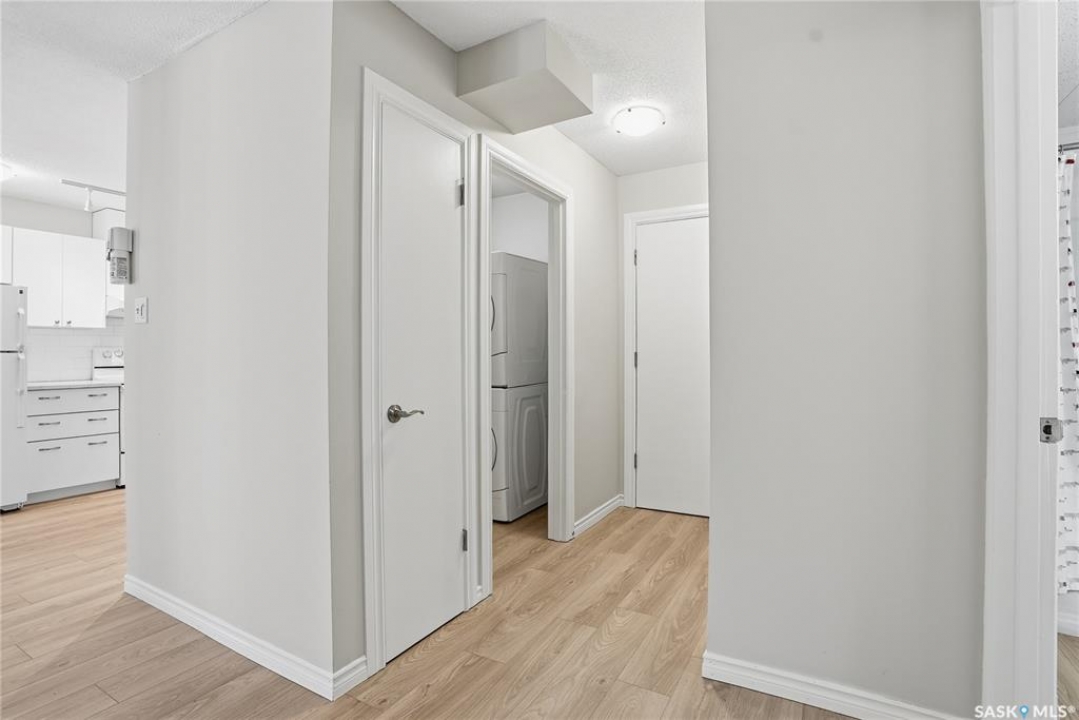 This freshly renovated, bright and charming 1-bedroom, 1-bathroom condo in Eastview is perfect for a first-time home buyer or investor. This unit has fresh vinyl plank flooring and paint, it is fresh as a daisy! Located on the quiet ground floor, it features a spacious living room with a large picture window that lets in loads of natural light, connecting to an open kitchen and dining area with updated white cabinets, subway tile backsplash, a pantry, and included appliances. The bedroom is a comfortable size with a large closet, and the bathroom has been refreshed with a newer vanity and flooring. Enjoy the convenience of in-suite laundry, storage anrea and an updated entryway closet. The building is pet-friendly (with Board approval) and had roof work completed in 2020. Close to parks, schools, bus routes, and all the amenities of Eastview, this condo is a great place to call home!