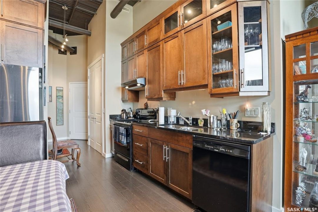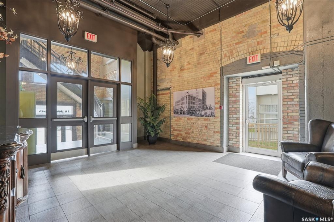 Experience the character and charm of Caswell Hill in this truly one-of-a-kind condo. Perfectly located across from local favorite The Night Oven Bakery and the new Caswell Bus Barns Arts and Culture Hub, this home blends heritage style with modern living. The open-concept layout features a spacious living area framed by northwest-facing windows that flood the space with natural light and showcase Saskatoon's vibrant living skies. With one bedroom, one bathroom, exposed original brick, and thoughtful storage throughout, this condo offers both comfort and personality in one of the city's most exciting and creative neighbourhoods. There is an elevator, exercise room and two parking spaces included—one in a heated underground garage and one surface stall—offering convenience all year round.