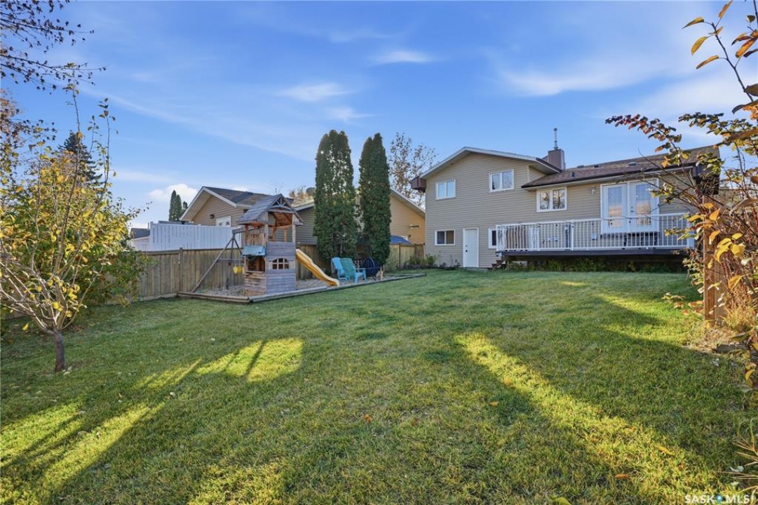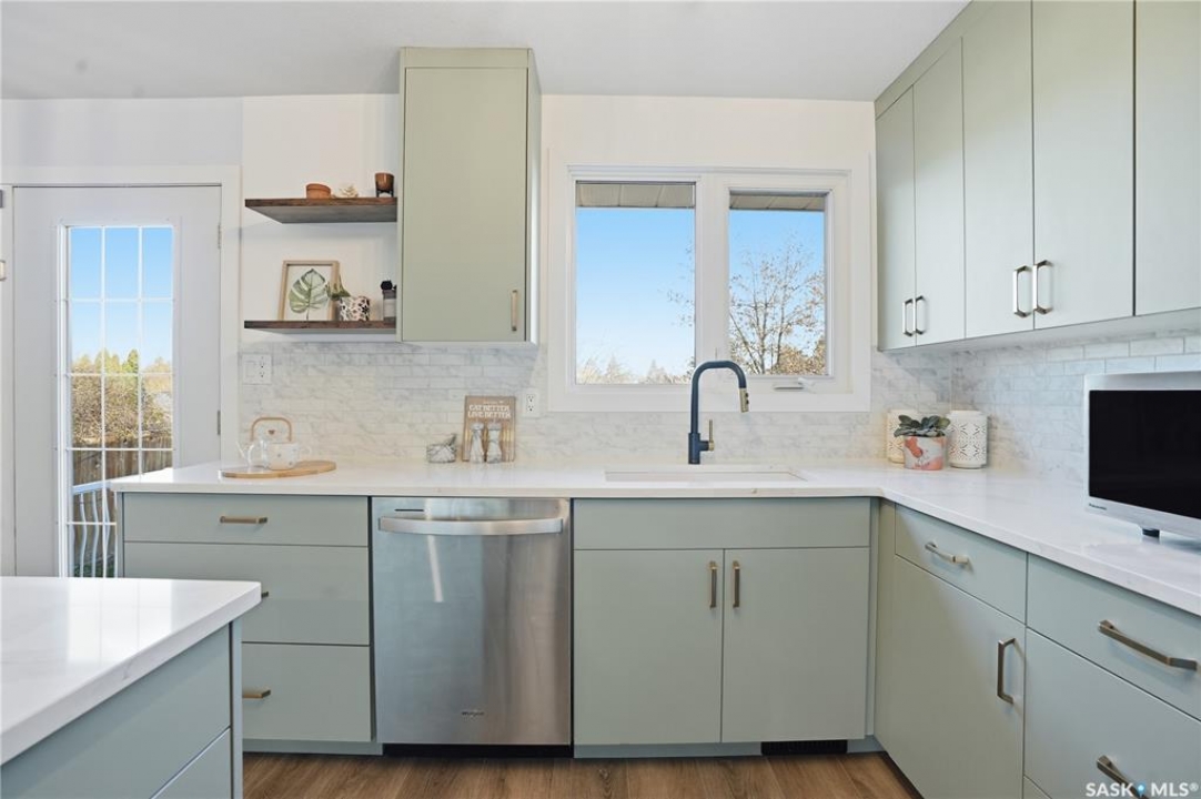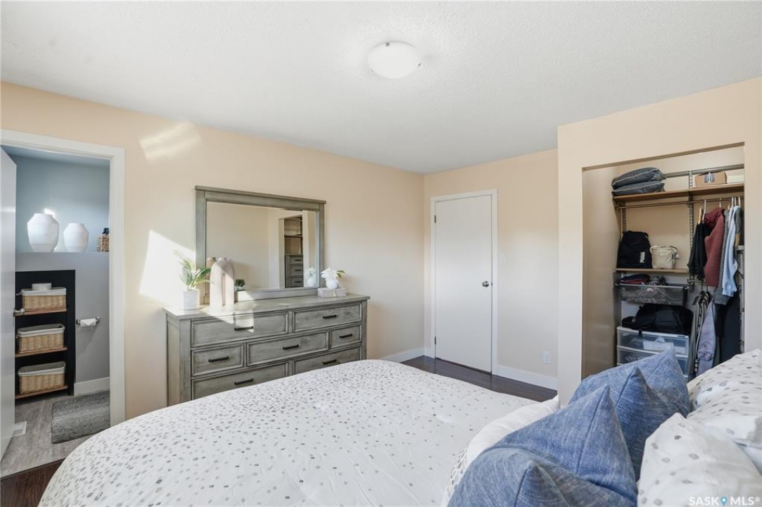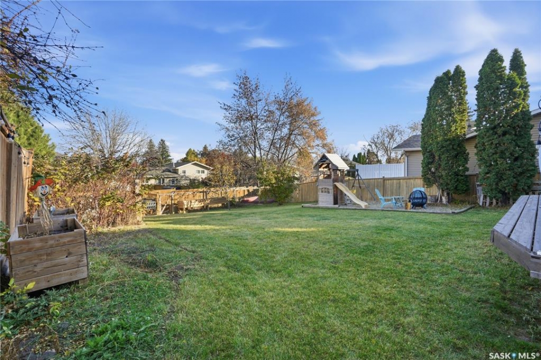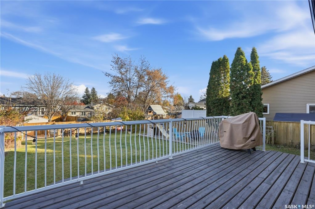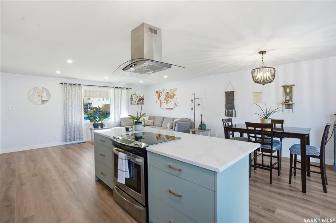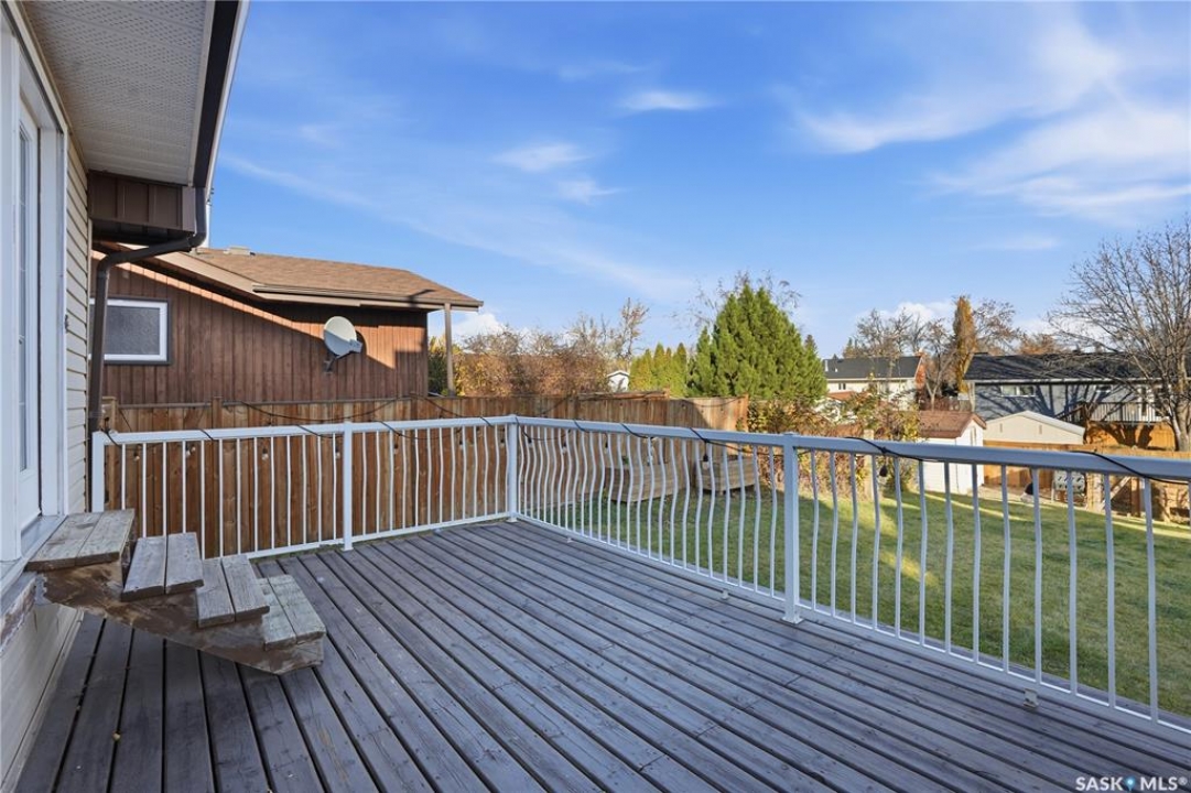 Welcome to 415 Wathaman Crescent, a stylishly updated split-level home nestled in one of Saskatoon's most desirable north-end neighborhoods. The main level showcases a stunning renovation featuring a brand-new custom kitchen with quartz countertops, a large sit-up island with cooktop and built-in oven, and sleek stainless steel appliances. The kitchen opens seamlessly to the dining and spacious living areas, highlighted by premium water-resistant laminate flooring and a new ceiling with recessed lighting. Upstairs, you'll find a comfortable primary suite complete with a walk-in closet and a private 2-piece ensuite. Two additional bedrooms and a modern 4-piece bathroom complete this level. The third level, situated at ground level, offers a welcoming foyer and a fourth bedroom. The single attached garage provides direct entry and is equipped with cabinetry, a workspace, and convenient parking. On the fourth level, you'll find another full 4-piece bathroom, a cozy family room with a Murphy bed for guests, and a utility/laundry room with additional storage space. Outside, the home features a durable rubber asphalt driveway, a private, fully fenced backyard with an attached deck, garden boxes,play structure, raspberry bushes, and apple trees—perfect for outdoor living. This move-in-ready home combines thoughtful updates, functional design, and a prime location—ideal for families or anyone seeking comfort and style in Saskatoon's north end. Very close to schools, parks, the river and all northend amenities. A true north end gem at a great price!