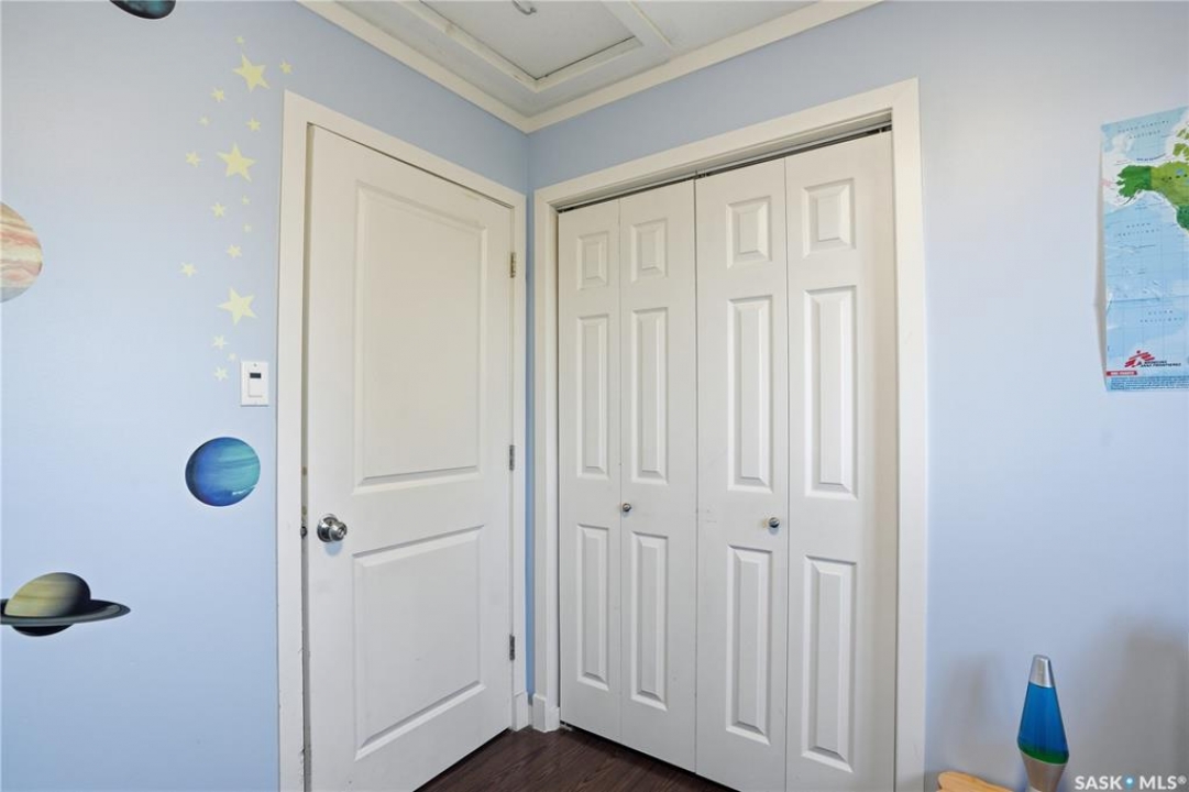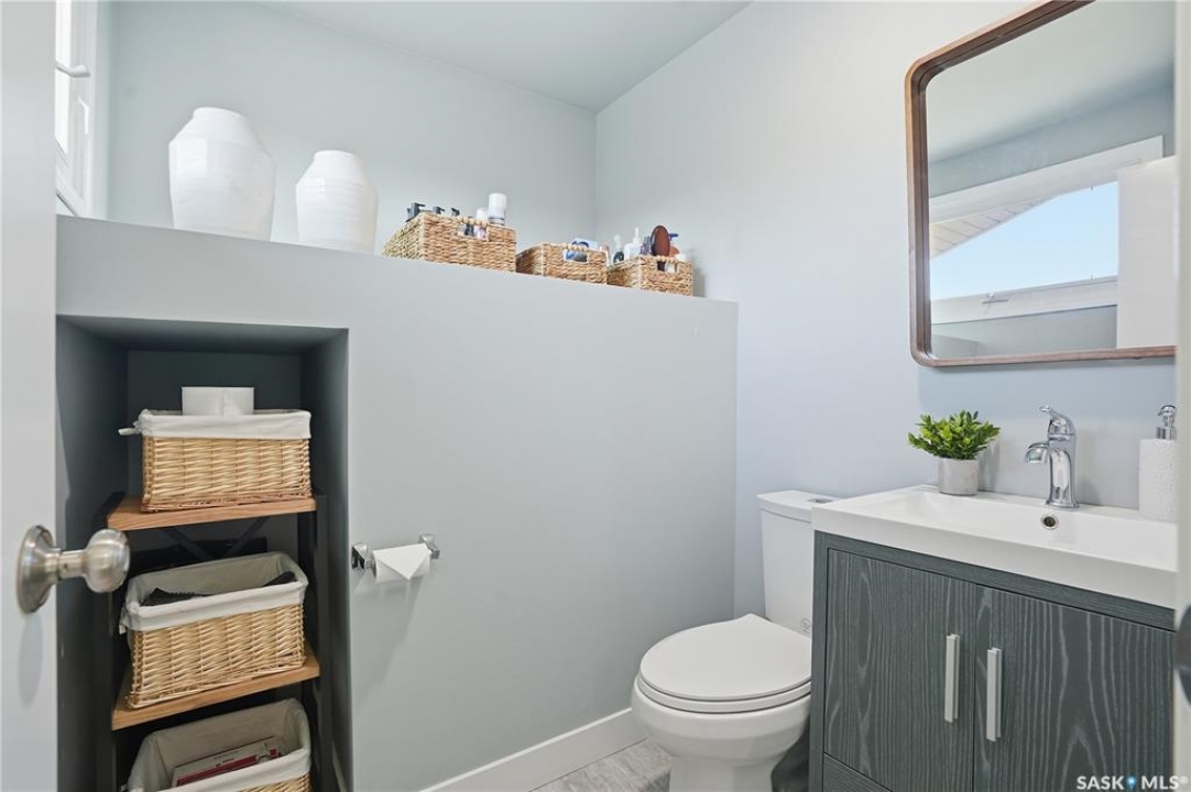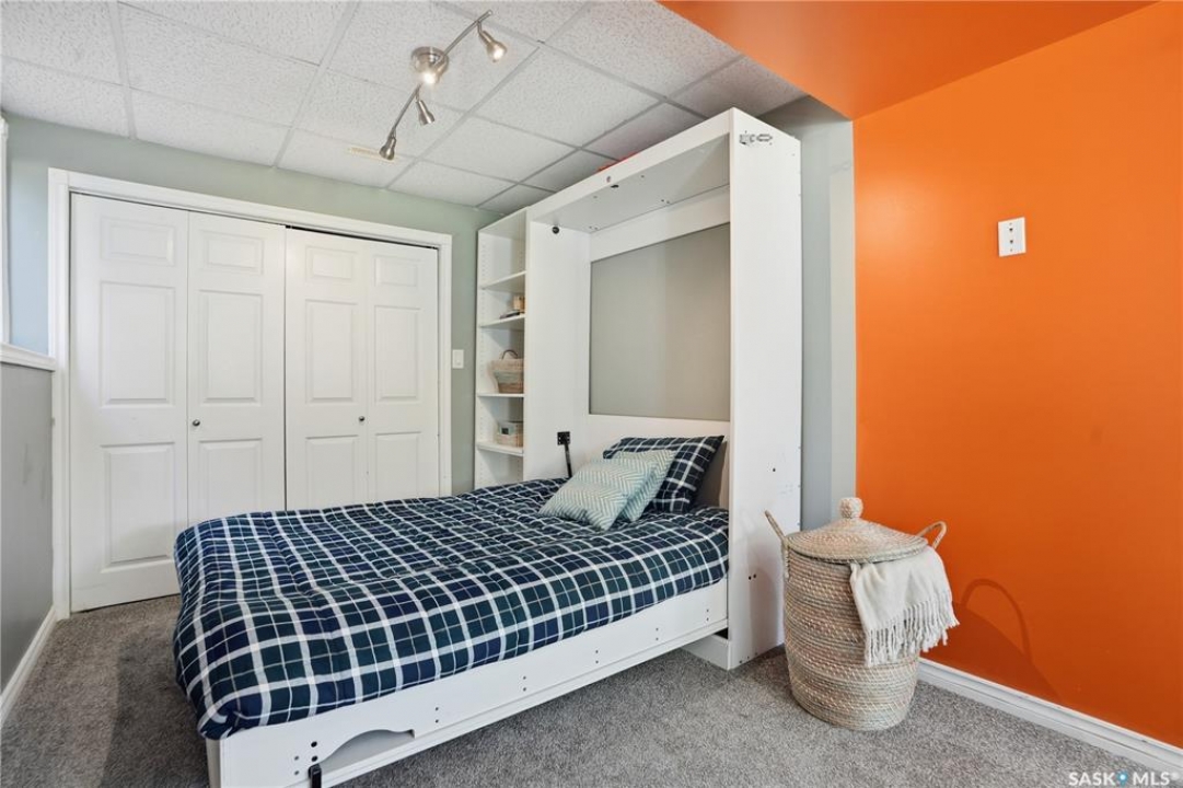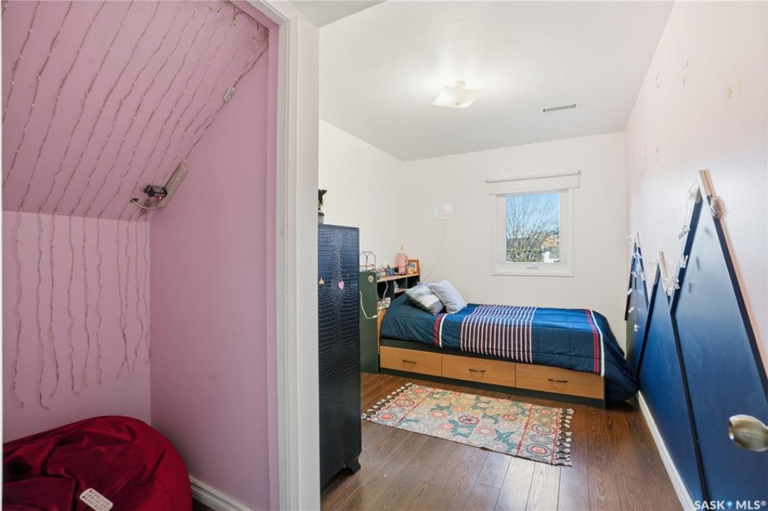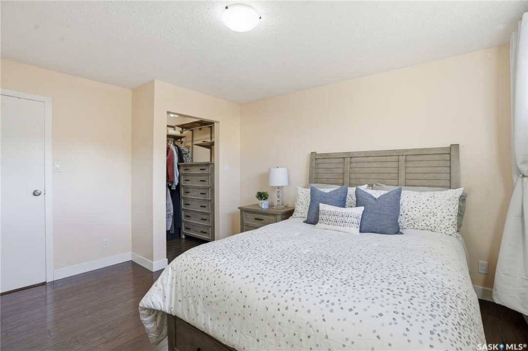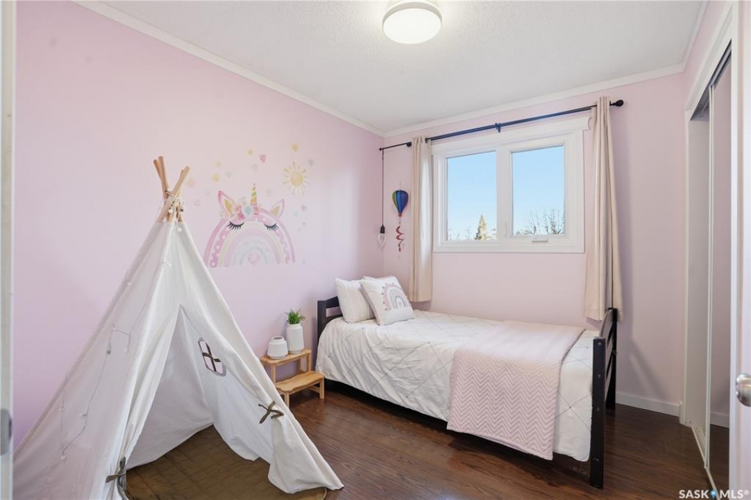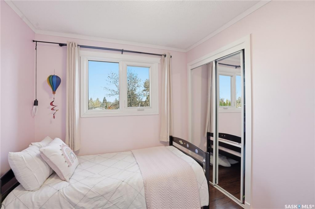 Welcome to 415 Wathaman Crescent, a stylishly updated split-level home nestled in one of Saskatoon's most desirable north-end neighborhoods. The main level showcases a stunning renovation featuring a brand-new custom kitchen with quartz countertops, a large sit-up island with cooktop and built-in oven, and sleek stainless steel appliances. The kitchen opens seamlessly to the dining and spacious living areas, highlighted by premium water-resistant laminate flooring and a new ceiling with recessed lighting. Upstairs, you'll find a comfortable primary suite complete with a walk-in closet and a private 2-piece ensuite. Two additional bedrooms and a modern 4-piece bathroom complete this level. The third level, situated at ground level, offers a welcoming foyer and a fourth bedroom. The single attached garage provides direct entry and is equipped with cabinetry, a workspace, and convenient parking. On the fourth level, you'll find another full 4-piece bathroom, a cozy family room with a Murphy bed for guests, and a utility/laundry room with additional storage space. Outside, the home features a durable rubber asphalt driveway, a private, fully fenced backyard with an attached deck, garden boxes,play structure, raspberry bushes, and apple trees—perfect for outdoor living. This move-in-ready home combines thoughtful updates, functional design, and a prime location—ideal for families or anyone seeking comfort and style in Saskatoon's north end. Very close to schools, parks, the river and all northend amenities. A true north end gem at a great price!
