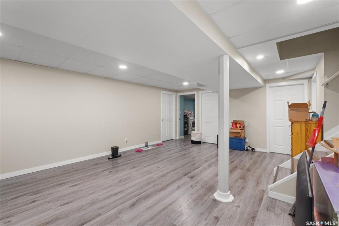 Nicely updated home in mature Crescent Heights neighbourhood. This open concept 1194 square foot bungalow is situated on a large 64.99' x 129.36' lot. The main floor offers a living room with electric fireplace, kitchen, dining area, 3 bedrooms, a full bathroom plus a half bath off the primary bedroom. The fully finished basement provides an enormous family room, 2 additional bedrooms, a 3 piece bathroom, laundry room, utility room and storage. New furnace in 2021. Central air conditioning. 20' x 24' detached garage.
