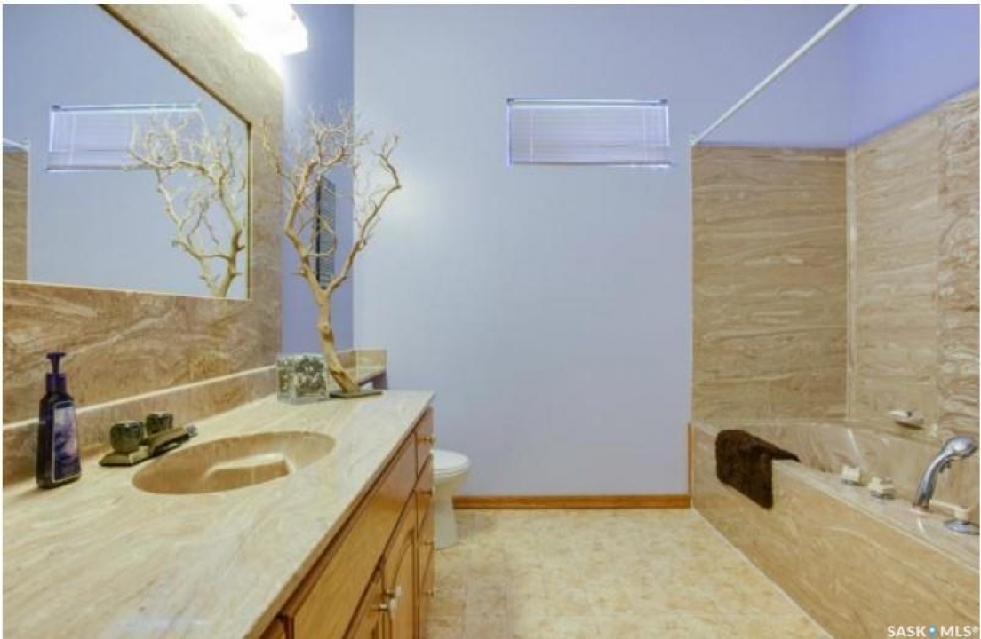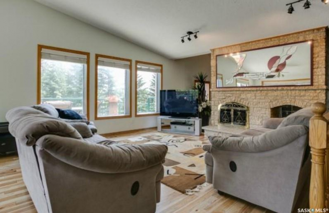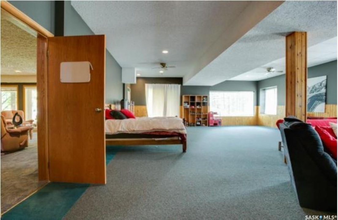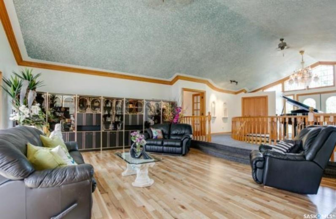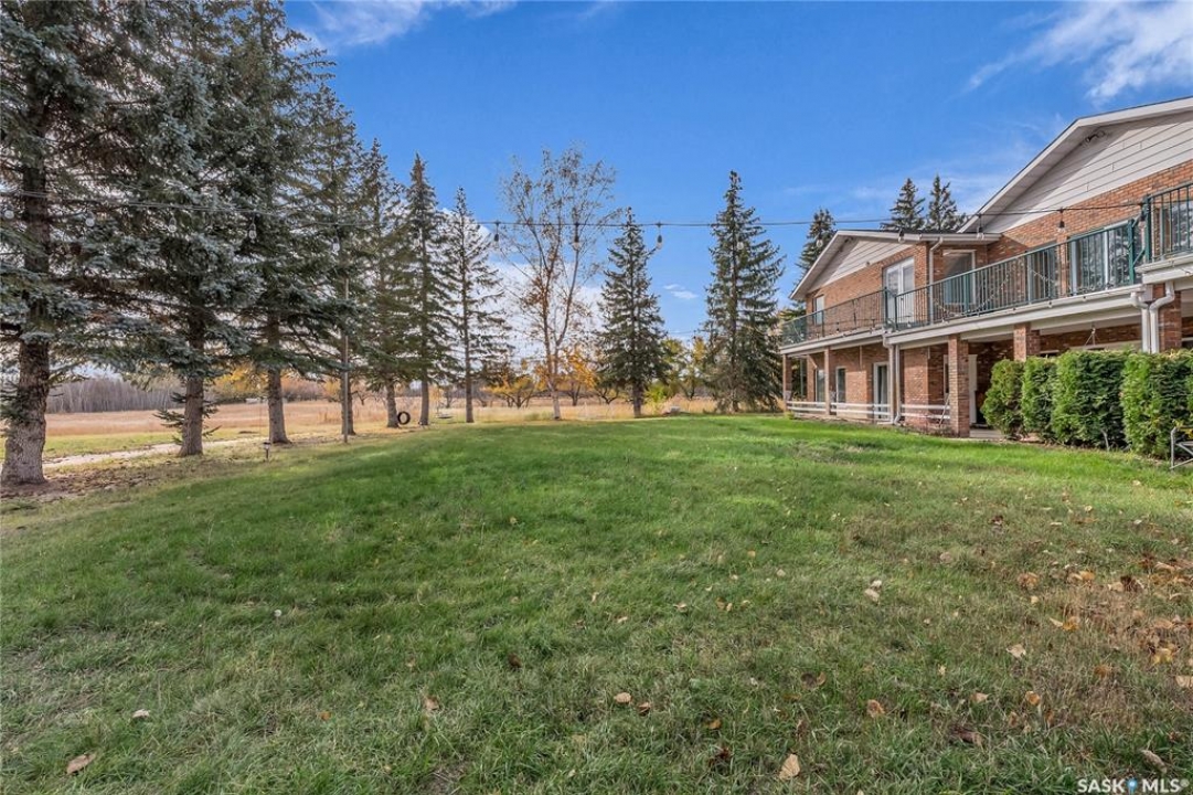 This remarkable estate combines luxurious residential living with expansive potential, offering a total of 9.06 acres. The property includes a 4.6-acre developed residential area with mature landscaping and a 3,447-square-foot walk-out bungalow (excluding the lower level) featuring five bedrooms and five bathrooms. With an open floor plan and formal spaces such as a 16' x 13.9' dining room, a 17' x 22' living room, and a gracious foyer, this home is designed for both comfort and elegance. Additional highlights include two wood-burning fireplaces, a spacious kitchen with an eating area, balconies, covered patio spaces, a double attached garage, a double detached garage, and a greenhouse. The remaining land is a natural lot, adding privacy and beautiful green space surrounding the residence. Additionally, this property offers potential for a zoning shift to commercial use, supported by nearby properties that have successfully made this transition. For those interested in expansion, an additional 5-acre parcel adjacent to the west side of the backyard is available for potential acquisition. This unique 9.06-acre estate, minutes from Saskatoon, offers an ideal blend of private, luxurious living with flexible zoning possibilities.