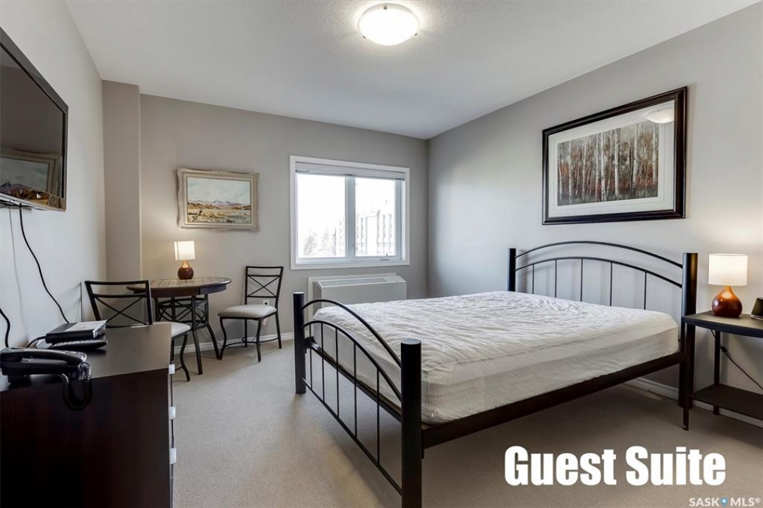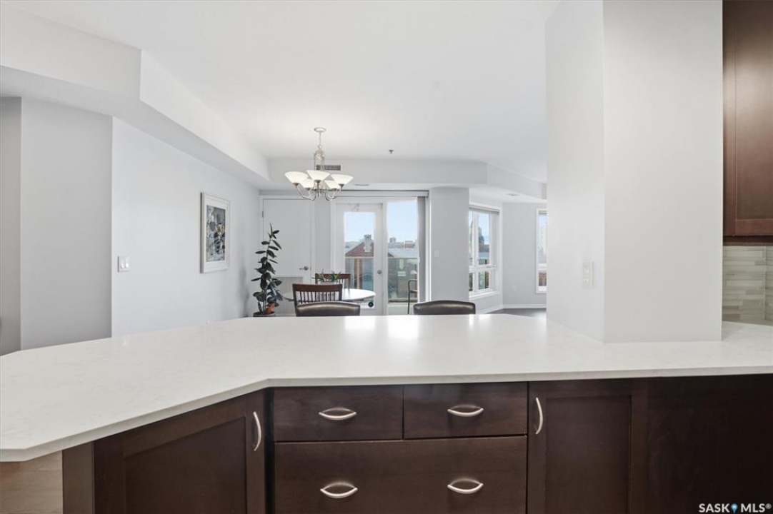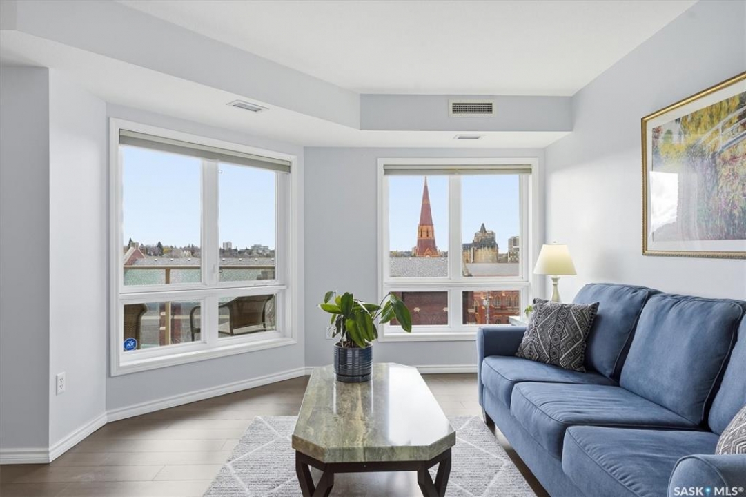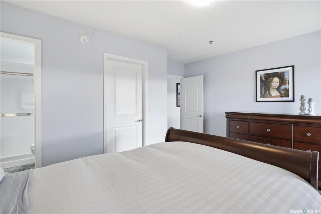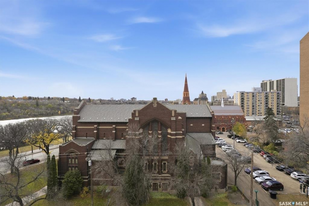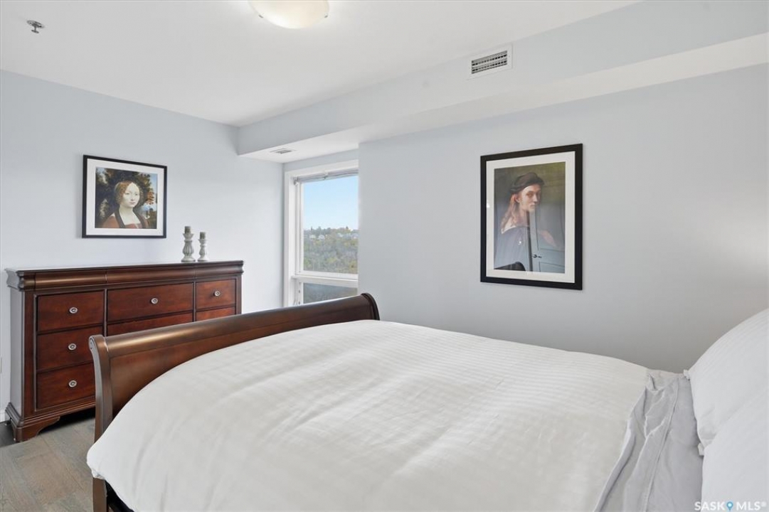 Experience riverfront living in this stunning southeast-facing LUX condo in the heart of downtown Saskatoon. Offering 1,155 sq ft, this 2-bedroom, 2-bath unit features an UPDATED bright, open floor plan designed to take full advantage of the natural light and breathtaking river views. The kitchen is beautifully finished with modern cabinetry, newer gleaming quartz countertops, and stainless steel appliances, opening to a spacious living and dining area with newer engineered hardwood flooring throughout. Two spacious bedrooms, 2 full baths, and a primary walk-in closet, plus an in-suite storage/laundry room, complete this lovely floor plan. Enjoy relaxing or entertaining on the private balcony with a natural gas BBQ hookup, overlooking the river, Bessborough, and Broadway Bridge. This unit includes 1 heated underground parking stall and a heated storage unit for added convenience. The building offers fantastic amenities, including a fitness room, a meeting room, and two guest suites. Ideally located along the Meewasin River Trail and park and steps from downtown restaurants, shops, and entertainment- the best of what our city offers!!