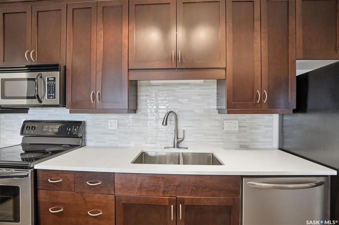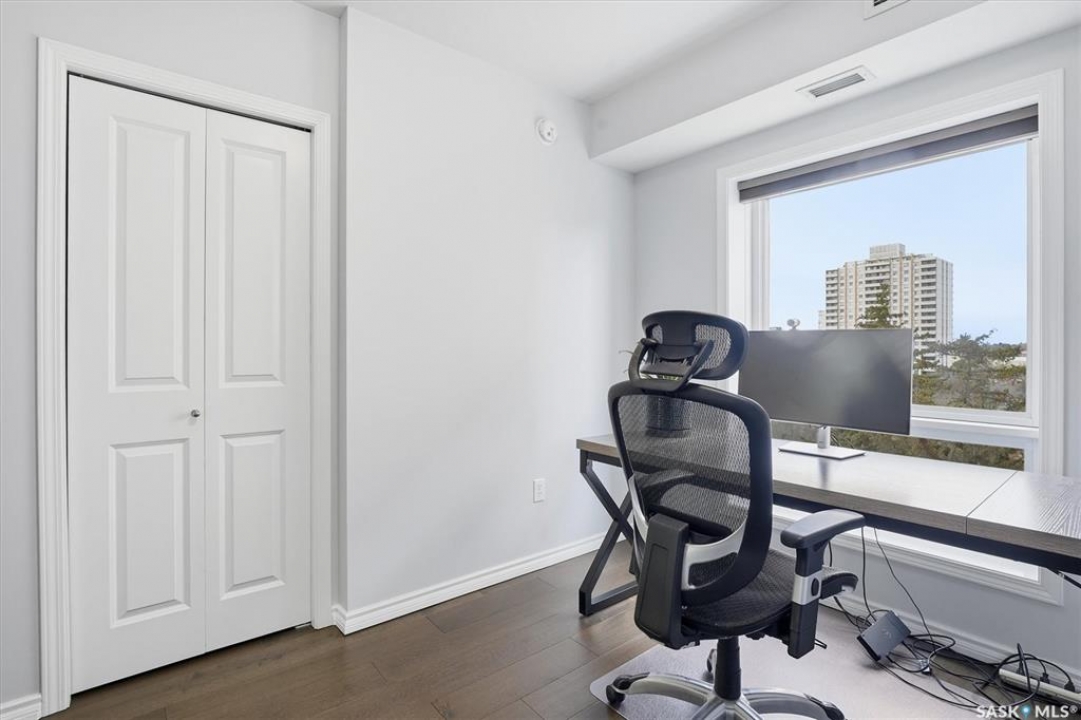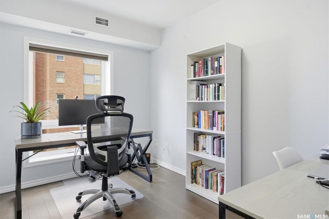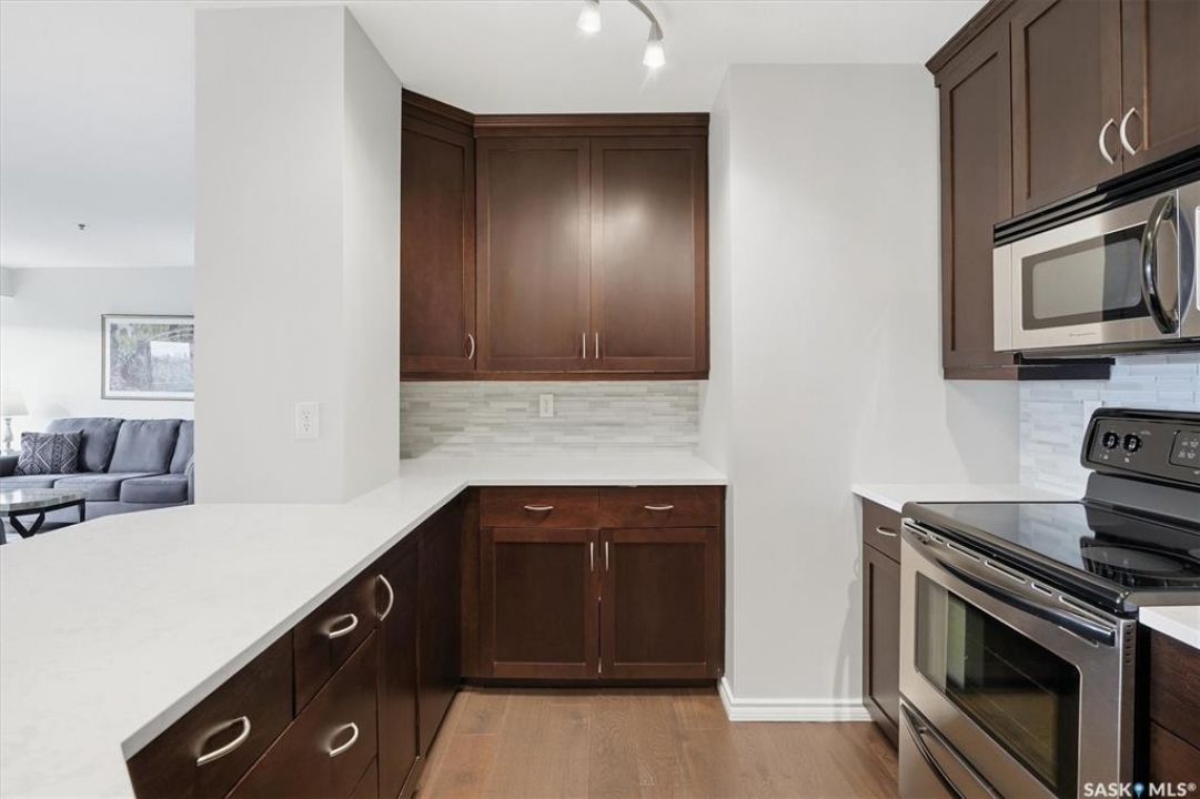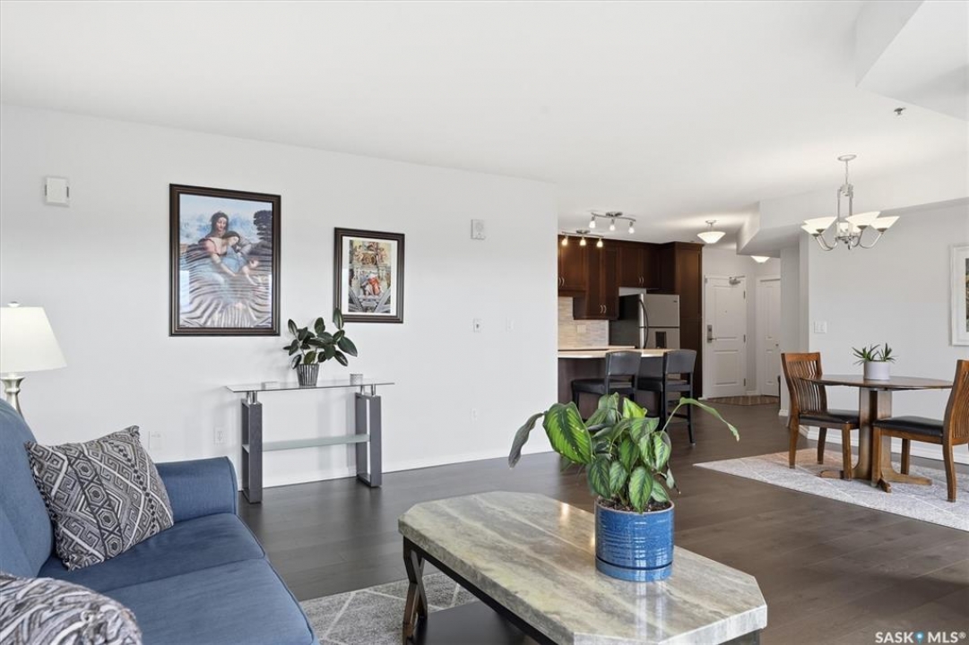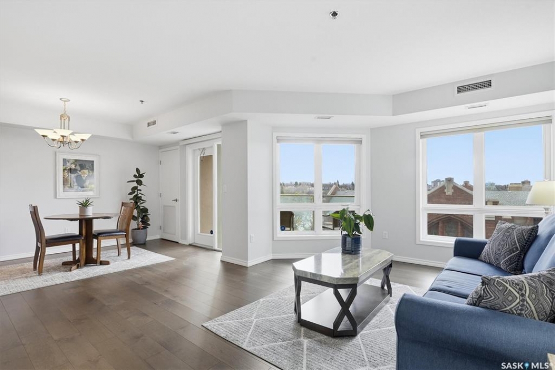 Experience riverfront living in this stunning southeast-facing LUX condo in the heart of downtown Saskatoon. Offering 1,155 sq ft, this 2-bedroom, 2-bath unit features an UPDATED bright, open floor plan designed to take full advantage of the natural light and breathtaking river views. The kitchen is beautifully finished with modern cabinetry, newer gleaming quartz countertops, and stainless steel appliances, opening to a spacious living and dining area with newer engineered hardwood flooring throughout. Two spacious bedrooms, 2 full baths, and a primary walk-in closet, plus an in-suite storage/laundry room, complete this lovely floor plan. Enjoy relaxing or entertaining on the private balcony with a natural gas BBQ hookup, overlooking the river, Bessborough, and Broadway Bridge. This unit includes 1 heated underground parking stall and a heated storage unit for added convenience. The building offers fantastic amenities, including a fitness room, a meeting room, and two guest suites. Ideally located along the Meewasin River Trail and park and steps from downtown restaurants, shops, and entertainment- the best of what our city offers!!