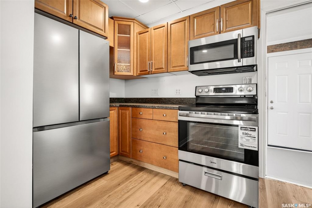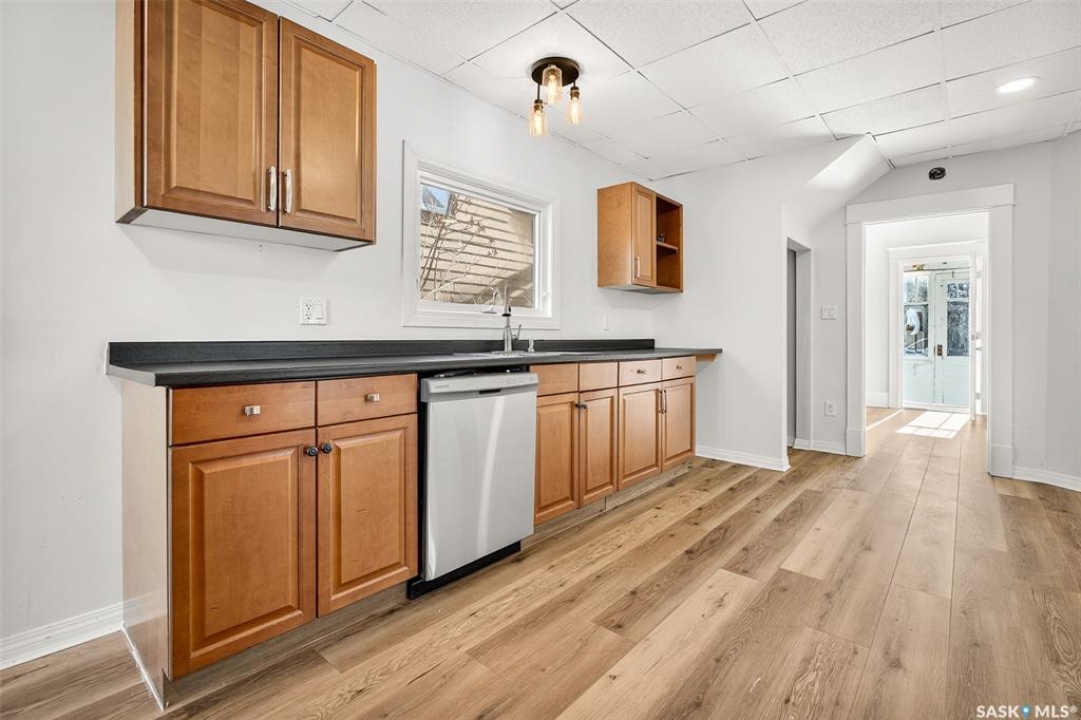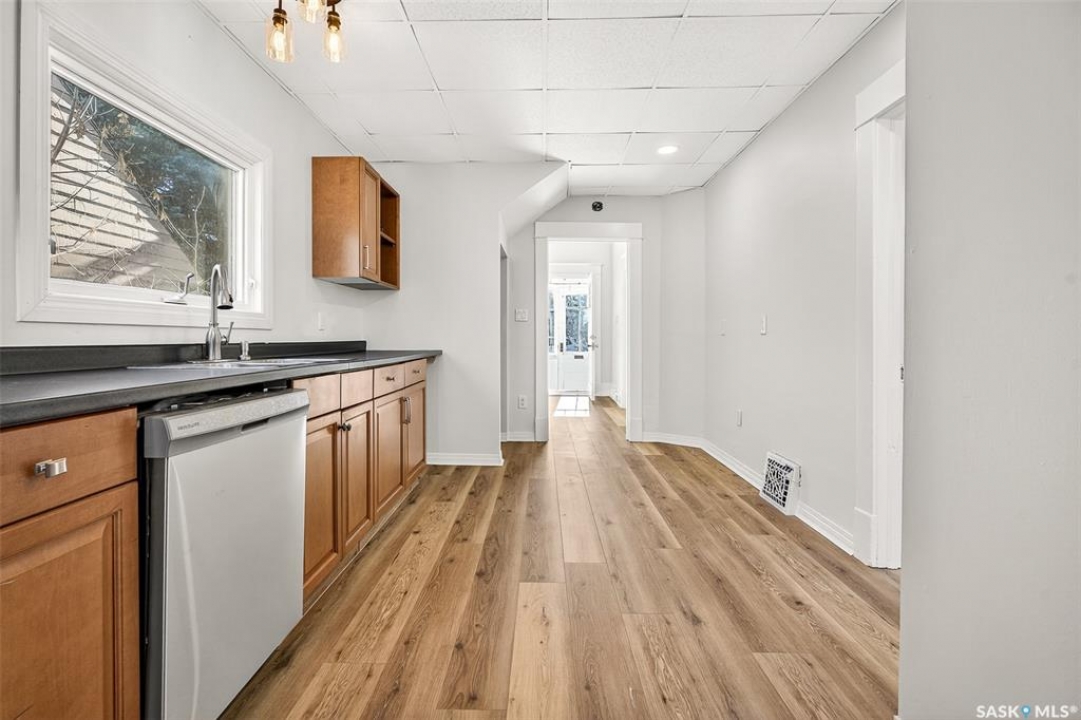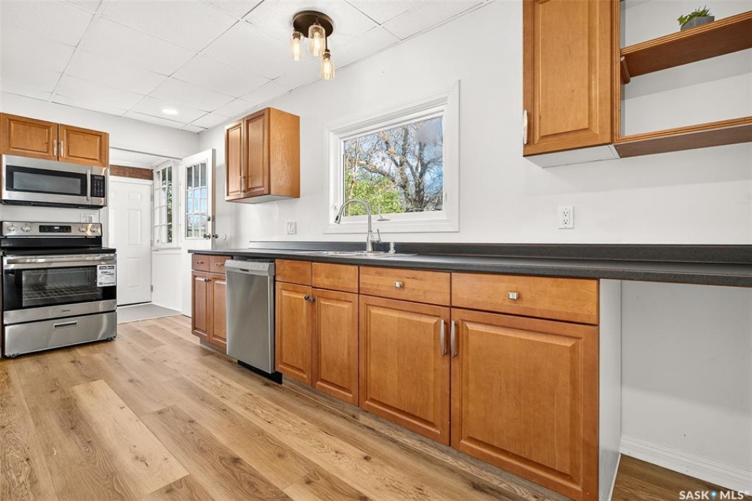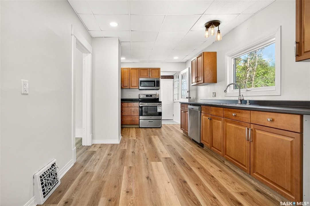 This charming 3-bedroom, 1-bath home is perfect for a first-time buyer or as a revenue property. Step inside to find fresh paint throughout, all-new flooring, and a fully renovated kitchen featuring updated cupboards and new appliances. The bathroom has also been beautifully updated, making this home truly move-in ready. Outside, you'll love the large heated garage with a 220-amp panel—ideal for hobbies, storage, or a workshop. Conveniently located close to a school, playground, grocery store, and bakery, this home offers comfort, value, and convenience all in one.