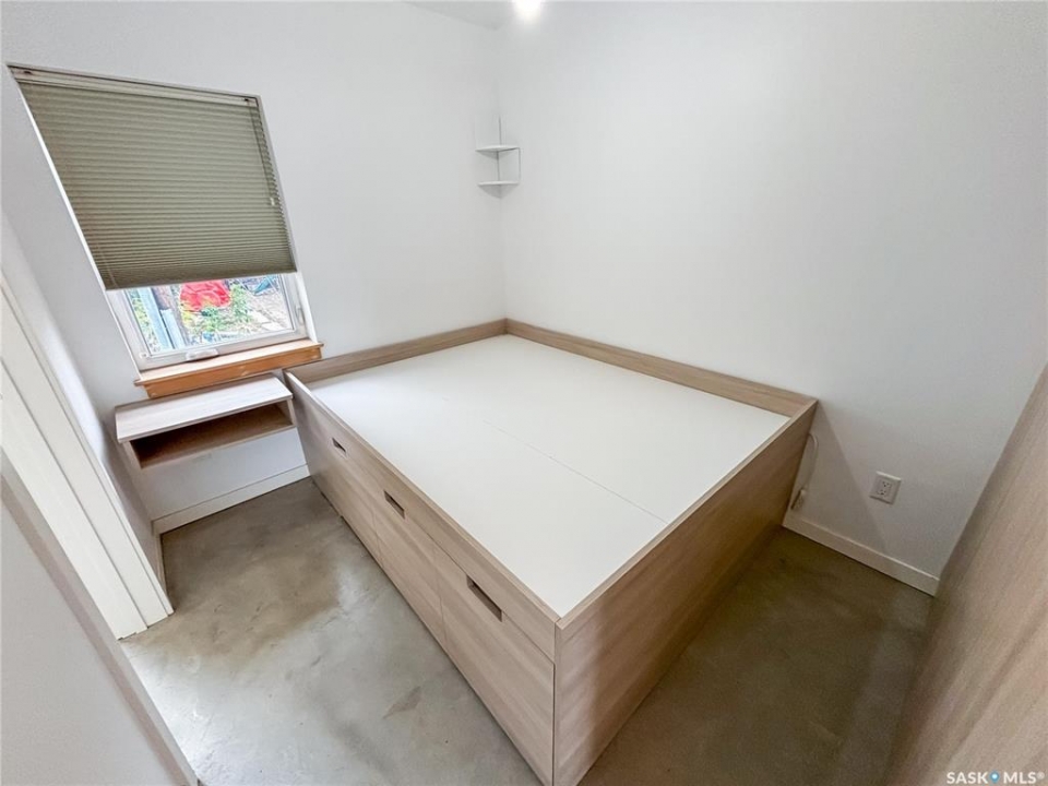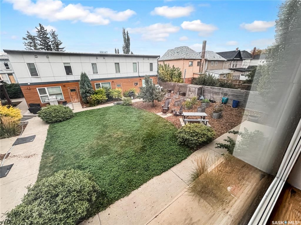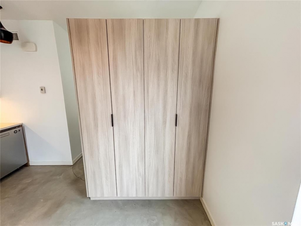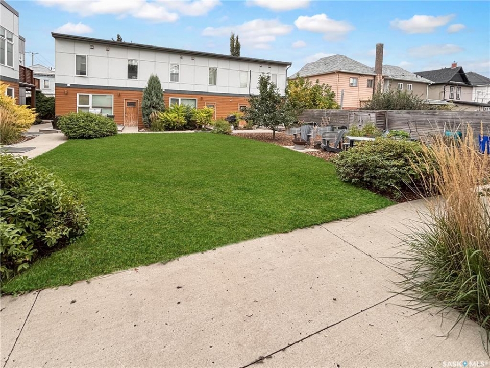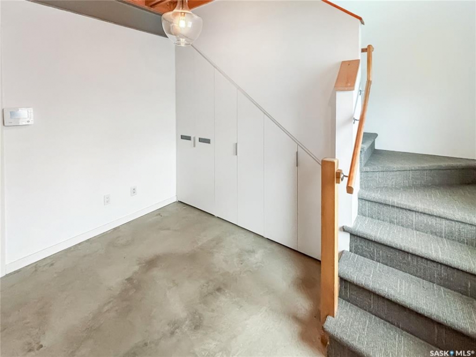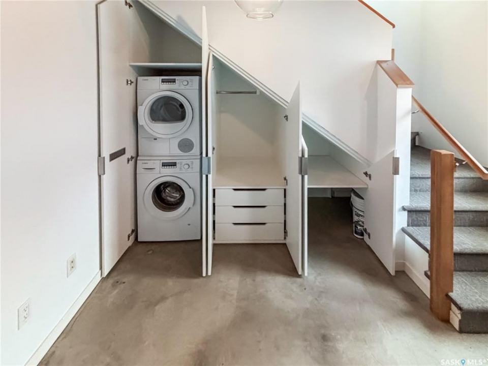 Enjoy urban living at its best in this beautiful loft style studio townhouse in the heart of Saskatoon. The owners designed cabinets for under the stairs for smart storage with a clean look. A custom wardrobe and platform bed with plenty of storage. Upgrades include laundry on the main floor, a Superior Cabinets custom kitchen with Caeserstone countertops, upgraded appliances, under-counter lighting, and a range fan with outdoor ventilation. Graber blinds and George Nelson bubble lamps. Built in 2013, this bright and trendy unit features modern amenities including in-floor radiant heat and private single attached heated garage. This 2-storey townhome faces East overlooking a beautiful, gated courtyard with green space, garden planters, and fruit bearing trees and shrubs. Upon entry, you are greeted by the main floor den/laundry with 9' ceilings, perfect for a home office or gym. The second floor loft is bright and spacious with a ceiling height over 11ft, extended kitchen, dining, living, and bedroom space in addition to the 3pc-bath. As a self-managed development, the condo fees are $305/month which includes heat, internet, building and common area maintenance, garbage, sewer and water. Pets are allowed with approval from the condo board. The location is exceptional with access to the many restaurants, cafes, shops, parks, and river trails that Riversdale provides. This unit is a perfect fit for singles, couples, retirees, or students looking for an affordable and secure place to call home. Please note that this is a studio/bachelor loft townhome and that the 2nd floor bedroom is not enclosed, but rather a bedroom area.