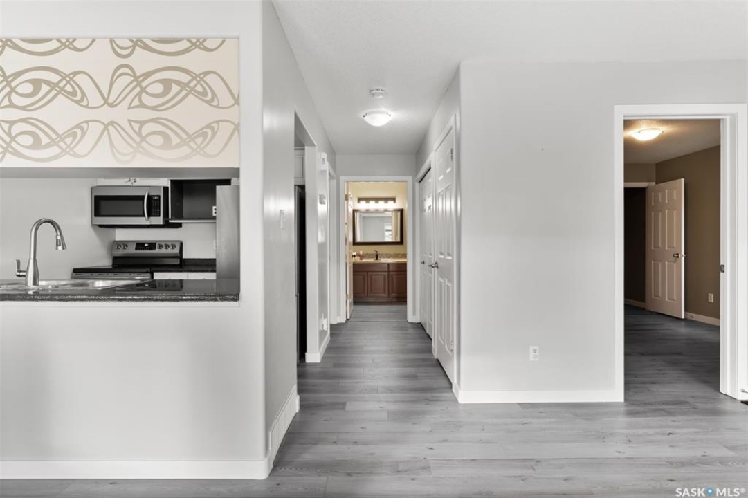 Have you been searching for a two-bedroom condo in Regina's east end? Take a look at this 3918 7th Avenue E., a beautiful 842sqft accessible main floor garden-style unit in the amazing community of Parkridge. The bright and inviting living room filters in natural light from the large picture windows with plenty of space for a dedicated dining area. The galley kitchen offers a full appliance package as well as a stacking front loading washer/dryer down the hall. Each bedroom is quite large that could comfortably fit queen-sized bedroom sets and come with walk-in closets. The 4pc. bathroom features a spacious linen closet. This condo also comes with a storage room, balcony patio, and one electrified parking stall. It's also pet-friendly (with restrictions), and is close to Henry Braun School, splash pad, park, bus routes, and east-end amenities. This is an exceptionally ran complex with condo fees including water. Connect with your agent today for your private viewing. This is the perfect spot for a first-time home buyer, downsizer, or to add to your rental portfolio with affordable condo fees, utilities, and property taxes. Quick possession available.