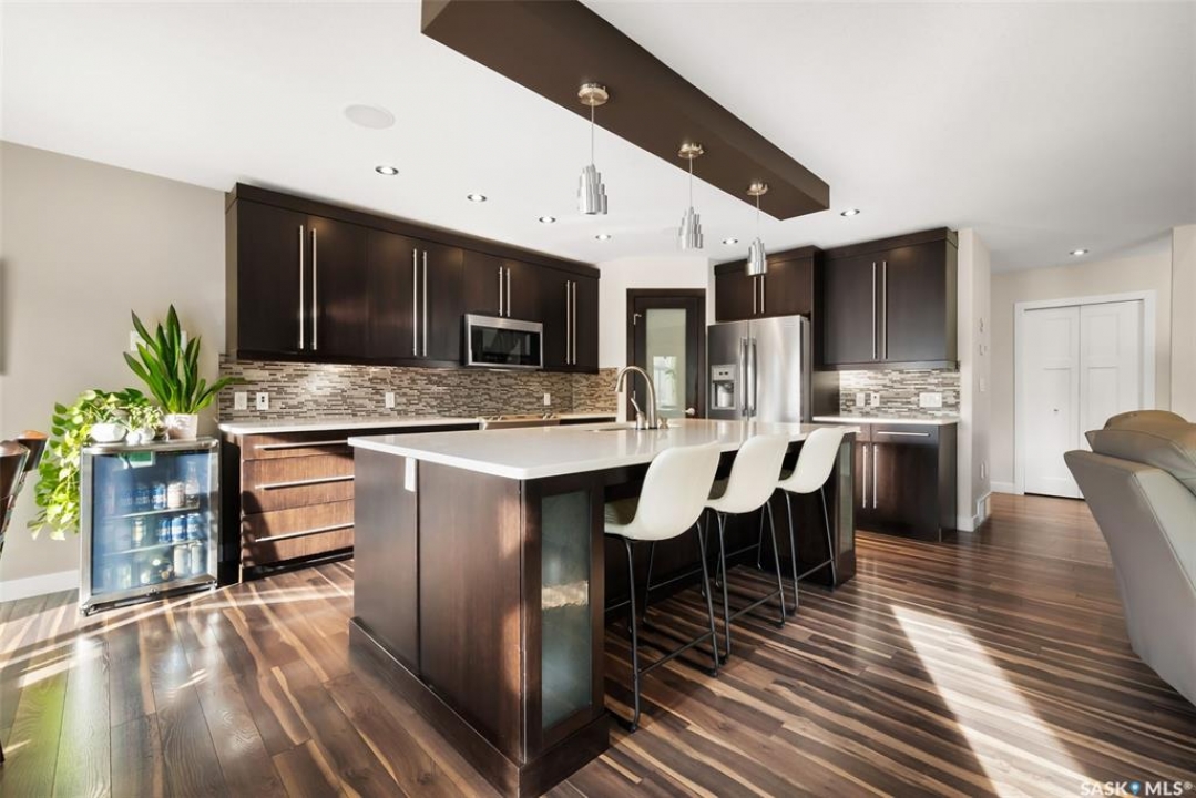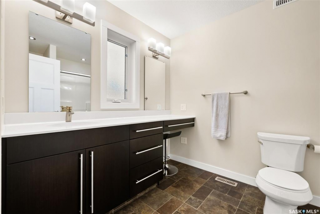 Welcome to 228 Foxtail, an immaculate 1,795 sq. ft. two storey split located in the beautiful neighbourhood of Fairways West. Perfectly situated on a 5,510 sq. ft. lot, this home exudes pride of ownership and thoughtful design throughout. It offers 3 bedrooms plus an optional future 4th bedroom, and 4 bathrooms. The bright and functional main floor features vaulted ceilings in the living room, a stunning stacked stone gas fireplace, and an open concept kitchen with an oversized island (with sink and extra seating), large pantry, rich wood cabinetry, stainless steel appliances, and stone countertops. The dining area is filled with natural light and offers picturesque views of the backyard. A convenient 2 piece bathroom and direct access to the heated double garage complete this level. Upstairs, the spacious primary suite includes a walk in closet and a private ensuite. Two additional bedrooms, a 4 piece main bathroom, and a handy built-in laundry chute round out the second floor. The fully finished basement feels like an extension of the upper levels, offering a bright family room, gym area (with setup for a future bedroom closet or optional bar/games room with rough-ins for water and drain), a 4th bathroom, laundry, and utility/storage space. Step outside to enjoy the beautiful three season sunroom overlooking the fully xeriscaped yard, making it perfect for relaxing or entertaining. Notable upgrades include Duradek on all deck and sunroom surfaces, natural gas BBQ hookup, built-in home audio (house, sunroom, and garage), vinyl fencing, patio and deck, oversized shed, heated tile in the basement bathroom, garburator, Wi-Fi thermostat, keyless entry, zoned heating/cooling, drip irrigation, timed soffit outlets for Christmas lights, and a heated, insulated garage with 60-amp panel, 240V power, floor drain, and overhead storage. From the moment you step inside, you'll be impressed by the quality, functionality, and care that make this home truly exceptional.