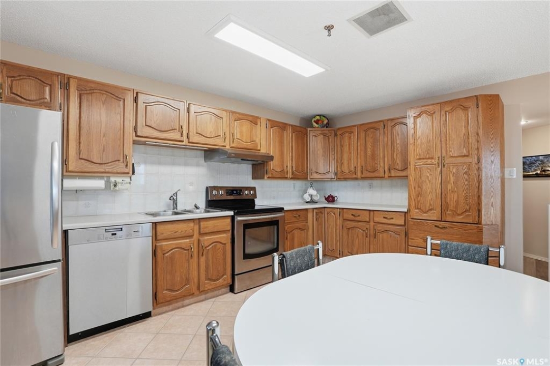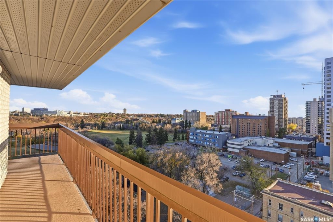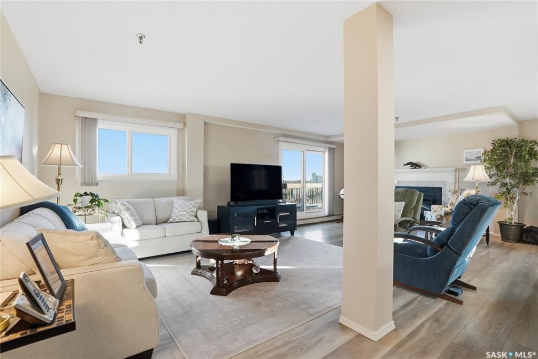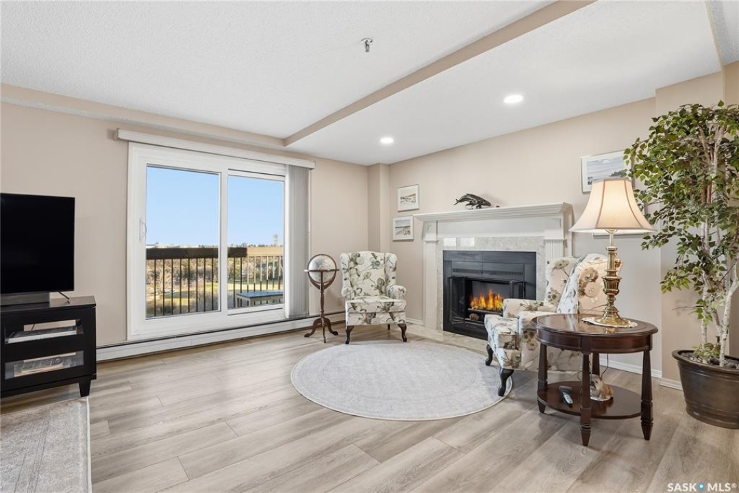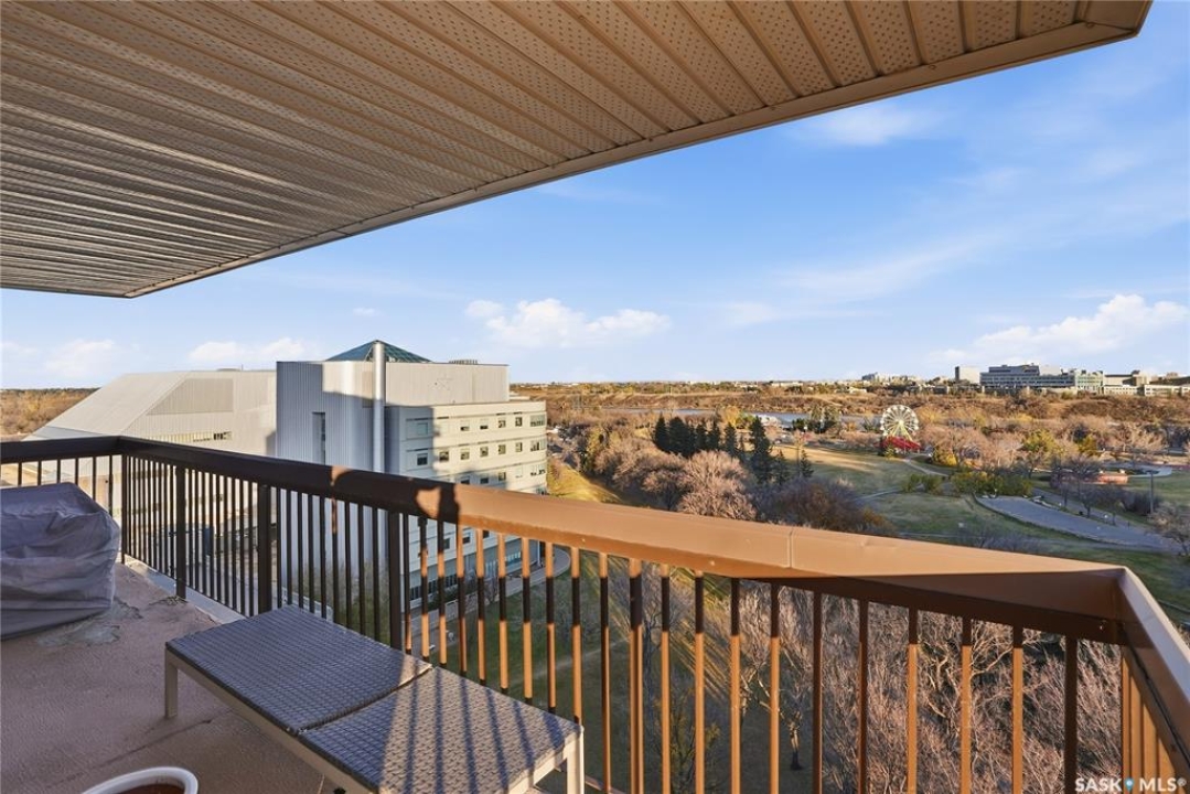Welcome to unit 1003 – 510 5th Ave North located in the heart of Saskatoon's desirable City Park neighborhood! This condo greets you with plenty of natural light flowing, a functional layout, and spectacular views overlooking Kinsmen Park! Step into your open concept living area, with laminate flooring, sliding glass door to your balcony with picturesque park views, gas fireplace against a tiled mantle, and recessed lighting. Your kitchen provides ample oak cabinetry, tiled backsplash, stainless steel appliances including fridge, stove, dishwasher and hood fan. Open to your formal dining space with a chandelier for a touch of elegance. Your king accommodating primary bedroom features a walk-through closet leading you to your 3-pc ensuite with glass shower and modern vanity. Second bedroom + a den, as well as a 4-pc bath with tile surround tub, a storage room with freezer and laundry hookup, completes this unit! The Discovery Park complex has it all – including an indoor pool, sauna, hot tub, fitness area, amenities room and library! With an unmatched location, only steps away from City Hospital, quick access to the U of S, downtown and our beautiful South Saskatchewan River, this is one you won't want to miss!
