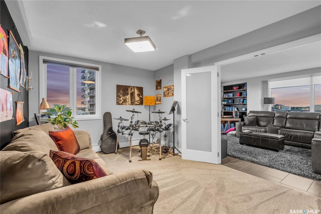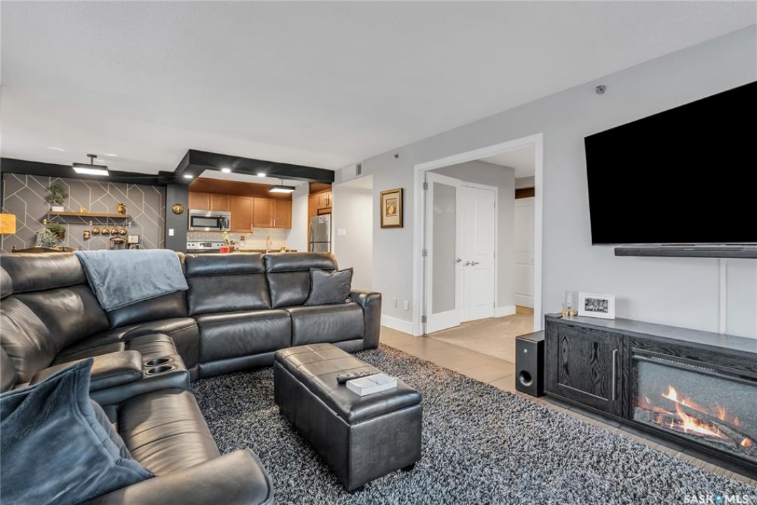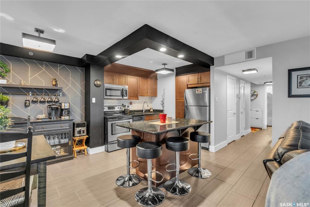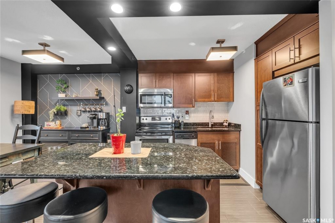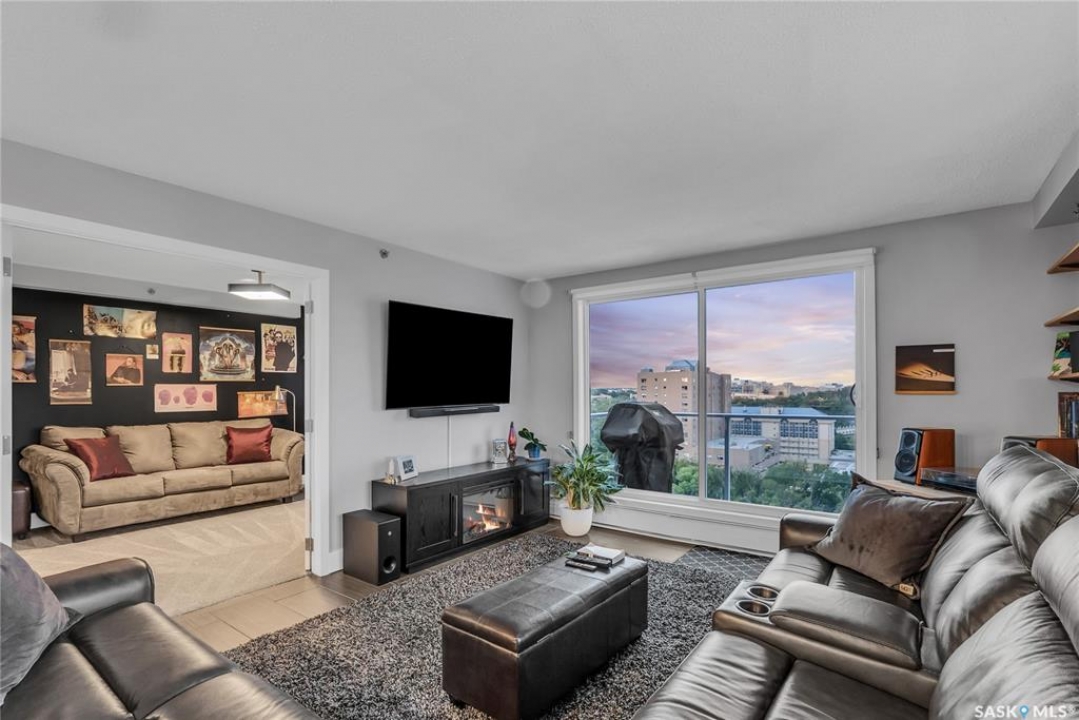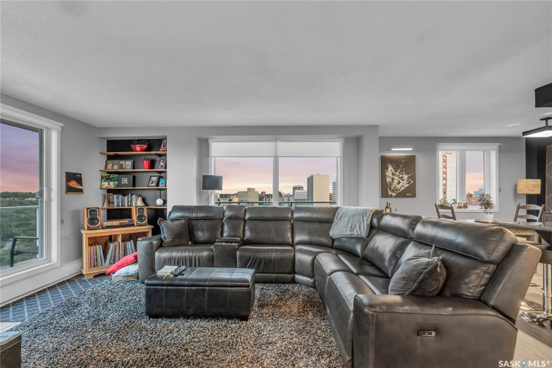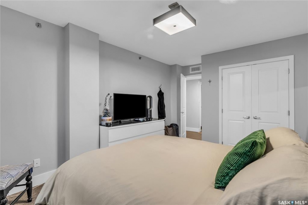 Corner Condo Unit with excellent River, Bessborough, and Saskatoon's city Skyline views from your 14th floor. Renovated Kitchen with quartz countertops & island, Stainless steel appliances included, spacious dining, open concept floor plan, 2-bedrooms, 4-piece bath & in-suite laundry. Floor-to-ceiling windows in the living room create a classy, bright corner unit with a balcony. Exclusive rooftop patio for residents, amenities and exercise room, close to downtown's best riverside paths, dining and entertainment and the UofS. Condo fees of $550/month include common area & exterior building maintenance, common insurance, heat, water, power, sewer, garbage, reserve fund, and snow removal. Don't miss your opportunity to experience some of the finest views in the city. Just listed MLS ONLY $284,000. Call your favourite realtor for a private viewing today!!! Quick Possession Available.