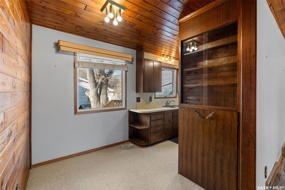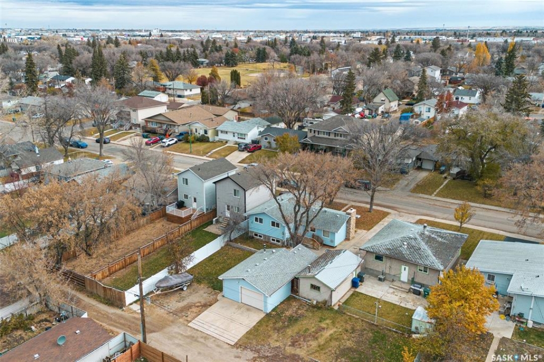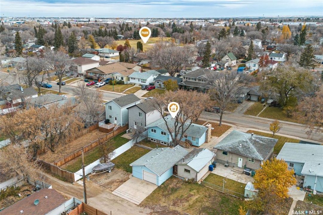 Welcome to 1513 Avenue G North in the desirable Mayfair area. This 1040 sq ft four-level split offers excellent potential with plenty of space for a growing family. The main level features a bright and inviting living room and dining area with large upgraded windows that fill the space with natural light. Upstairs you'll find three good-sized bedrooms and a full bathroom. The third level offers an additional bedroom, bathroom, and a spacious recreation room complete with a wet bar—perfect for entertaining or relaxing. The home features a beautiful custom stone fireplace, central air conditioning, and a large soaker tub. Some cosmetic upgrades would easily modernize this well-cared-for home has great layout potential. Outside, you'll appreciate the back alley access, a 26' x 20' oversized single garage with a wood stove, and ample yard space. With its functional floor plan, R2 zoning, and great Mayfair location, this property is a fantastic opportunity to build equity and make it your own.