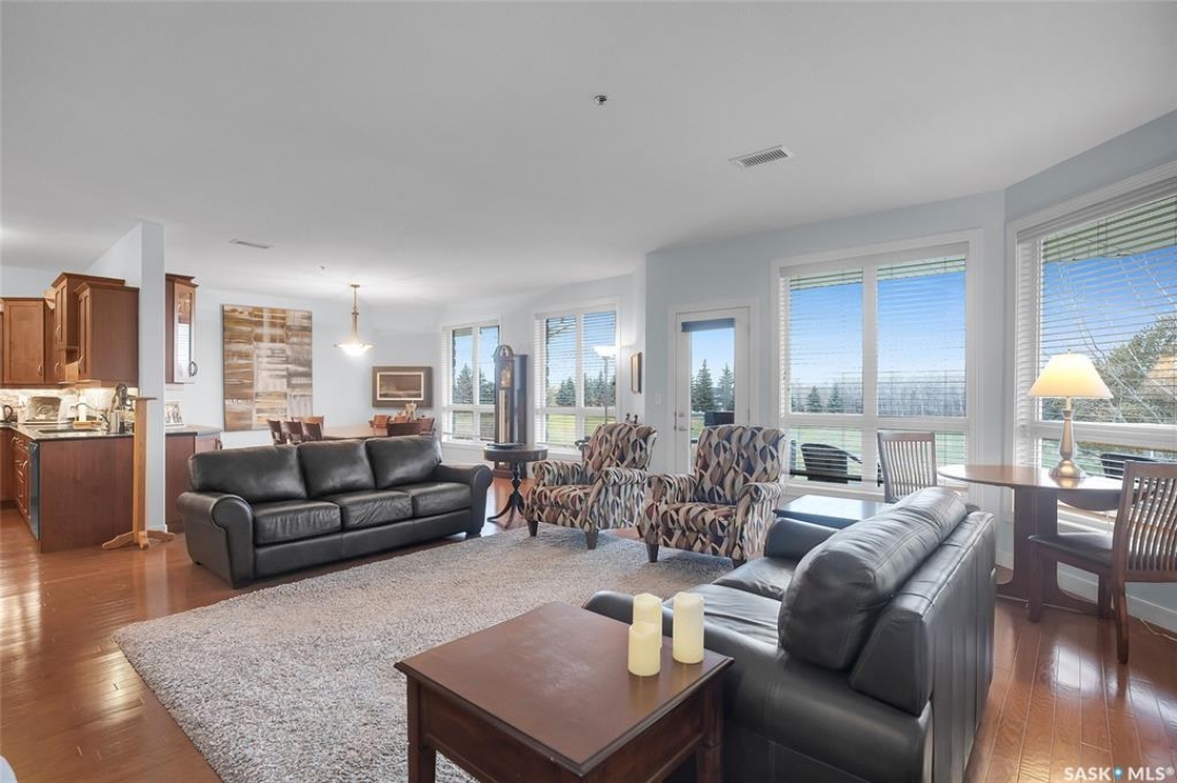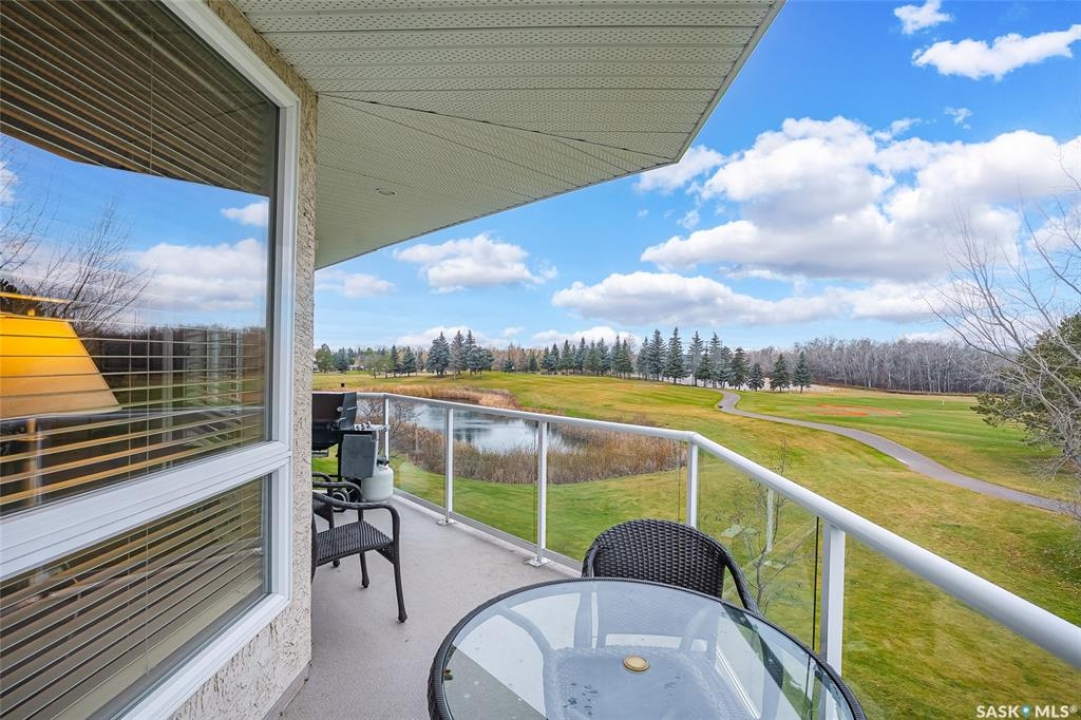 Stunning golf course views await you in this exceptional one owner condo unit. The open floor plan boasts an abundance of natural light pouring in through the numerous windows, showcasing the breathtaking scenery outside. Soaring nine foot ceilings add to the sense of spaciousness, creating an ideal atmosphere for entertaining and relaxation. The gourmet kitchen is equipped with high-quality cabinets, sleek granite countertops, and stainless steel appliances, including a newer refrigerator. The adjacent dining room features custom-designed cabinets, complete with a built-in wine fridge, bar fridge, and sink, perfect for hosting friends and family. Five piece ensuite bath offers his and hers sinks, and a walk-in closet. Step out onto the expansive wrap-around balcony, where you can soak in the panoramic golf course views and enjoy the fresh air. This condo unit also comes with a range of desirable amenities, including an exercise room, amenity room, and a spacious storage locker. Parking is convenient, with one heated underground stall, and one surface stall, as well as a wash bay for washing your vehicle. Visitors will appreciate the abundance of parking options available. Don't miss this incredible opportunity to own a piece of golf course paradise!