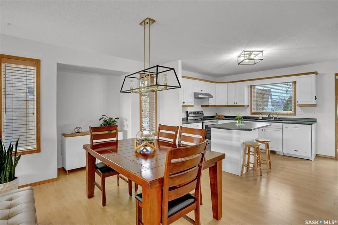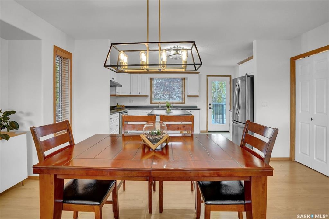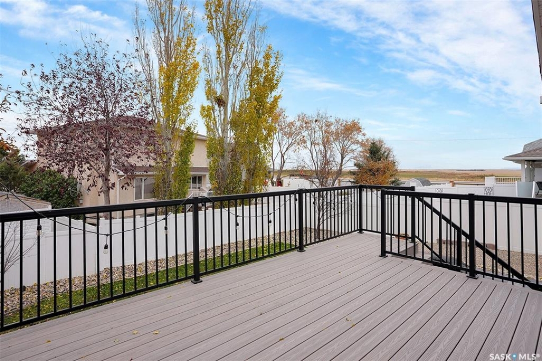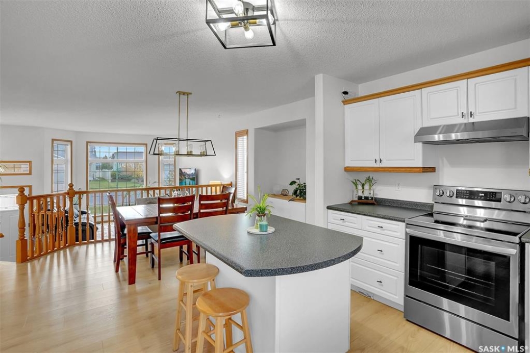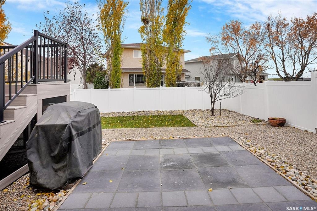 This home has great street appeal and an inviting design that sets it apart from the typical bi-level layout. The thoughtfully designed plan features a spacious front foyer allowing for a bright and open entrance. The staircase to the main level is set back into the home, creating an impressive main level that flows nicely. From the foyer, a few steps lead up to the living room with 9'8” ceilings and a floor-to-ceiling east facing picture window. The open concept continues upward to the dining area and kitchen, separated by a short flight of a few steps, an architectural feature that adds character and dimension to the space. The white kitchen is both stylish and functional with stainless steel appliances (fridge and stove December 2024), an overhead hood fan, a central vac floor sweep, large island and adjacent double door pantry. The dining area includes a built-in niche for a hutch and south-facing windows. Convenient main floor laundry with upper cabinets adds extra practicality. The primary bedroom comfortably accommodates a king sized bed and includes a walk-in closet and 3 piece ensuite. A second upstairs bedroom is generously sized and located near the main 4 piece bathroom. The basement offers excellent additional living space with a rec room, bedroom and a renovated 3 piece bathroom. There's also a large storage area and both the rec room and bedroom have Rockwool insulation in the ceiling for added soundproofing and comfort. The attached garage has radiant heat & an 11' ceiling, ideal for additional storage. The backyard is beautifully landscaped with a new composite deck, privacy wall and screened in under deck storage, a custom built patio & PVC fencing on 3 sides (one side wood). Additional highlights include: Constructed with a floor truss system, New furnace and water heater (October 2025), New washer and dryer (June 2023), New front and back doors (2023), New flooring throughout the main level (2023), New light fixtures throughout the main level.