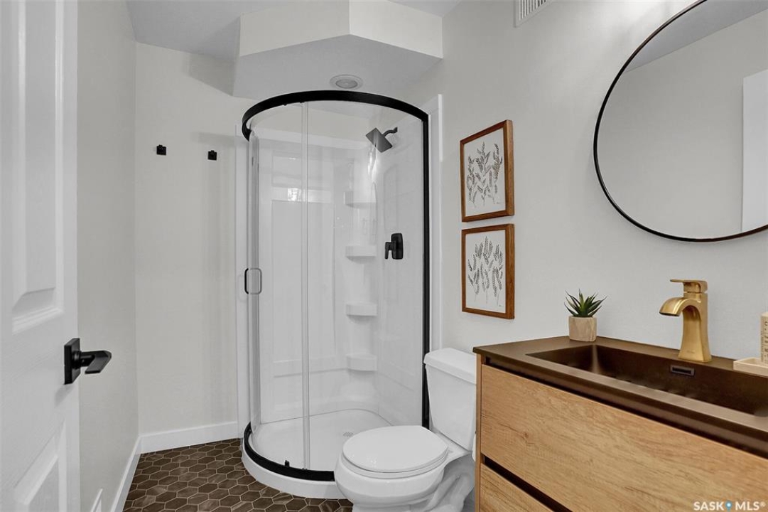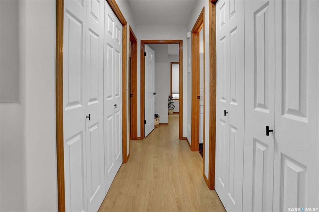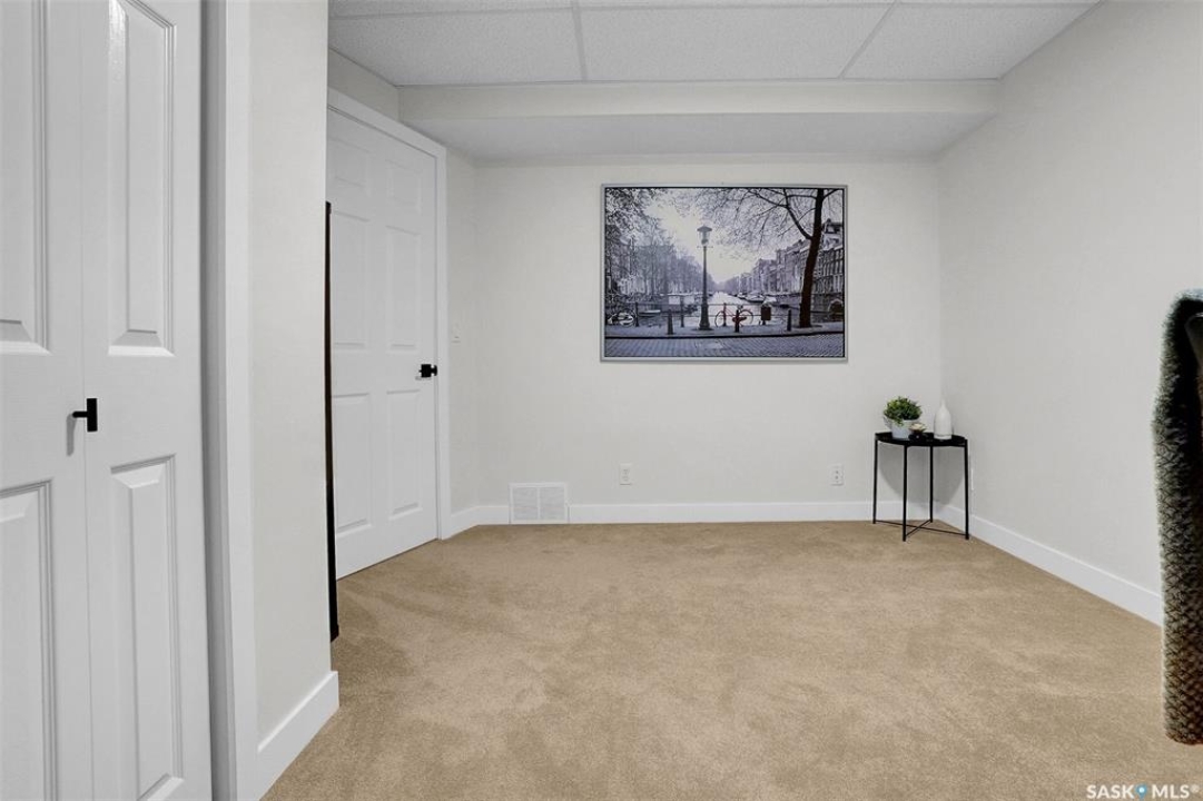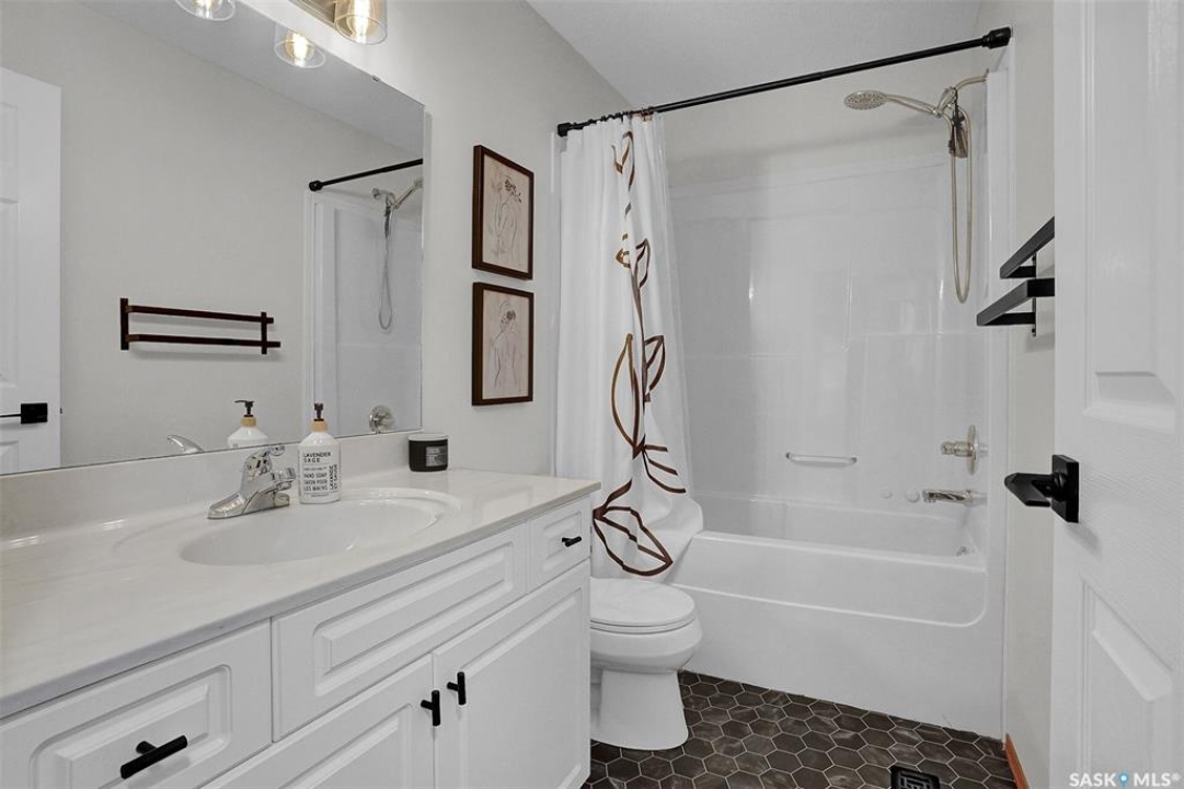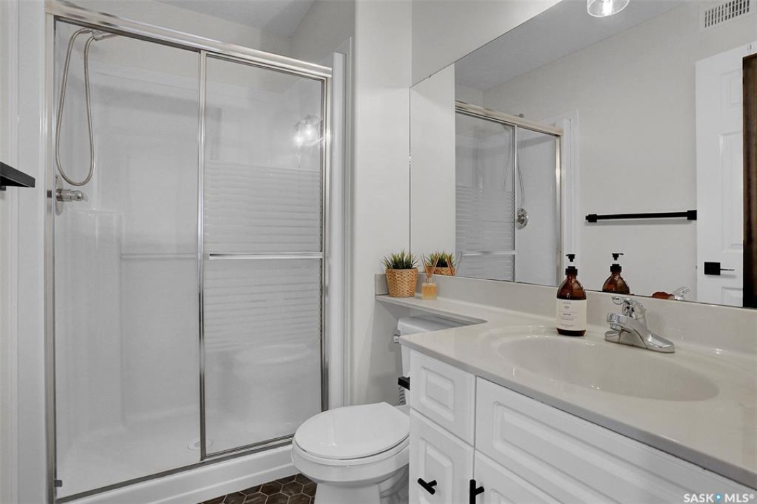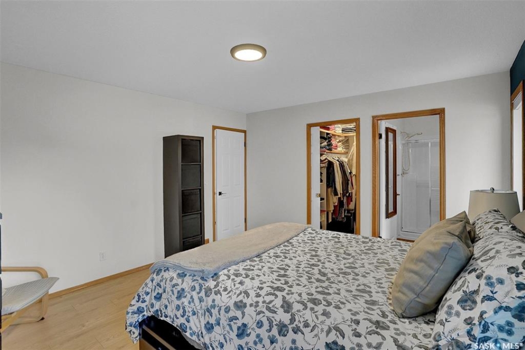 This home has great street appeal and an inviting design that sets it apart from the typical bi-level layout. The thoughtfully designed plan features a spacious front foyer allowing for a bright and open entrance. The staircase to the main level is set back into the home, creating an impressive main level that flows nicely. From the foyer, a few steps lead up to the living room with 9'8” ceilings and a floor-to-ceiling east facing picture window. The open concept continues upward to the dining area and kitchen, separated by a short flight of a few steps, an architectural feature that adds character and dimension to the space. The white kitchen is both stylish and functional with stainless steel appliances (fridge and stove December 2024), an overhead hood fan, a central vac floor sweep, large island and adjacent double door pantry. The dining area includes a built-in niche for a hutch and south-facing windows. Convenient main floor laundry with upper cabinets adds extra practicality. The primary bedroom comfortably accommodates a king sized bed and includes a walk-in closet and 3 piece ensuite. A second upstairs bedroom is generously sized and located near the main 4 piece bathroom. The basement offers excellent additional living space with a rec room, bedroom and a renovated 3 piece bathroom. There's also a large storage area and both the rec room and bedroom have Rockwool insulation in the ceiling for added soundproofing and comfort. The attached garage has radiant heat & an 11' ceiling, ideal for additional storage. The backyard is beautifully landscaped with a new composite deck, privacy wall and screened in under deck storage, a custom built patio & PVC fencing on 3 sides (one side wood). Additional highlights include: Constructed with a floor truss system, New furnace and water heater (October 2025), New washer and dryer (June 2023), New front and back doors (2023), New flooring throughout the main level (2023), New light fixtures throughout the main level.