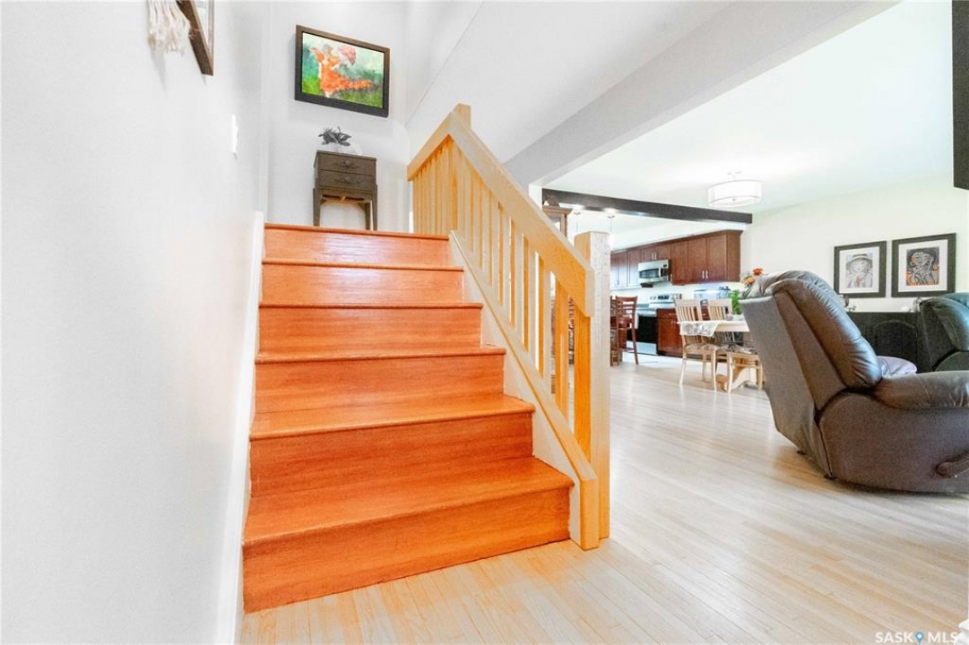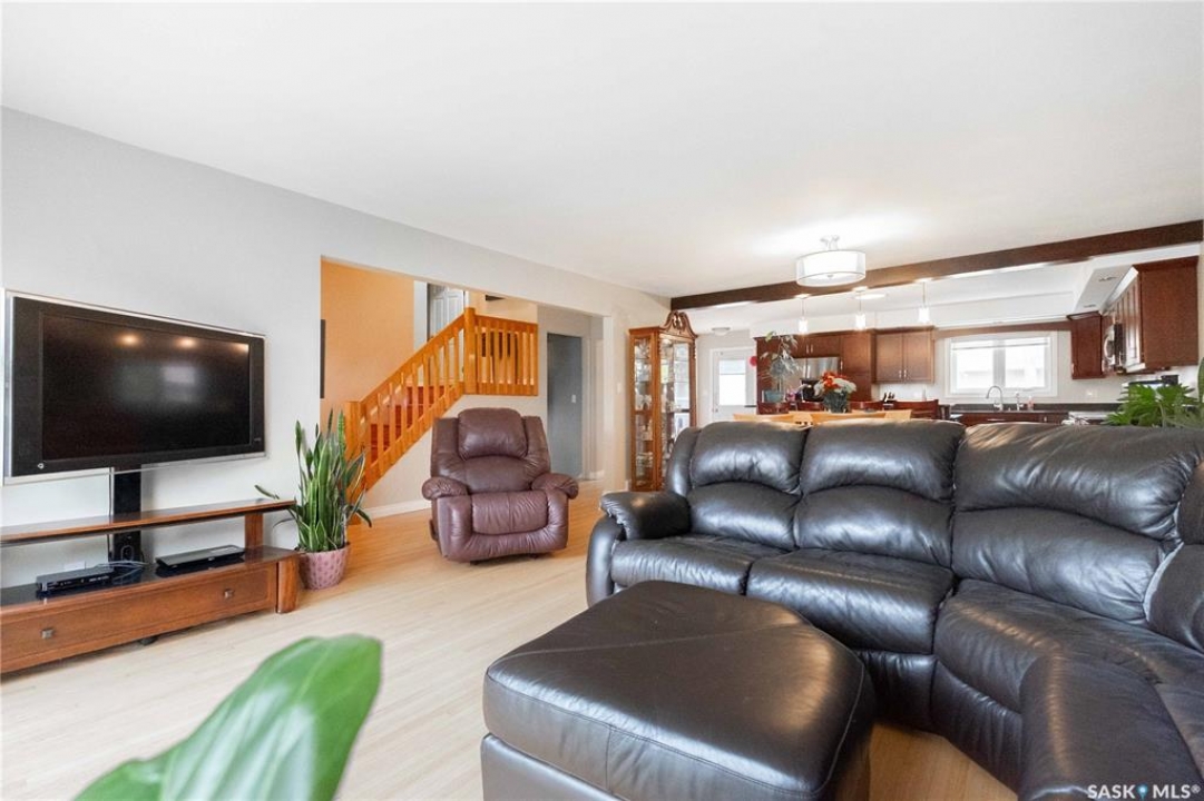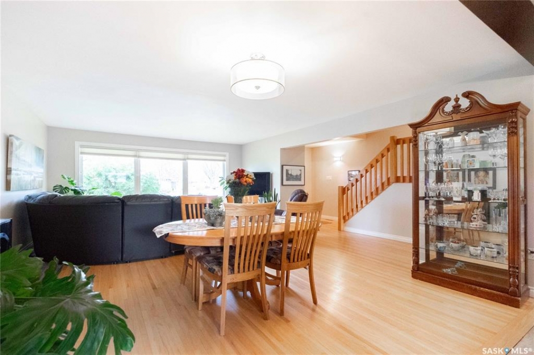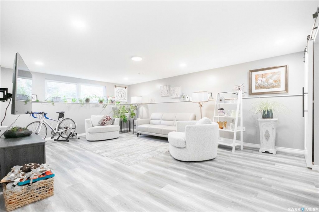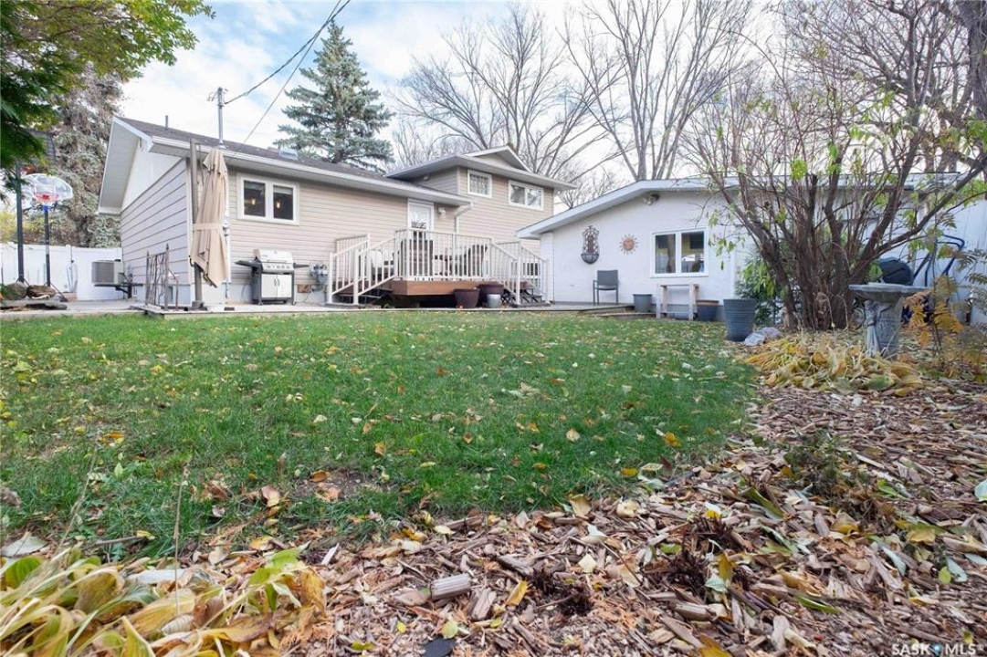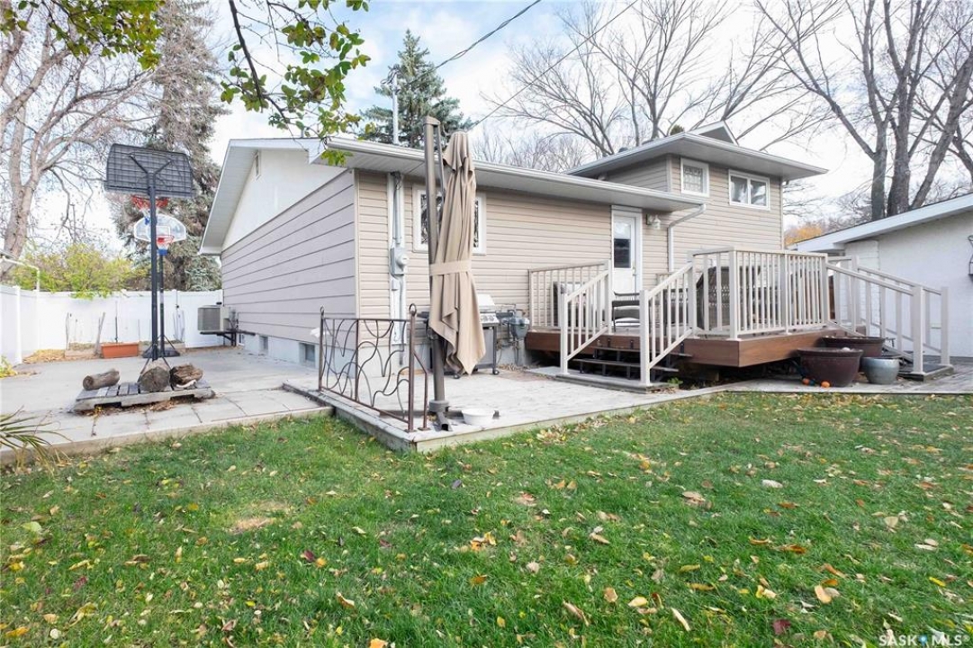Welcome to 3 Dolphin Bay. This charming 1860 sq.ft., 4-level split located in the desirable sub-division of Whitmore Park in south Regina is the perfect blend of comfort, style and location. Step inside to a spacious front entry, leading to the heart of the home, the living room, dining and kitchen area create a bright and open atmosphere. 16' x 20' living room features original oak hardwood floors, large floor to ceiling picture window installed in 2020. Chef friendly island style kitchen boasts an ample amount of Cherry Wood cabinets with soft close drawers and cabinets, roll outs and lazy Susan. Quartz counter tops with eat-up counter at island. Dura ceramic kitchen flooring and small skylight. Fridge and stove new in 2025, and microwave hood fan included. Three good size bedrooms up with hardwood floors and a well appointed 4-piece bathroom with tile floors and an attractive glass block window. Fully renovated 3rd level with a beautiful spacious family room, versatile den/office(has been used as a bedroom) plus a good size 3-piece bathroom. Large TV/Recreation room in basement, walls insulated with high efficient spray foam for better warmth and comfort. Lots of storage space. Washer and dryer new in 2024 are included. Step outside to the deck off the kitchen, you have a good size yard(7355 sq ft lot) concrete patio area, vinyl fencing 2024, vinyl siding 2025. underground sprinklers front yard. Double detached garage with shed built in. Other upgrades include, high efficient furnace, central air conditioning, most windows replaced in 2020, window treatments included. This property is close to elementary, high schools, the University of Regina and all south end Regina amenities.