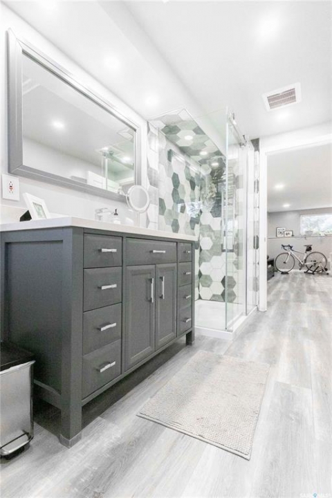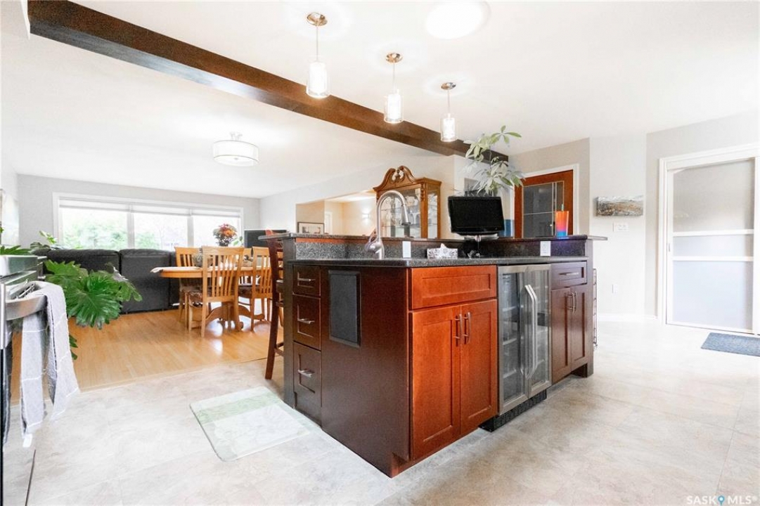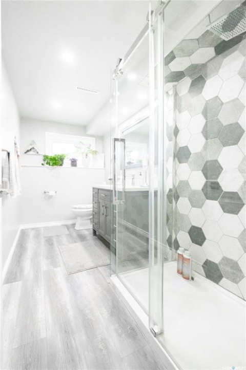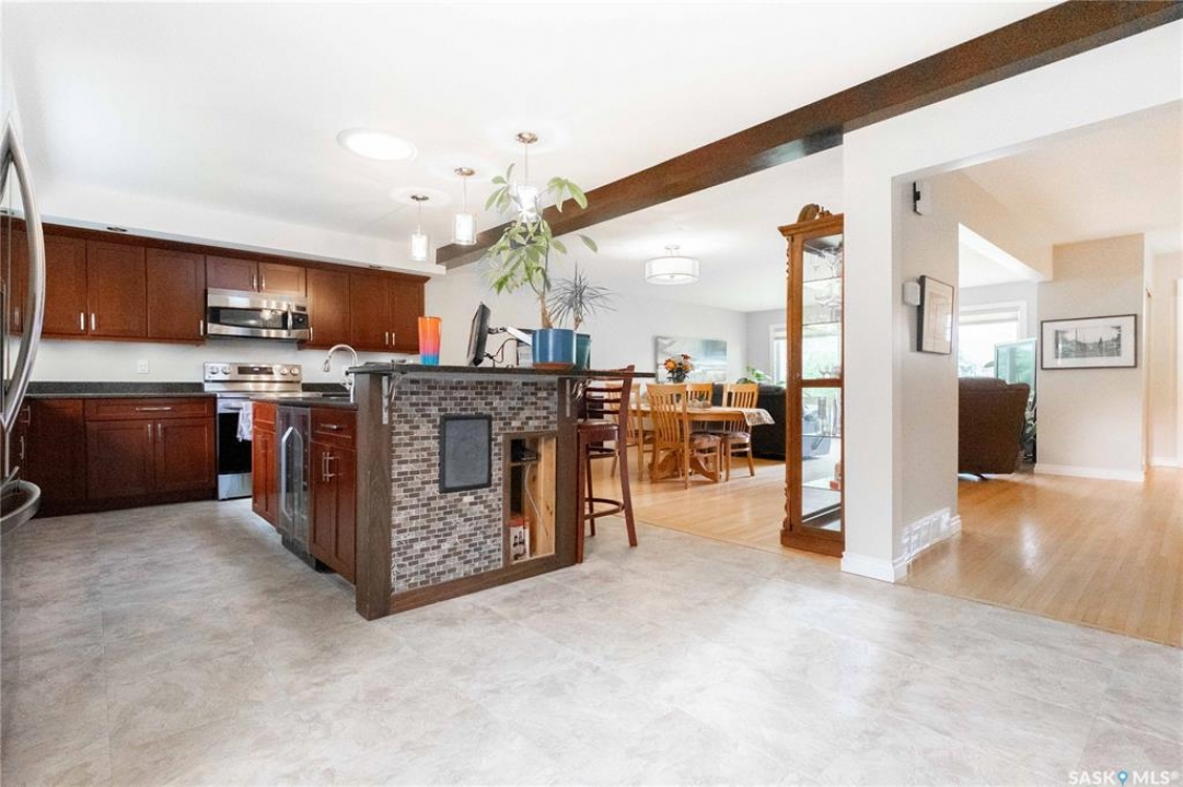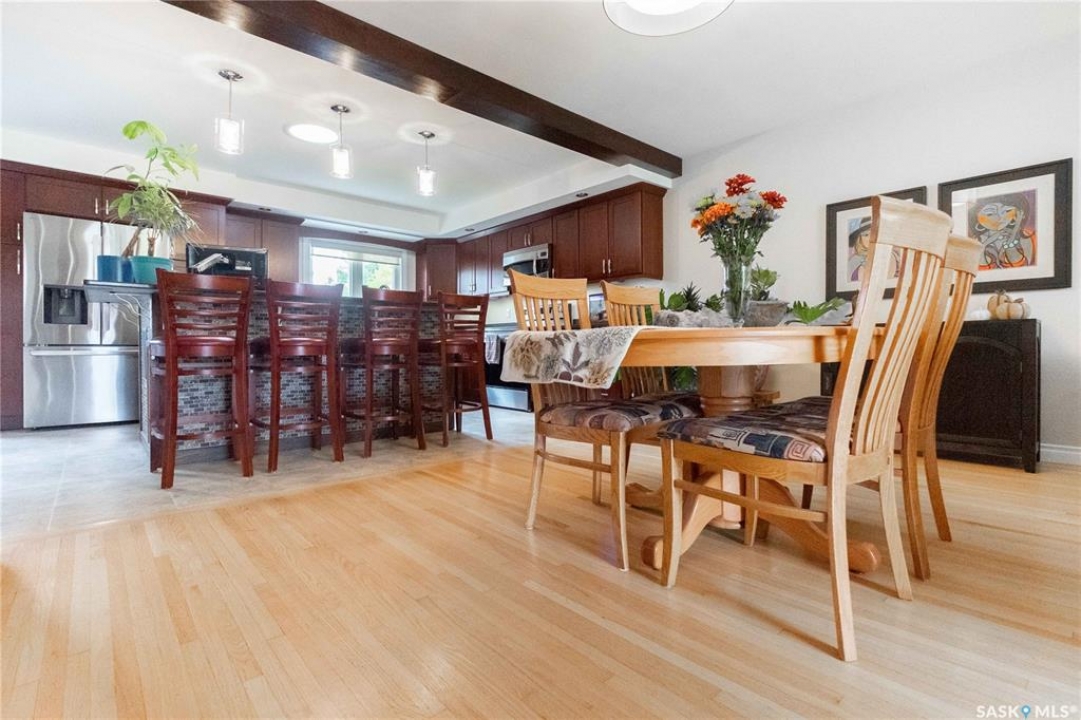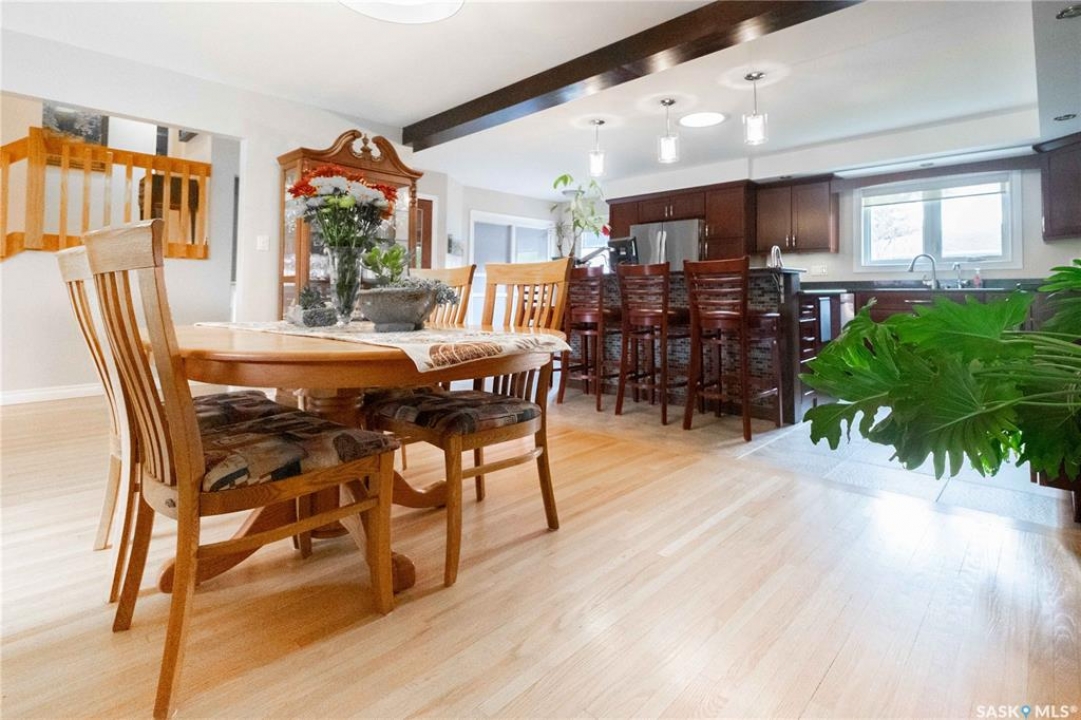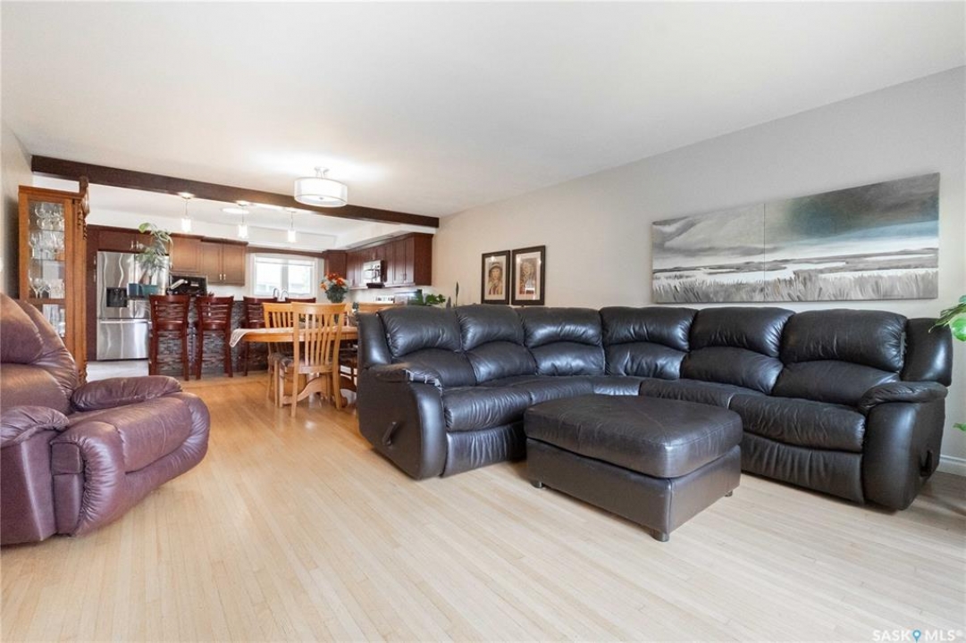 Welcome to 3 Dolphin Bay. This charming 1860 sq.ft., 4-level split located in the desirable sub-division of Whitmore Park in south Regina is the perfect blend of comfort, style and location. Step inside to a spacious front entry, leading to the heart of the home, the living room, dining and kitchen area create a bright and open atmosphere. 16' x 20' living room features original oak hardwood floors, large floor to ceiling picture window installed in 2020. Chef friendly island style kitchen boasts an ample amount of Cherry Wood cabinets with soft close drawers and cabinets, roll outs and lazy Susan. Quartz counter tops with eat-up counter at island. Dura ceramic kitchen flooring and small skylight. Fridge and stove new in 2025, and microwave hood fan included. Three good size bedrooms up with hardwood floors and a well appointed 4-piece bathroom with tile floors and an attractive glass block window. Fully renovated 3rd level with a beautiful spacious family room, versatile den/office(has been used as a bedroom) plus a good size 3-piece bathroom. Large TV/Recreation room in basement, walls insulated with high efficient spray foam for better warmth and comfort. Lots of storage space. Washer and dryer new in 2024 are included. Step outside to the deck off the kitchen, you have a good size yard(7355 sq ft lot) concrete patio area, vinyl fencing 2024, vinyl siding 2025. underground sprinklers front yard. Double detached garage with shed built in. Other upgrades include, high efficient furnace, central air conditioning, most windows replaced in 2020, window treatments included. This property is close to elementary, high schools, the University of Regina and all south end Regina amenities.