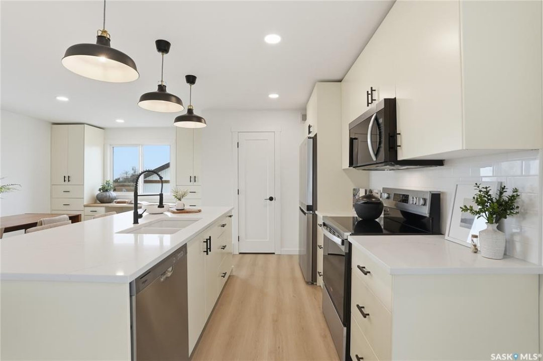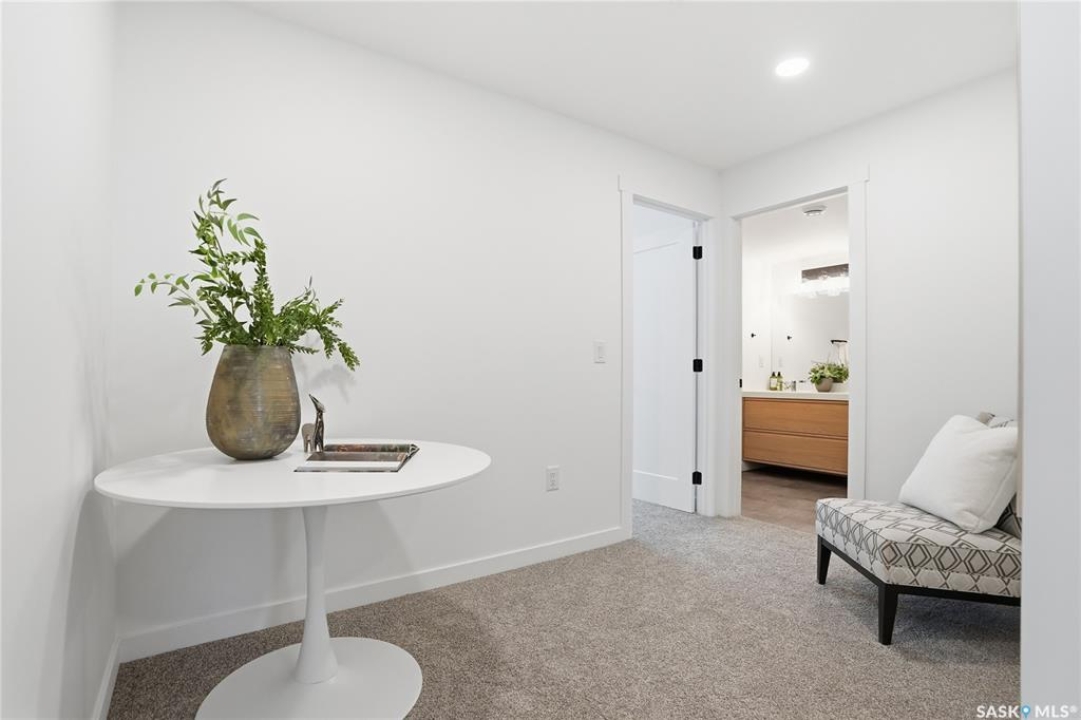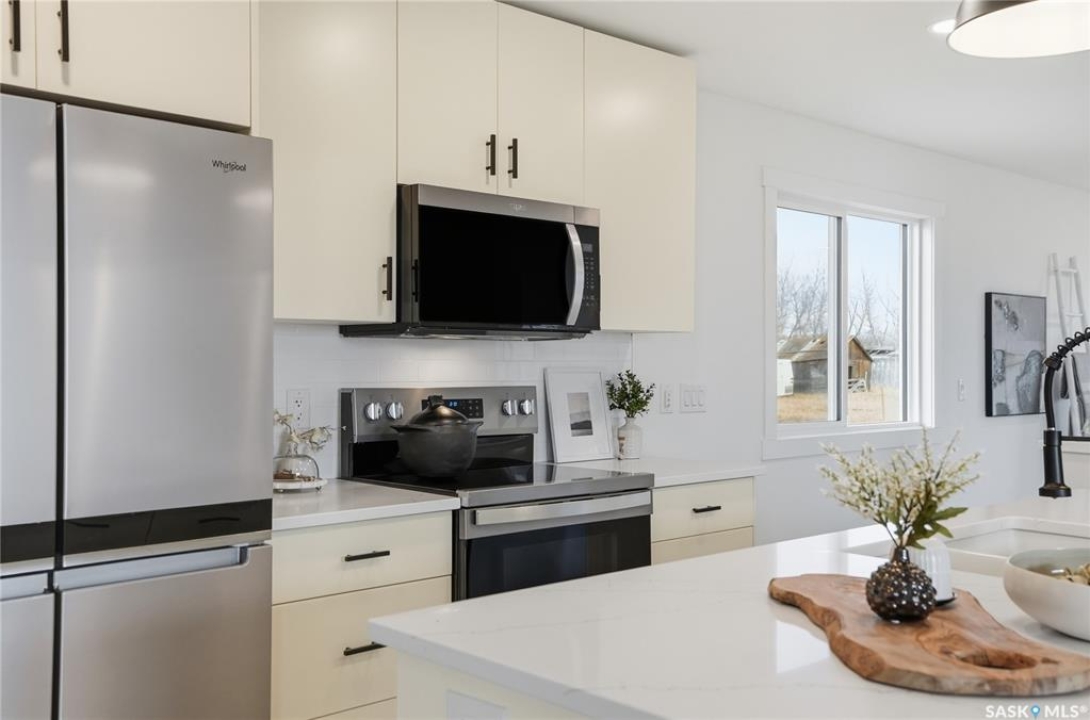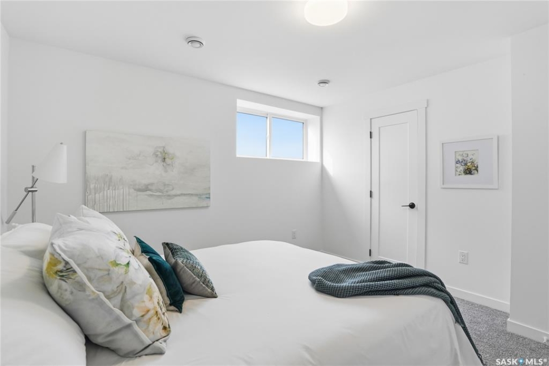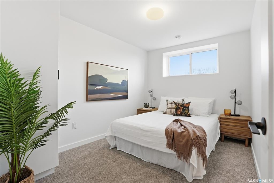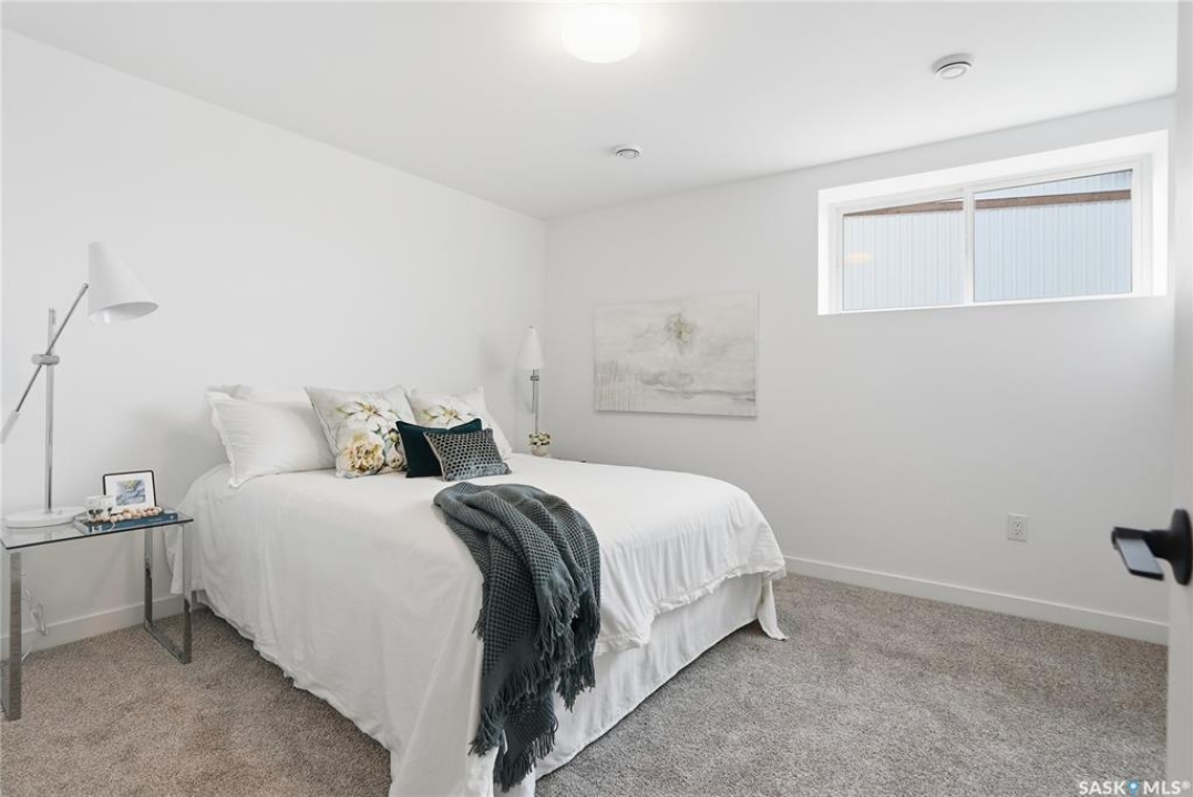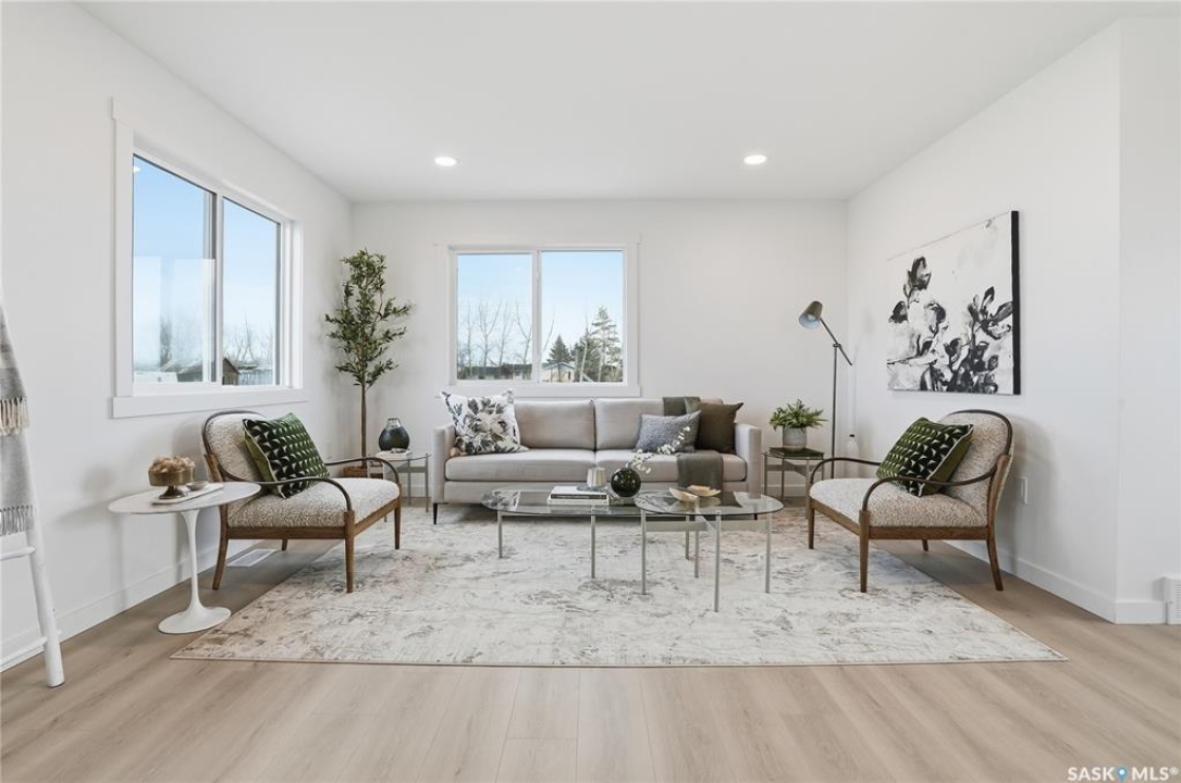 What an Opportunity! Just minutes west of Saskatoon—enjoy peaceful acreage living with city convenience! This newly constructed property sits on 3 acres and offers just over 1,700 sq. ft. of developed space (856 sq. ft. on the main level), featuring 4 beds, two baths, a fully developed basement, and an impressive heated triple detached garage (36' wide with a double overhead door). The home welcomes you home with a charming covered front porch and a functional large foyer complete with a built-in bench and a separate boot room area with floor-to-ceiling wardrobes. The open-concept main floor connects a spacious living room, dining area, and kitchen. The kitchen is a standout, showcasing an abundance of custom lacquer cabinetry, full-height pantry storage, quartz countertops, stainless steel appliances including a microwave hood fan, subway tile backsplash, and an oversized island ideal for large gatherings. The adjacent dining room easily accommodates a large table for the entire family! A convenient two-piece bath completes the main level. An open staircase leads to the bright lower level, which offers four bedrooms (one smaller—ideal as a nursery, office, or den), a spacious family-style 4-piece bathroom, and a large walk-in closet in the primary bedroom. Outside, the detached 36' heated and insulated garage is a dream setup—complete with a workshop area and a double overhead door. The yard is unlandscaped but cleared and ready for your personal design—bring your garden plans and your green thumb. Property is built by a reputable experience Saskatoon builder.
