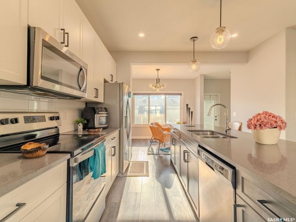 Ehrenburg built Semi Detached development in Brighton. Beautiful exterior design with bricks and siding. Conveniently located close to future schools, large parks and walking trails. This model is a 1520 sq ft. 2 storey with an open concept main floor. Kitchen includes a spacious island, superior built custom cabinets, built in OTR microwave and dishwasher, Quartz counter tops and open eating area. 2nd Level - 3 bedrooms. master bedroom with walk-in closet and 4 piece en-suite (shower & 2 sink vanity) BONUS ROOM on 2nd level. Basement newly finished with one bedroom , a full bath and recreation area. Front and back yard landscaped. large capacity air conditioner, upgraded deck, front patio plus a 20 X 20 double garage . Shows 100 percent.