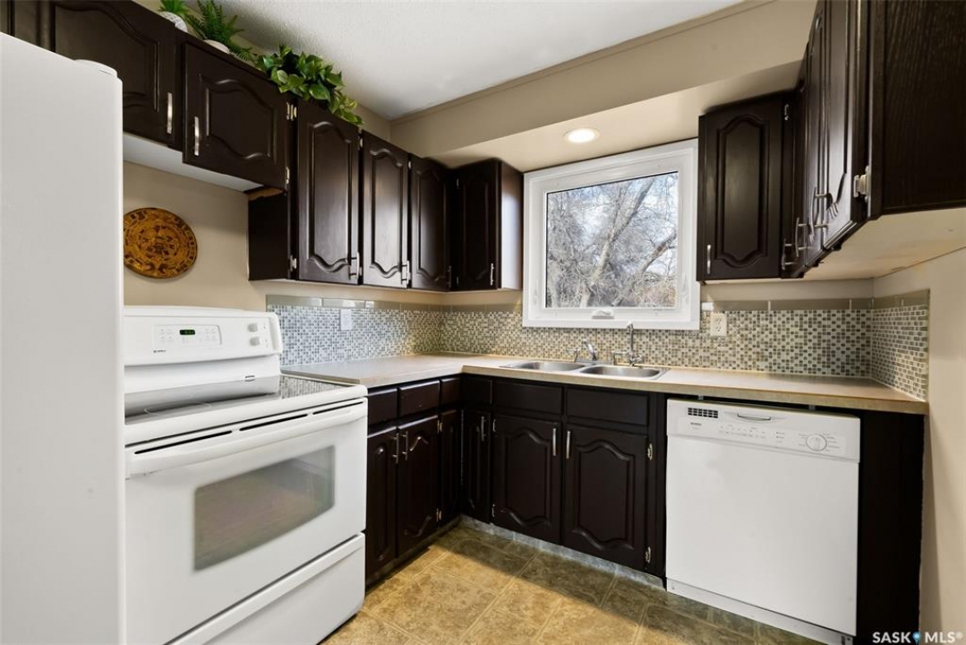 Welcome to 14 Pearson Place, nestled on a quiet bay in the highly sought after neighbourhood of Albert Park in Regina's South End. This 1,336 sq. ft. four level split offers 3 bedrooms, 2 bathrooms, and a great double detached garage. The main floor features a bright, open living room with a cozy feature fireplace and excellent flow into the dining area and kitchen. Upstairs, you'll find the primary and secondary bedrooms along with a refreshed main bathroom. The third level includes a spacious family room, a third bedroom, and another updated bathroom, while the lower level offers additional living space with a bar, plus laundry, storage, and utilities. Outside, enjoy the tree covered yard with a patio, fire pit area, and partial fencing. Added value features include some newer windows, a newer electrical panel, natural gas hookup, front and back sprinklers, central air, and central vac.