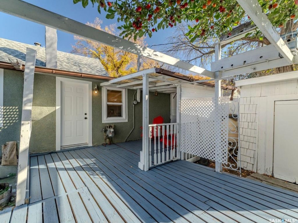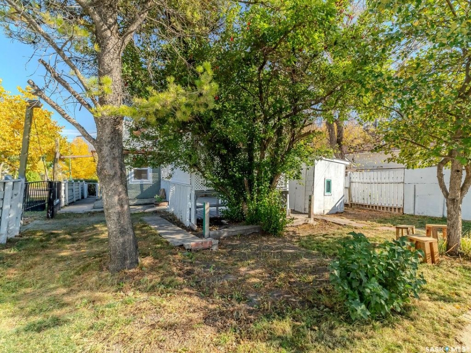 Welcome to 1423 6th Ave N, a cozy renovated home on a desirable corner lot. This property features 2 bedrooms, 1 full bathroom, and a bright, sun-filled living space with large bay windows. The modern kitchen with new appliances adds both style and functionality. Located in a well-established neighborhood, this home offers excellent access to downtown, Circle Drive, the industrial area. Elementary schools, and the river—within walking distance. The mature backyard is a true highlight, with apple and cherry trees, grape vines, birdhouses, a deck with a built-in bench (partially enclosed), and plenty of room for outdoor enjoyment. With two-street access and a spacious yard, there's strong potential for a future garden suite or additional development check with city permits. This charming home is perfect for first-time buyers, investors, or anyone looking for a centrally located property with great possibilities.