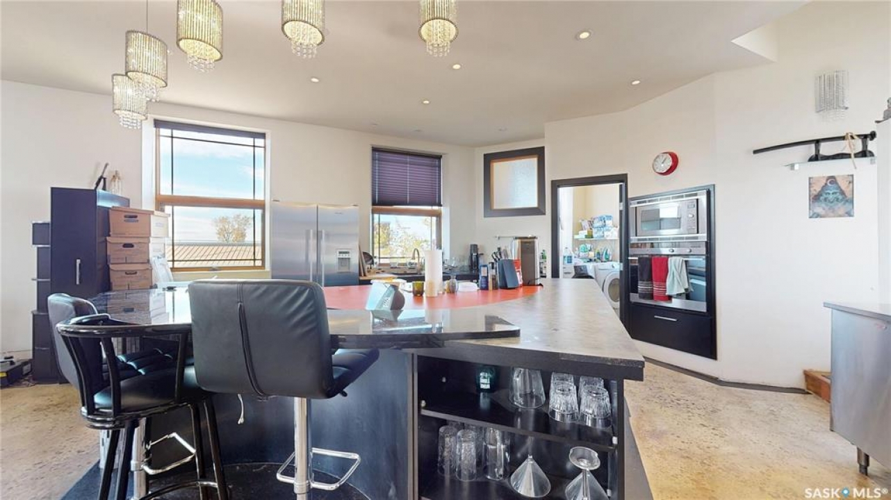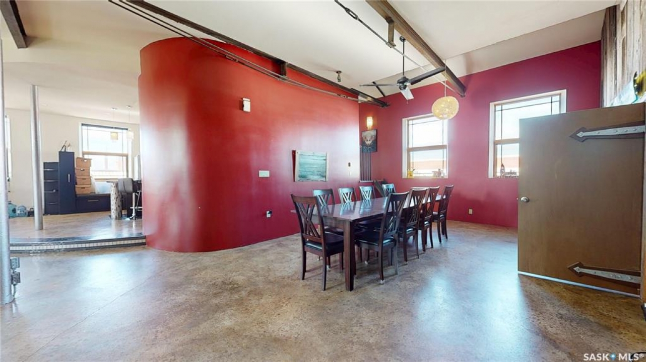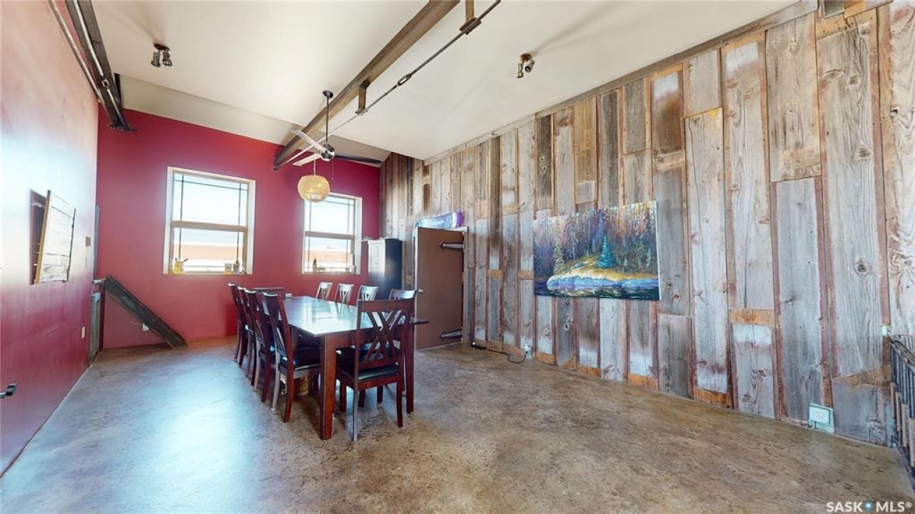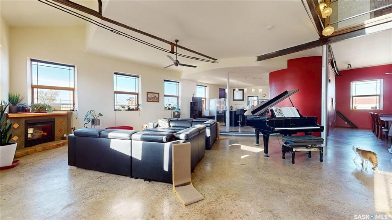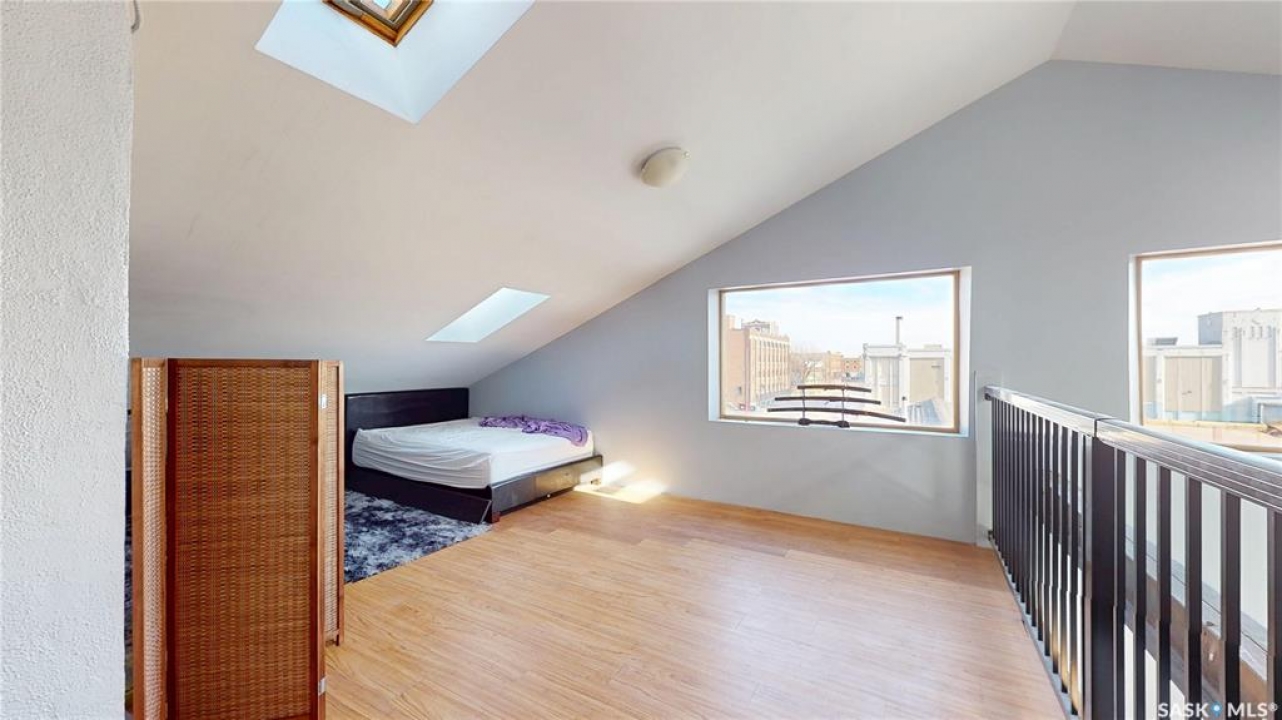 Welcome to one of Regina's most distinctive and impressive Warehouse District residences. This exceptional condo offers over 3,500 sq. ft. of living space, blending historic industrial charm with modern luxury. Perfect for professionals seeking a bold, inspiring environment, this unique property combines architectural character with practical design for both home and work life. Inside, you're greeted by soaring vaulted ceilings, 36 oversized windows, and multiple skylights, bathing every corner in natural light. The freight elevator serves as both a functional feature and a statement piece of the home's heritage. A spacious private balcony provides an ideal retreat for outdoor dining or relaxing under the city skyline - an incredibly rare amenity in the Warehouse District. Designed for flexibility, the open-concept floor plan features expansive living and dining areas, a large professional office, and a soundproof theatre room perfect for entertainment or presentations. The primary suite offers 2 generous walk-in closets and a spa-inspired en-suite with dual shower heads. High-end finishes, and architectural details highlight the unique character of this one-of-a-kind home. Additional features include a two-car attached garage, in-suite laundry, pet friendly policies, and proximity to downtown dining, breweries, and fitness studios. More than just a condo, this property represents an exclusive opportunity to live, work, and entertain in style at the heart of Regina's Warehouse community. 3,500+ sq. ft., 2 Bedrooms, Loft, 3 Bathrooms, 2-car Garage, Private Balcony, Pet Friendly, Low Condo Fees, In Floor Heating