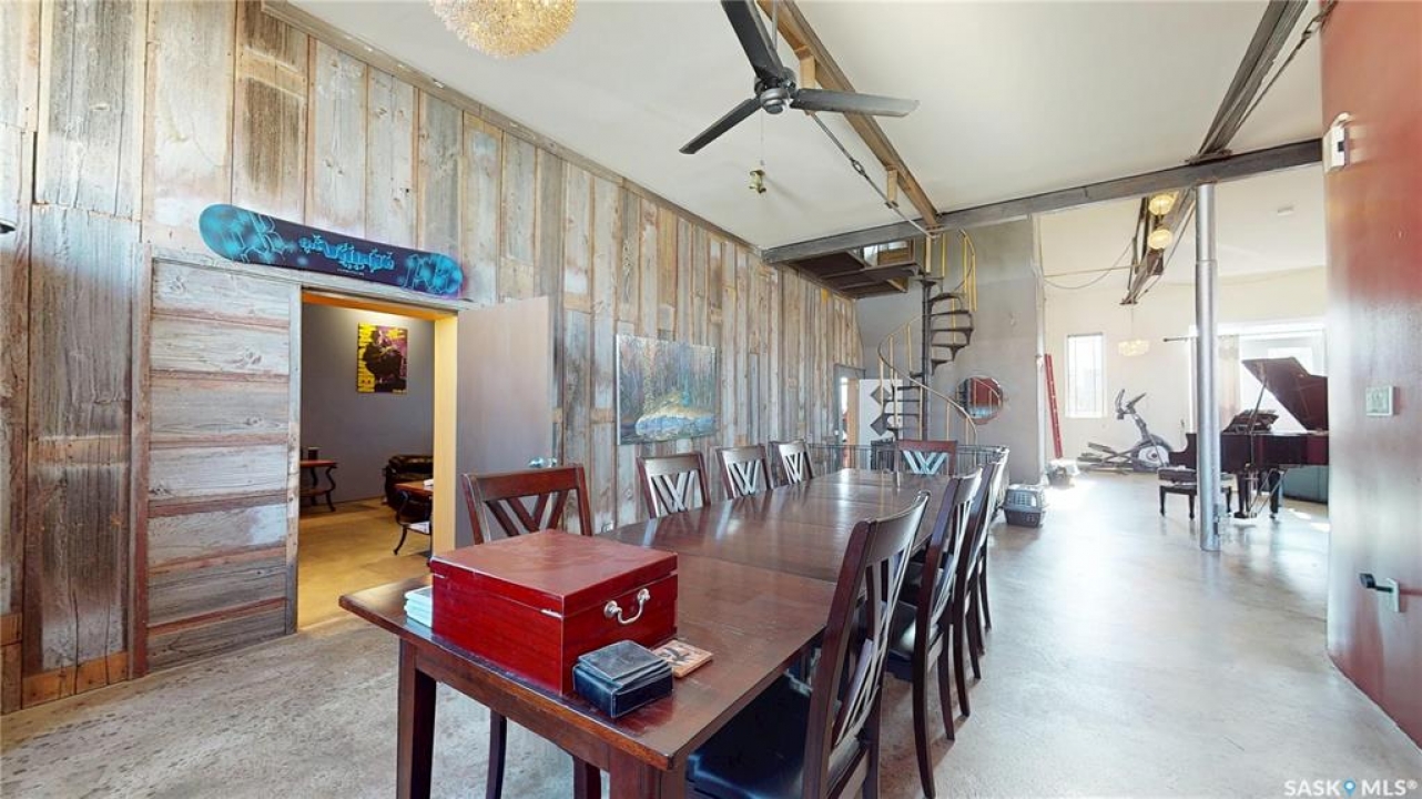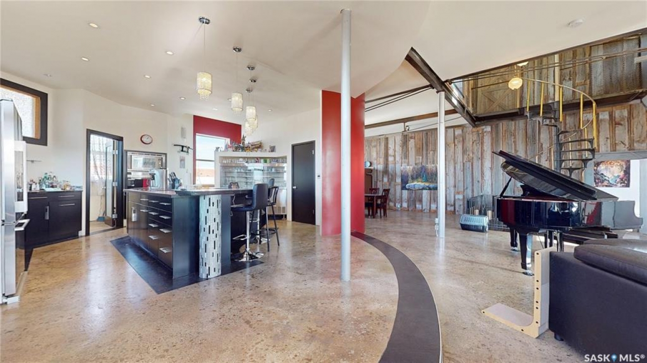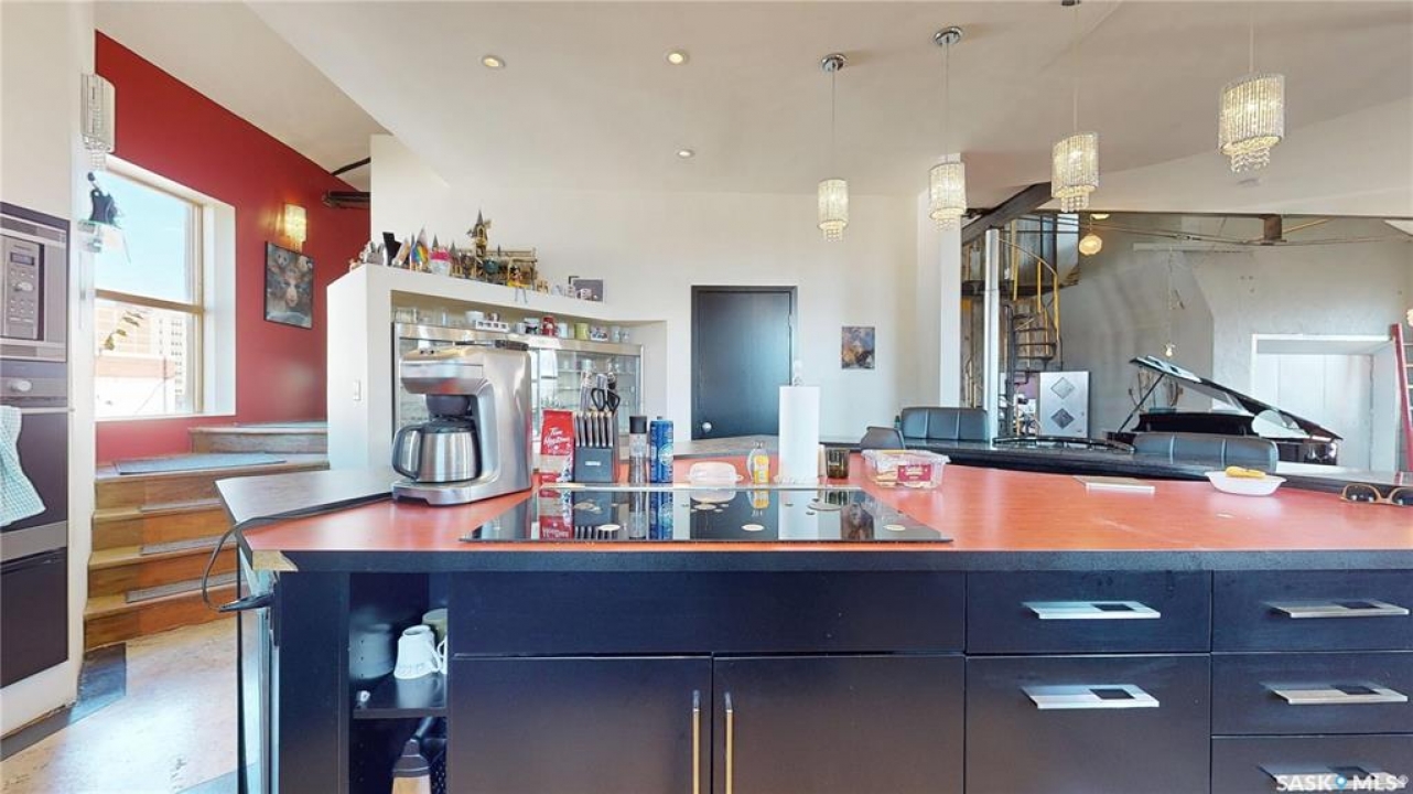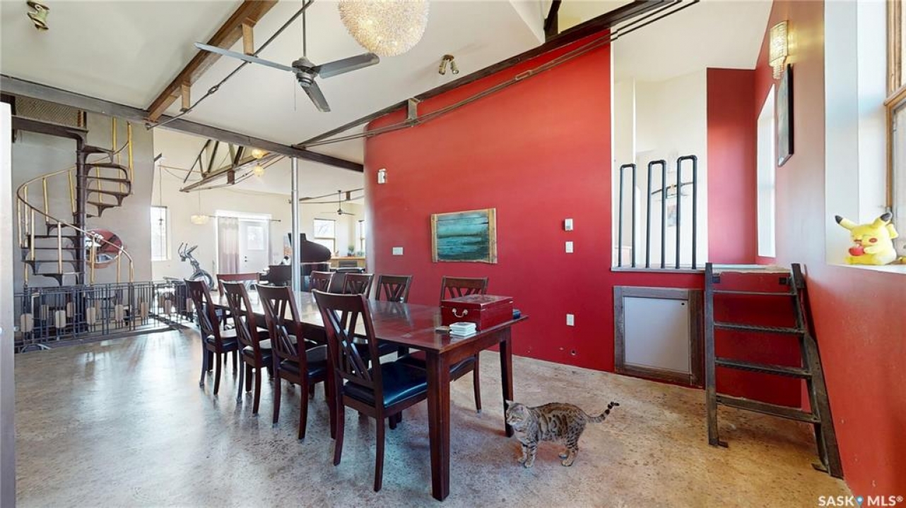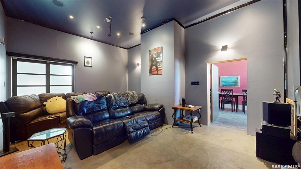 Welcome to one of Regina's most distinctive and impressive Warehouse District residences. This exceptional condo offers over 3,500 sq. ft. of living space, blending historic industrial charm with modern luxury. Perfect for professionals seeking a bold, inspiring environment, this unique property combines architectural character with practical design for both home and work life. Inside, you're greeted by soaring vaulted ceilings, 36 oversized windows, and multiple skylights, bathing every corner in natural light. The freight elevator serves as both a functional feature and a statement piece of the home's heritage. A spacious private balcony provides an ideal retreat for outdoor dining or relaxing under the city skyline - an incredibly rare amenity in the Warehouse District. Designed for flexibility, the open-concept floor plan features expansive living and dining areas, a large professional office, and a soundproof theatre room perfect for entertainment or presentations. The primary suite offers 2 generous walk-in closets and a spa-inspired en-suite with dual shower heads. High-end finishes, and architectural details highlight the unique character of this one-of-a-kind home. Additional features include a two-car attached garage, in-suite laundry, pet friendly policies, and proximity to downtown dining, breweries, and fitness studios. More than just a condo, this property represents an exclusive opportunity to live, work, and entertain in style at the heart of Regina's Warehouse community. 3,500+ sq. ft., 2 Bedrooms, Loft, 3 Bathrooms, 2-car Garage, Private Balcony, Pet Friendly, Low Condo Fees, In Floor Heating