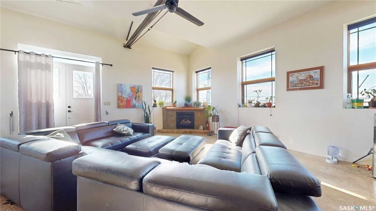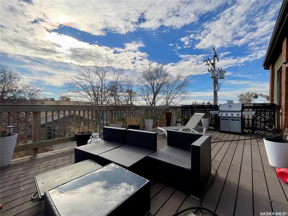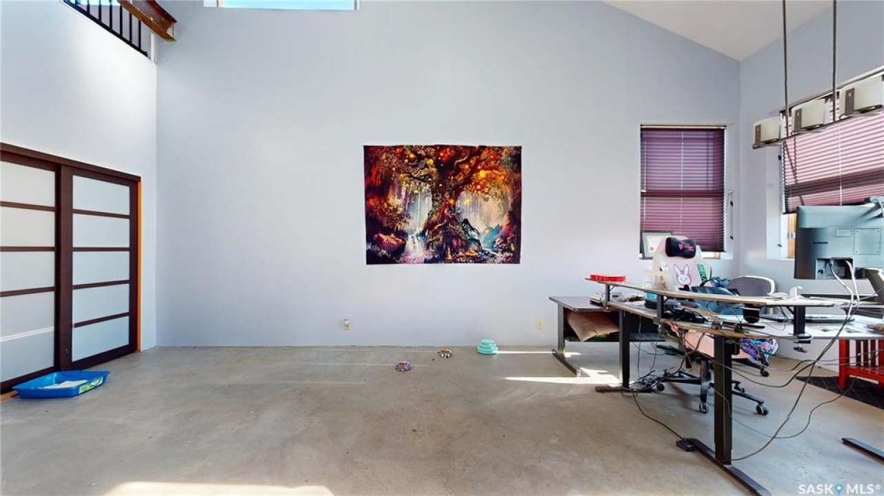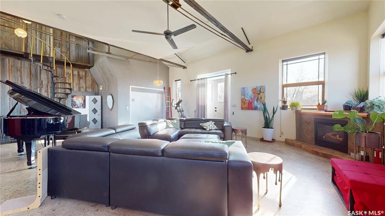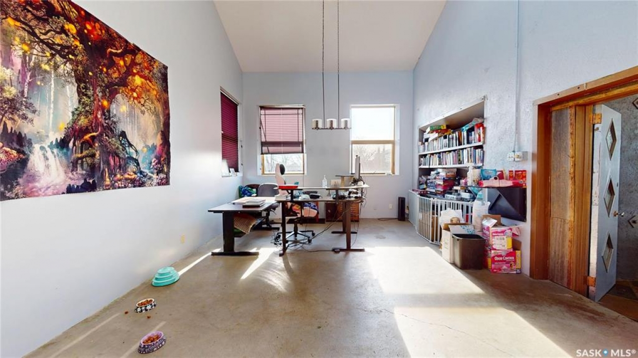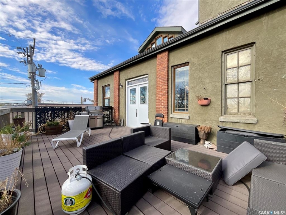 Welcome to one of Regina's most distinctive and impressive Warehouse District residences. This exceptional condo offers over 3,500 sq. ft. of living space, blending historic industrial charm with modern luxury. Perfect for professionals seeking a bold, inspiring environment, this unique property combines architectural character with practical design for both home and work life. Inside, you're greeted by soaring vaulted ceilings, 36 oversized windows, and multiple skylights, bathing every corner in natural light. The freight elevator serves as both a functional feature and a statement piece of the home's heritage. A spacious private balcony provides an ideal retreat for outdoor dining or relaxing under the city skyline - an incredibly rare amenity in the Warehouse District. Designed for flexibility, the open-concept floor plan features expansive living and dining areas, a large professional office, and a soundproof theatre room perfect for entertainment or presentations. The primary suite offers 2 generous walk-in closets and a spa-inspired en-suite with dual shower heads. High-end finishes, and architectural details highlight the unique character of this one-of-a-kind home. Additional features include a two-car attached garage, in-suite laundry, pet friendly policies, and proximity to downtown dining, breweries, and fitness studios. More than just a condo, this property represents an exclusive opportunity to live, work, and entertain in style at the heart of Regina's Warehouse community. 3,500+ sq. ft., 2 Bedrooms, Loft, 3 Bathrooms, 2-car Garage, Private Balcony, Pet Friendly, Low Condo Fees, In Floor Heating
