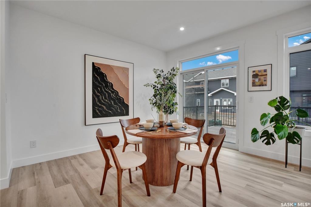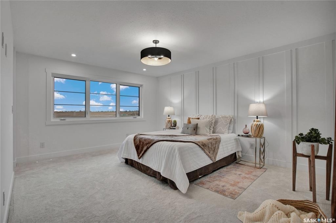 Welcome to 911 Traeger Manor, a home that seamlessly blends comfort, functionality, and attainable luxury. Crafted by Elevation Design + Build, this home exemplifies the builder's commitment to exceptional quality and refined design-while remaining within an accessible price range. From the moment you arrive, the home stands out with its curated lighting details, including toe-kick lighting, ambient LED accents, a backlit address sign, and an impressive array of recessed pot lights throughout. The open-concept living and dining area is designed with 9-foot ceilings, creating an airy, inviting space perfect for entertaining, relaxing with family, or enjoying your morning coffee in natural light from the oversized windows. The butler's pantry is truly a dream—featuring custom tile backsplash, elevated finishes, and ample storage that flows effortlessly from the garage to the kitchen for convenient grocery access. The main floor also includes a spacious flex room, a stylish half bath, and a thoughtfully designed mudroom offering both practicality and sophistication. Upstairs, you'll find three generous bedrooms and two elegant bathrooms, including a primary suite that feels like your own spa retreat—complete with a soaker tub, oversized glass shower, and a walk-in closet that's as functional as it is beautiful. Additional highlights include a composite deck, fully landscaped yard with front and back irrigation, a double concrete driveway, Ecobee Wi-Fi thermostat, and a separate side entrance for a future basement suite. This home is fully covered under Progressive New Home Warranty. Any applicable GST and PST rebates to be assigned to the builder. **Measurements taken from blueprints** buyers and their agents to verify.