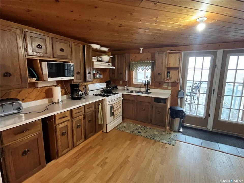This year round cabin has a great lake view of Buckhorn Bay in Fishing Lake from the deck, balcony or stamped patio. With no cabins in front of the lot you have a lakeview cabin and access to the lake just across the road. The cabin is a 1984 build with additions in 1992 bathroom and one bedroom, 2005 two bedrooms, and 2010 screen room (marked as sun room in room list). This pine walled home has a great cabin feel with a screened in room that you will spend most of your time in. The 28x13' screened room is not heated and therefore not included in the square footage. The cabin backs a bush/field and has a plug for RV's in the back. The yard is has no lawn to cut with the highlight the stamped patio with a firepit area and beautiful sidewalk to back. This property has a private well and septic tank. The cabin has a large eat in kitchen, 3 bedrooms, and laundry/3-piece bathroom on main and a living room area in the 2nd story of the original build. The living room has a nice balcony off overlooking the lake... perfect for that morning coffee or evening sociable. Fishing Lake offers excellent fishing, watersports, golf, snowmobiling, ice-fishing, skating, and more. North Shore has a recently upgraded (since 2020) recreational area with a new ball diamond, beach volleyball, picnic area with stage, pickleball court, and basketball court. Gas Stove currently not in working order and will not be fixed.