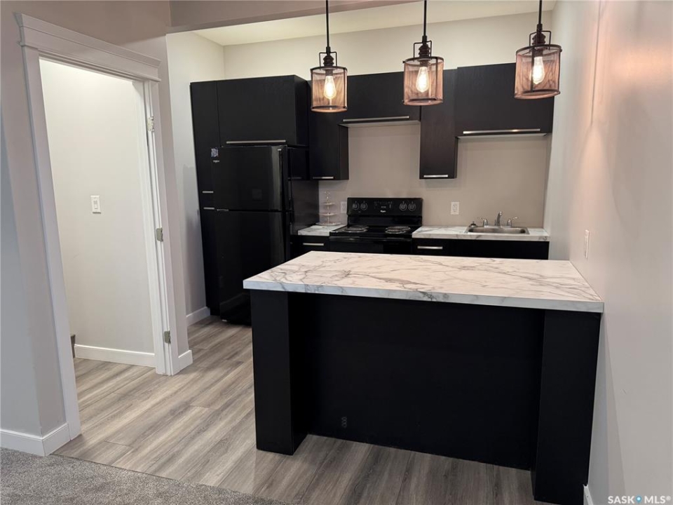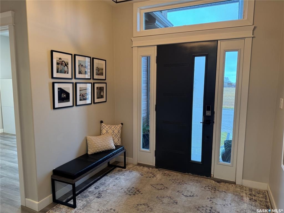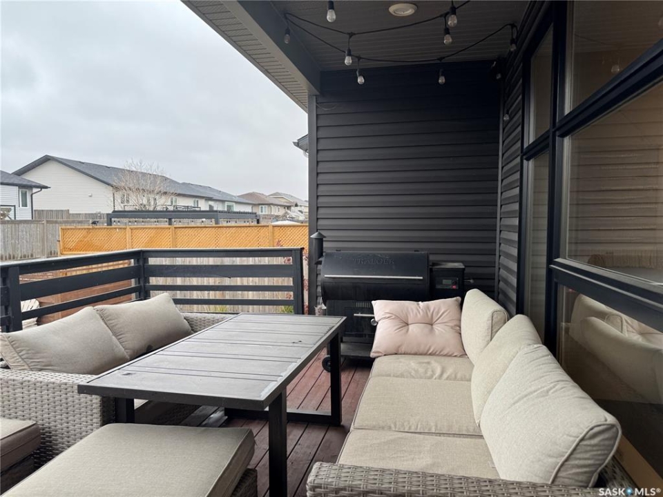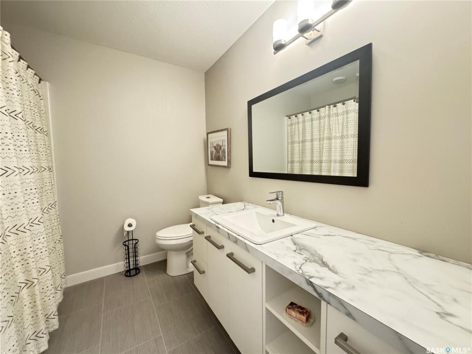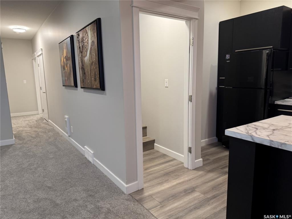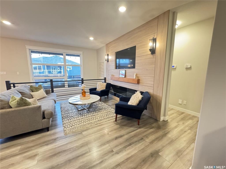 Welcome to this stunning modern-style 2 + 2 bedroom raised bungalow, ideally situated in Humboldt's sought-after North Division—just a short walk from the hospital and Humboldt's beautiful 18-hole golf course. Step inside to a bright, open-concept main floor featuring 9-ft ceilings and stylish laminate flooring throughout. The front bedroom offers flexible space—perfect as a home office or guest room. The spacious entertaining area includes a beautifully designed kitchen with a large island, wall pantry, and dining space that overlooks the backyard with access to a covered deck—ideal for relaxing or entertaining. The main floor also features convenient laundry and a welcoming layout designed for comfort and functionality. The primary bedroom is a true retreat, complete with a beautiful 4-piece ensuite and direct access to a walk-in closet. The fully finished basement mirrors the home's modern appeal with 9-ft ceilings, a cozy and spacious family room, and a well-equipped wet bar (or optional second kitchen for revenue potential). Two additional bedrooms, a 4-piece bath, utility room, and storage area complete the lower level, with direct access to the heated garage. Curb appeal shines with an oversized heated garage (30' x 24') featuring two 8' x 10' overhead doors, plus an additional 12' x 10' section with an 8' x 6' rear door opening to the backyard and a direct pathway to RV parking. The fully fenced yard is beautifully manicured with lush greenspace, flower gardens, and garden boxes. Additional features include central air, central vac, and garburator.?Buyer to verify all measurements.