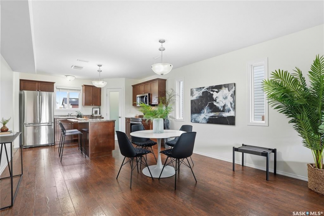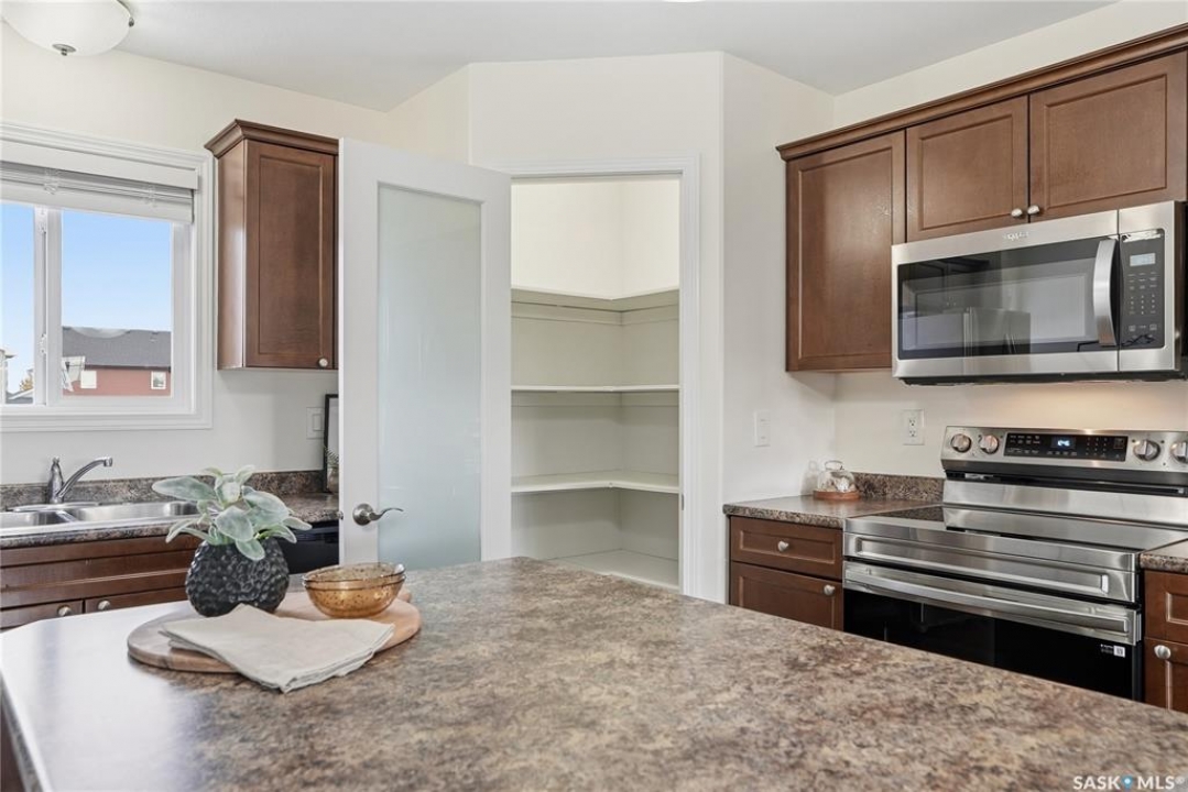 This beautifully maintained two-storey home offers an inviting blend of comfort, functionality, and charm. South-facing, it enjoys an abundance of natural light throughout the day. Ideally situated just one block from two elementary schools, the property features a welcoming front veranda overlooking the school fields—an ideal spot to enjoy your morning coffee while watching your children walk to school. The main floor showcases a bright, open-concept layout where the living room flows seamlessly into the dining area and spacious kitchen. The kitchen offers ample cabinetry, generous counter space, and a large pantry, making it perfect for family living and entertaining. A convenient half bath and utility room complete this level. Upstairs, the primary bedroom includes a four-piece ensuite and a walk-in closet. Two additional bedrooms, a second four-piece bathroom, and a laundry area provide excellent functionality for family needs. The basement features a spacious, legal one-bedroom suite with its own laundry, offering income potential or private accommodation for extended family. A good-sized two-car detached garage adds to the home's practicality. Located close to multiple parks, walking paths, and a variety of amenities, this property combines everyday convenience with a welcoming neighborhood atmosphere. Recent updates include a brand-new stove, microwave hood fan, and dishwasher within the past year, all-new carpeting on the second floor and stairs, and fresh paint throughout the main and upper levels.