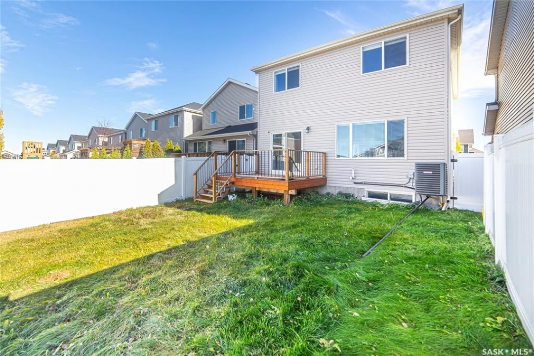 Welcome to your new home in the highly sought-after Stonebridge community! This beautifully maintained property offers exceptional style, comfort, and functionality from the moment you step inside. The spacious front foyer features a walk-in closet, convenient 2-piece powder room, and direct access to the double attached garage. The main floor boasts an open-concept layout with brand-new vinyl plank flooring throughout. The impressive chef's kitchen is equipped with stainless steel appliances, a stylish farmhouse sink, granite countertops, and ample cabinetry—perfect for everyday living and entertaining. Large windows fill the living room and dining area with natural light, with garden doors leading to the deck and fully fenced, landscaped backyard. Upstairs, you'll find three spacious bedrooms plus a versatile bonus room—ideal for a home office or additional lounge space. The luxury primary suite includes a generous walk-in closet and a spa-inspired 5-piece ensuite complete with a barn door, separate soaker tub, walk-in shower, and dual sinks. A full bathroom and a conveniently located laundry closet complete the second level. The undeveloped basement provides endless opportunities—add a bedroom, bathroom, gym, or recreation room to suit your lifestyle. Perfectly located in one of Saskatoon's most popular communities, this home offers excellent value, location, and move-in-ready comfort. Don't miss your chance to own a beautiful Stonebridge property!