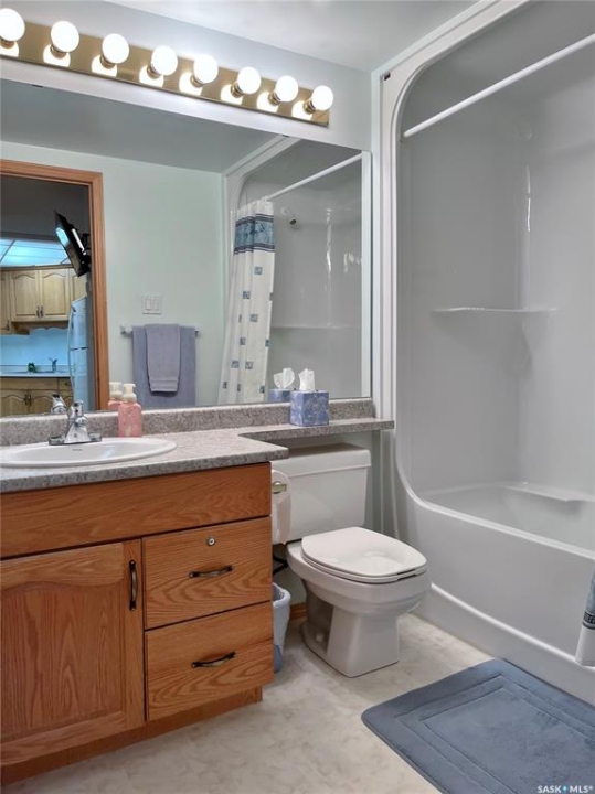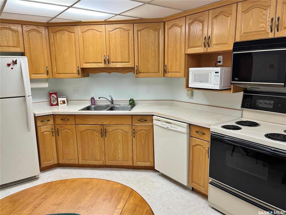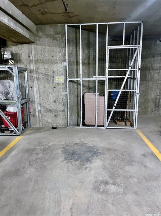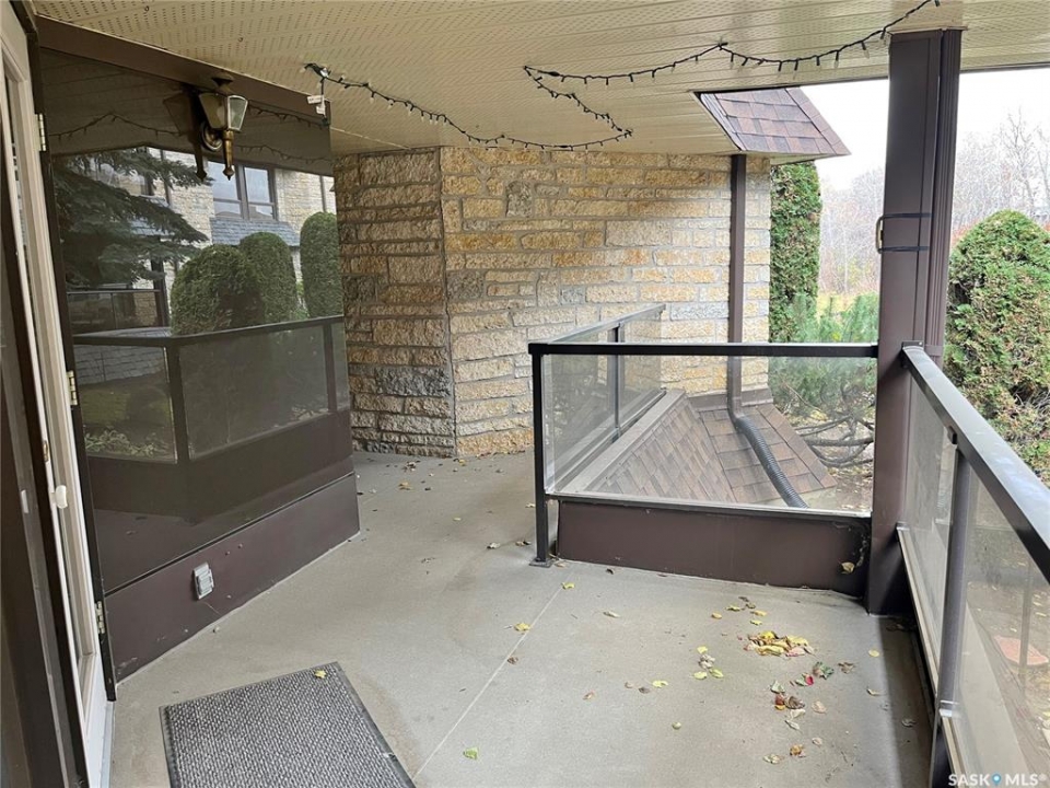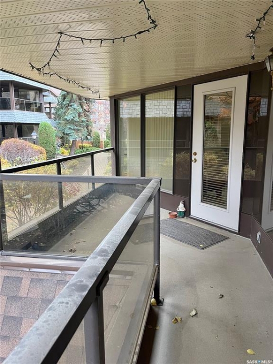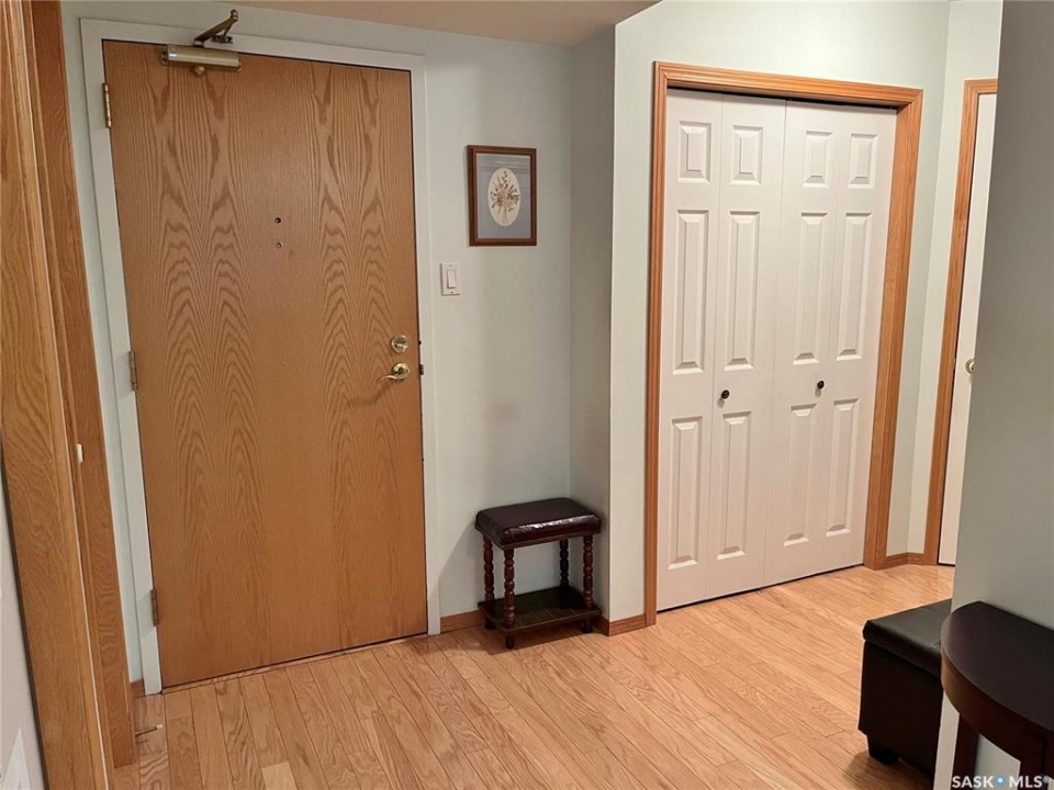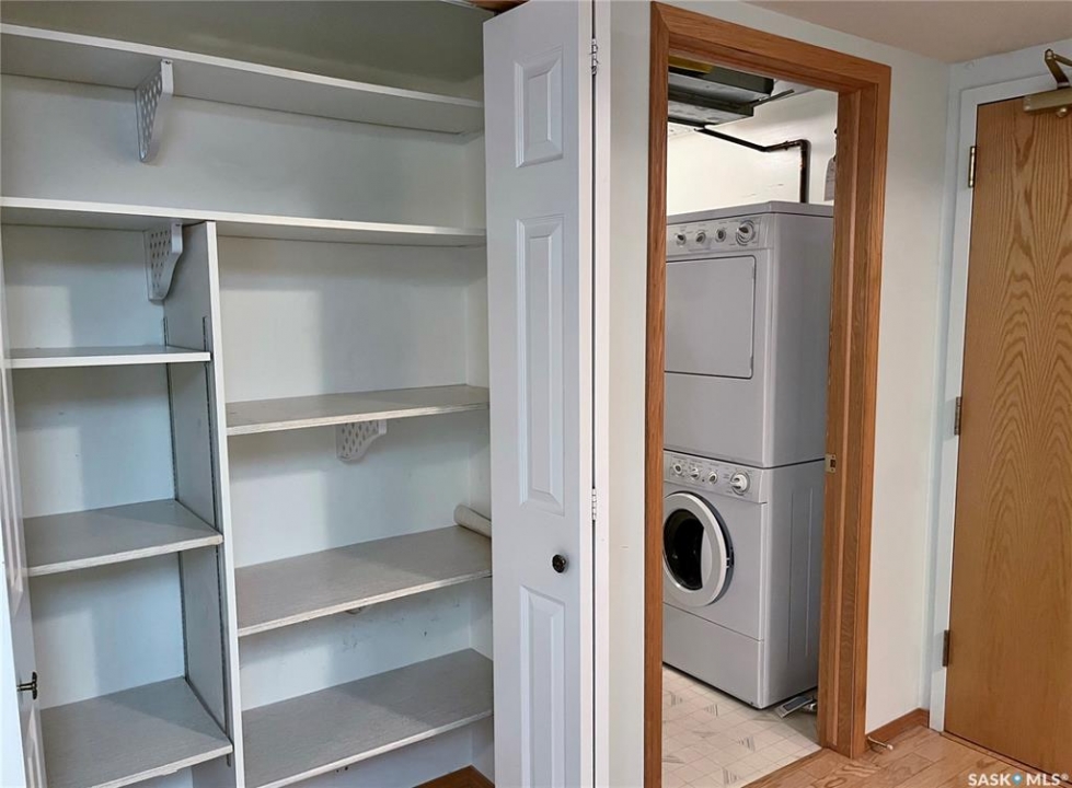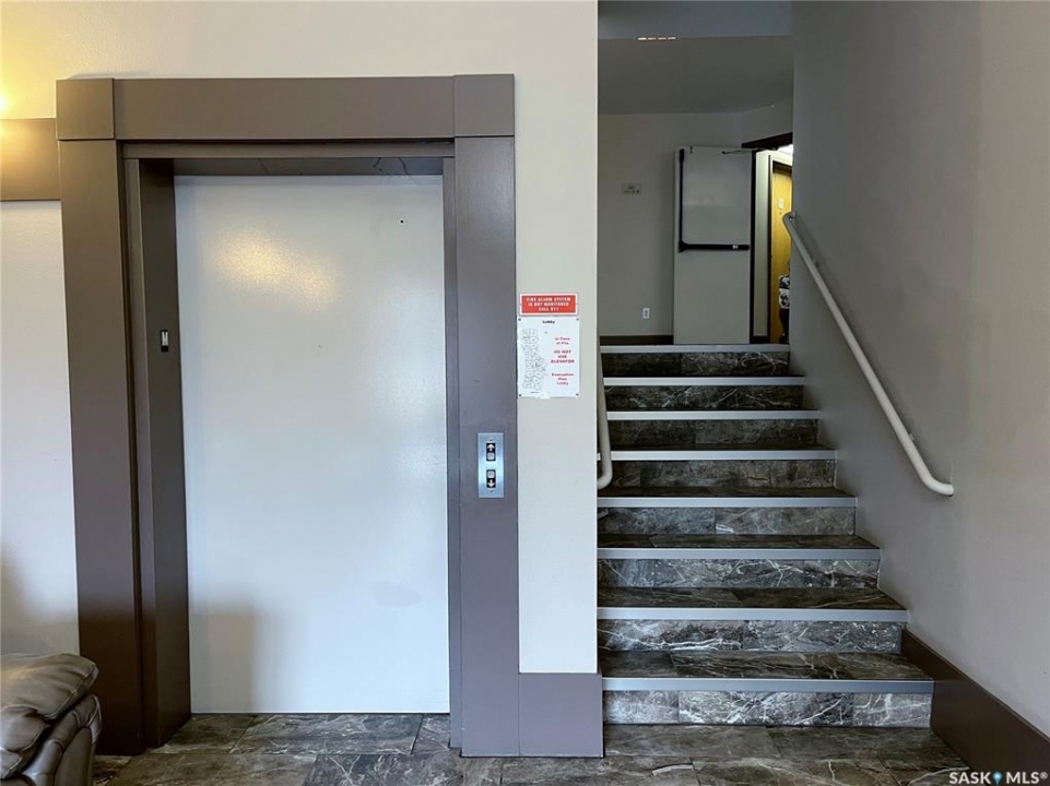 Enjoy the convenient location of Chalet Gardens with Market Mall across the street, and all the amenities if has to offer. This well cared for condo features 1,250 sq ft of living space, two bedrooms, two bathrooms and a large living room/dining room area. The spacious primary bedroom features a large walk-in closet and large shower with seat in tub. The kitchen includes all appliances and has room for table and chairs. Enjoy in-suite laundry, central air conditioning, and new intercom system monitoring front door. The large east facing balcony includes extra storage space with shelving. The building includes underground parking, stall #56, with storage space and a wash bay for your vehicle. Also included is a large amenities room, elevator, woodworking shop and RV parking. The manicured grounds feature an abundance of mature trees and shrubs making this a beautiful place to call home.