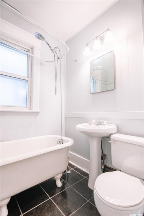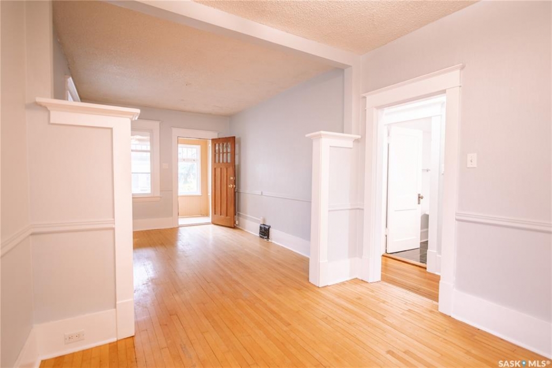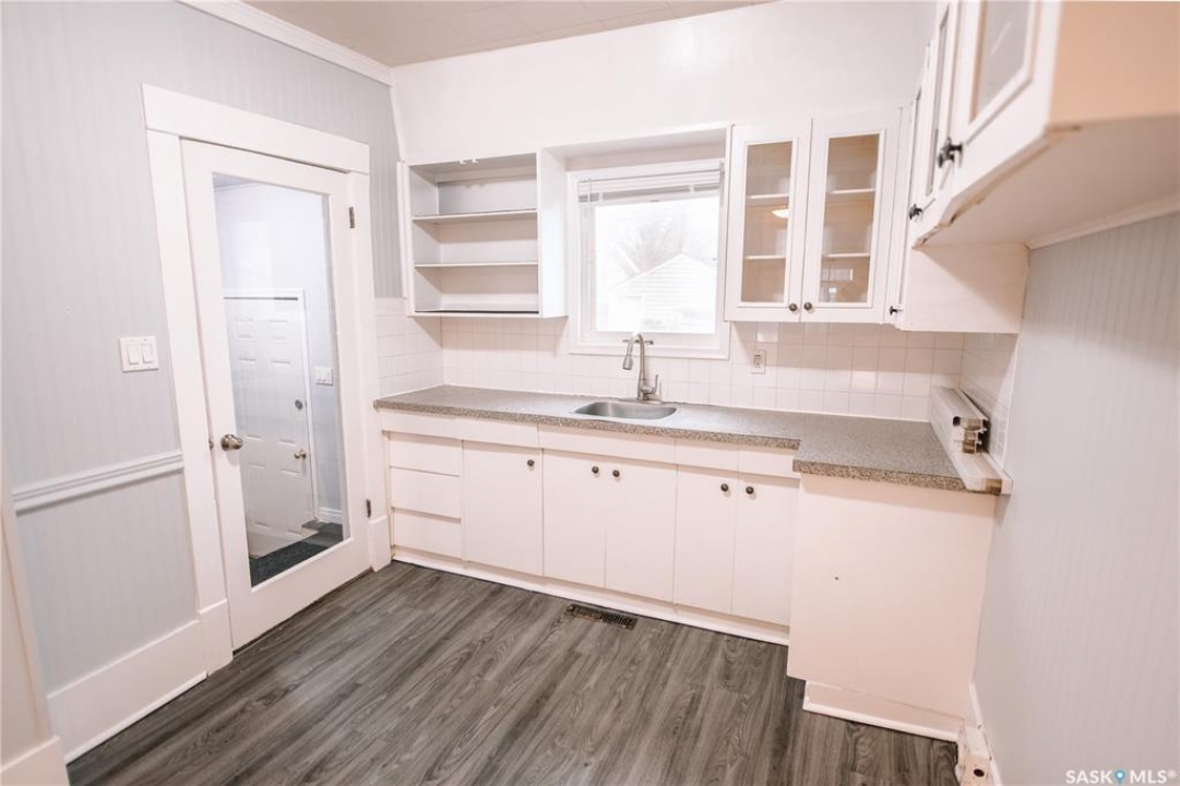 Nestled in the heart of Regina's sought-after Cathedral neighbourhood, this charming two-bedroom bungalow is full of warmth, character, and move-in-ready comfort. Step through the inviting front porch — a bright, sunny 3-season space that's perfect for morning coffee or relaxing with a book. Inside, you'll find beautifully maintained original hardwood floors throughout the main living areas and bedrooms, adding timeless appeal. Large windows fill the home with natural light, creating a bright and welcoming atmosphere from morning to evening. The open-concept main area is ideal for everyday living and entertaining. The living room sits at the front of the home, with enough space for the whole family, while a partial wall subtly defines the dining area, giving both spaces their own identity. The kitchen blends character and function with white cabinetry, open shelving, and a deep stainless steel sink perfectly placed under the window overlooking the backyard. Dark laminate counters and a crisp white backsplash complete the modern, clean look. Down the hall are two comfortable bedrooms and a full 4-piece bathroom featuring a vintage-style clawfoot tub and pedestal sink — a nod to the home's classic roots. The lower level is neat, dry, and offers plenty of storage and laundry space. Step out back to find a cozy yard with a small patio for BBQs, a grassy area for kids or pets, and a single detached garage with an additional parking space. You'll love the location — walking distance to downtown, Wascana Park, and the Cathedral Village shops, restaurants, and cafes. The neighborhood's vibrant energy shines during the annual Cathedral Village Arts Festival, celebrating local food, art, and music. Schools and post-secondary campuses, including the University of Regina and Saskatchewan Polytechnic, are also nearby. This delightful Cathedral home combines charm, convenience, and community — a true gem you won't want to miss.