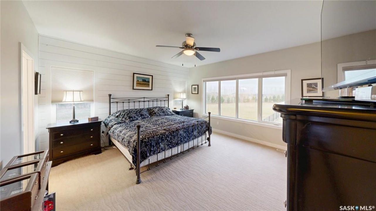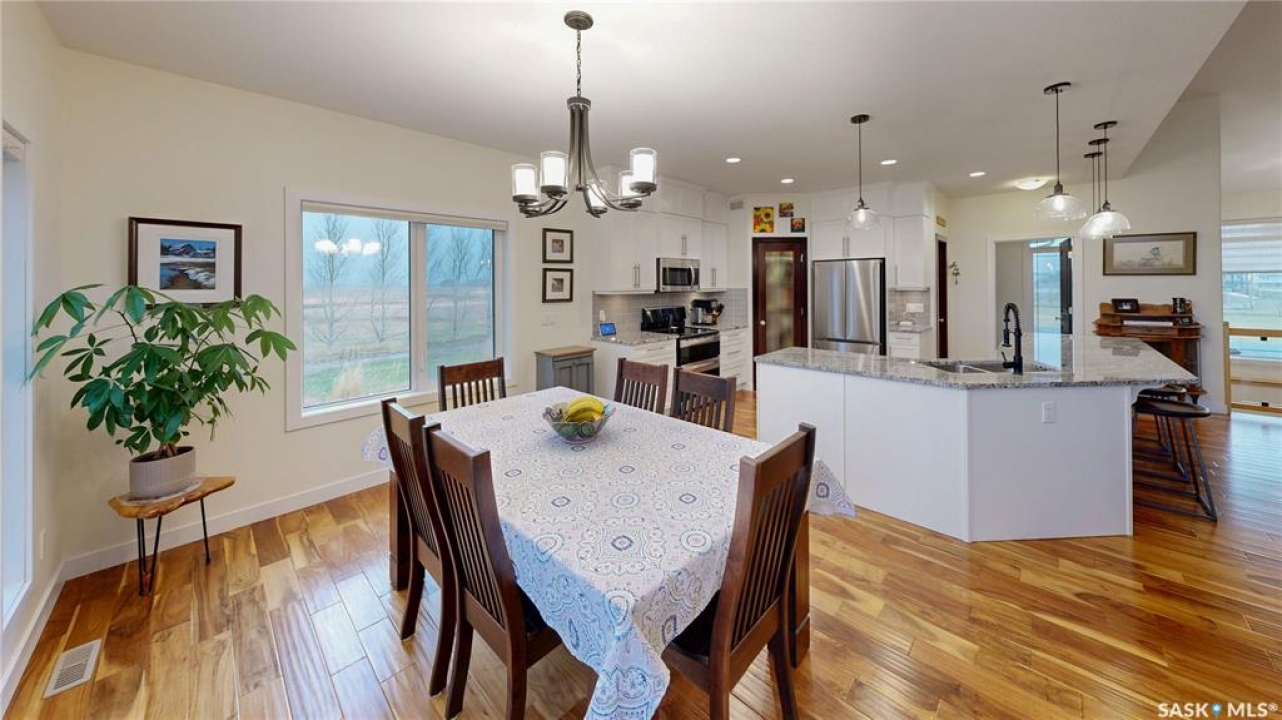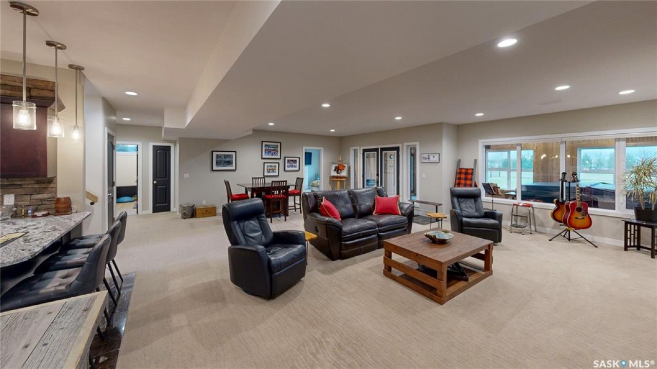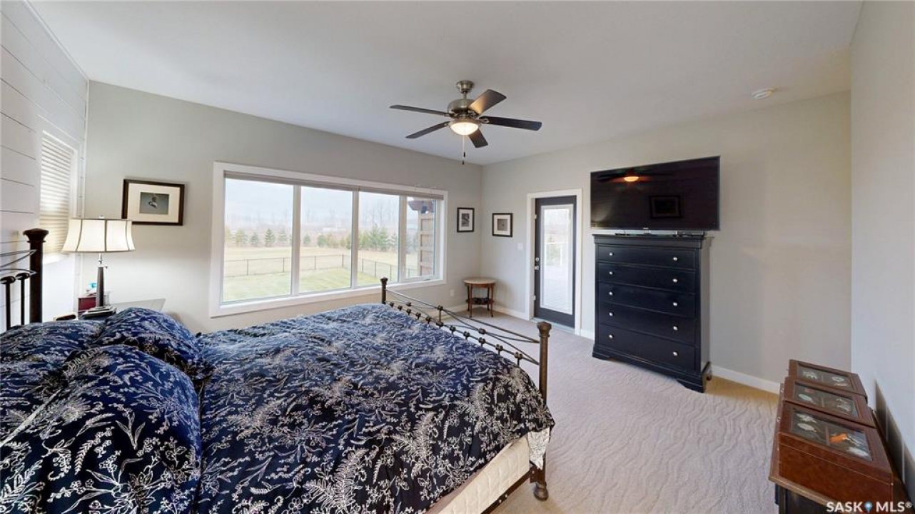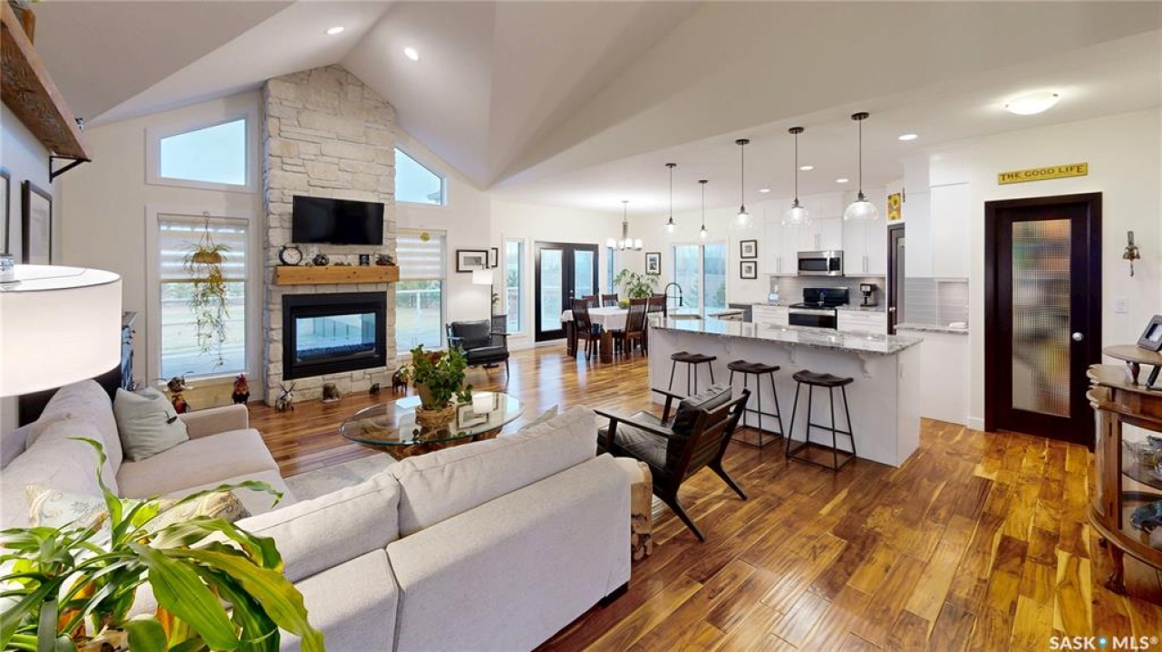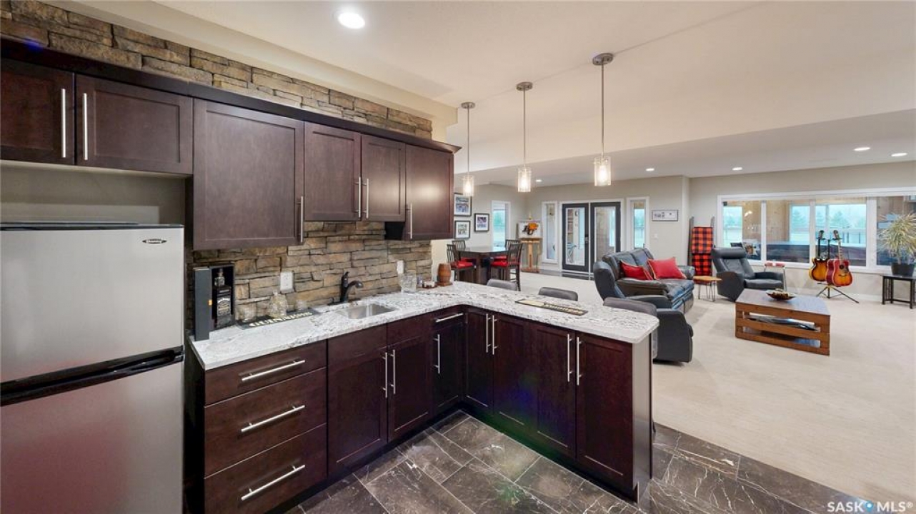 Welcome to 131 Rock Pointe Place in the Rock Pointe Estate community. This 2013 built, 1720 square foot, 4 bedroom 3 bathroom, walkout bungalow sits on a 4.86 acre lot. The huge three tiered garden beds are great for growing fresh produce and the stone patio below it makes another great place to gather. The large deck off the main level has ample room for outdoor furniture and opens up your hosting space beyond the dining room! You are also permitted to have 2 “livestock units” on the property excluding cows. There are two sheds on the property. One that is 17 x 20 with two roll up doors and another smaller one with power. The 30 x 40 heated and insulated shop is the ultimate handyman's dream. The living room has a 12' vaulted ceiling, engineered hardwood flooring that flows into the dining room and kitchen and a stone surround gas fireplace that is double sided and shared with the deck The kitchen has a huge walk through pantry, granite countertops, an island with bar seating and the stainless steel fridge, stove, dishwasher, microwave hood fan and stove are all included! The laundry room is next and leads through to the additional mudroom! The 36 x 40 triple attached, heated and insulated garage has extra storage shelves and a fridge. The first bedroom makes a great office and the main 4 piece bathroom follows. The primary suite a patio door to the deck and a 5 piece ensuite bathroom with dual sinks, a corner jet tub, a custom glass shower with tile surround and a walk in closet! The first stop downstairs is the wet bar! The rec room has built-in shelving, an electric fireplace with stone surround and LED pot lights The doors lead out to the enclosed hot tub room with a built in stereo system Next are two bedrooms and a 4 piece bathroom! Last is a den and the utility room that houses the high efficiency furnace, gas water heater on demand, HRV, and an stand up freezer! See the video for much more info!