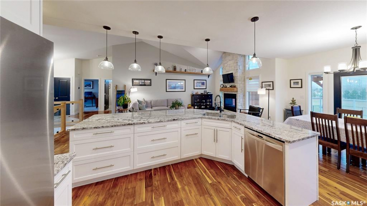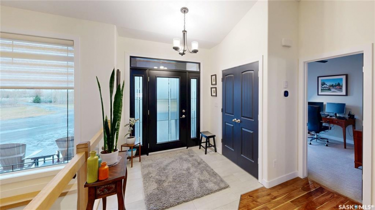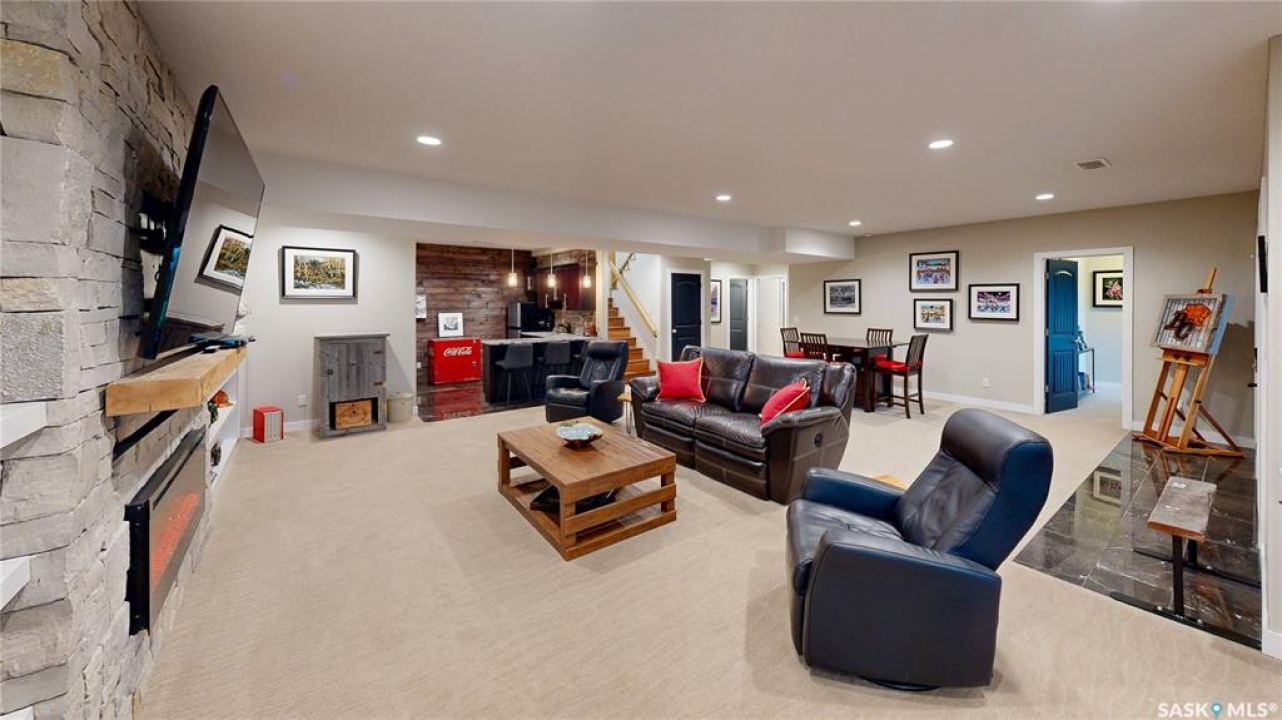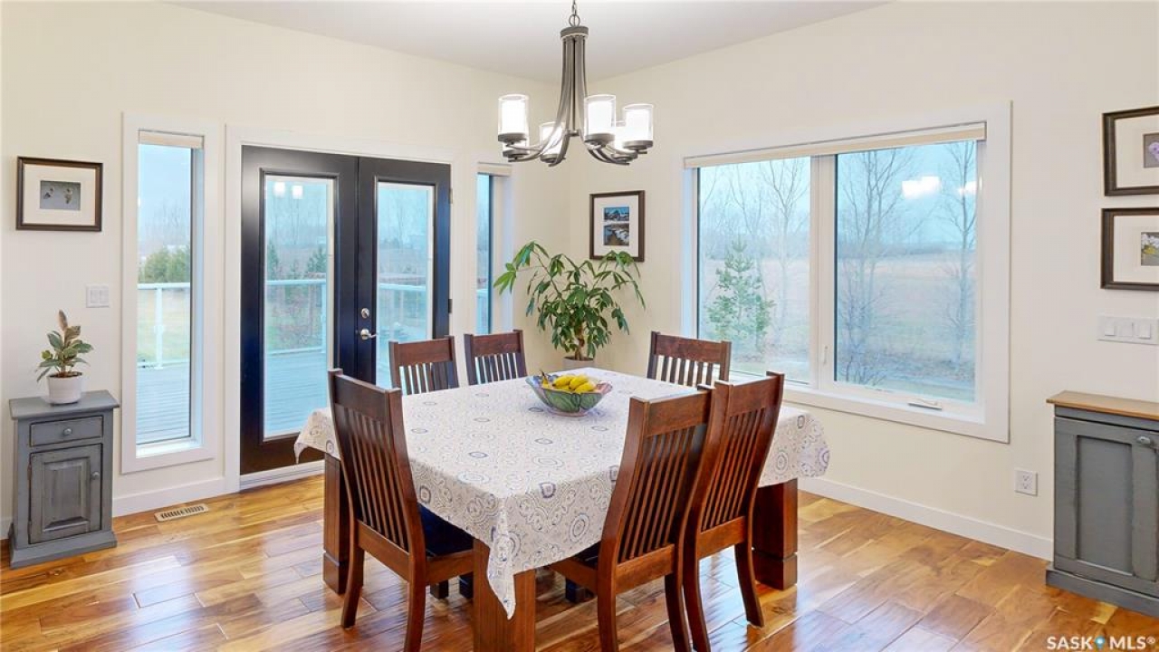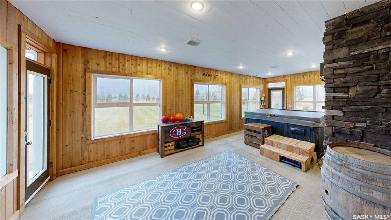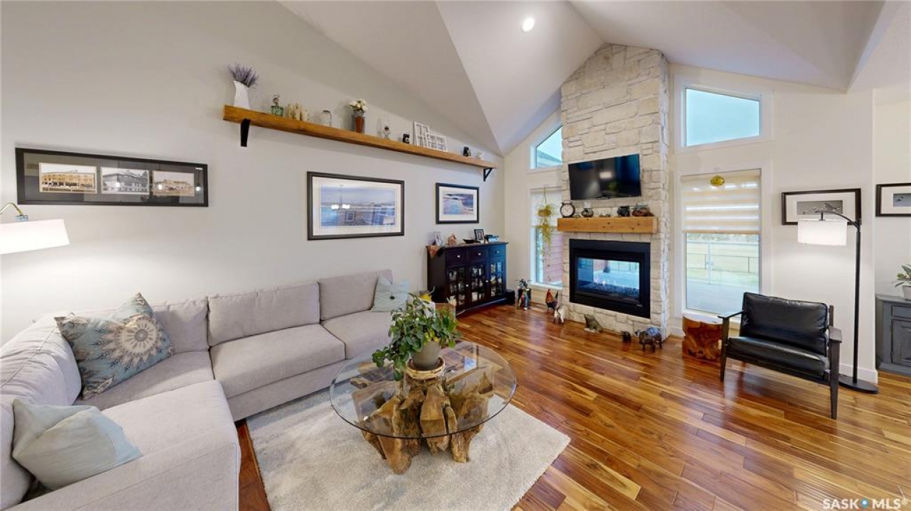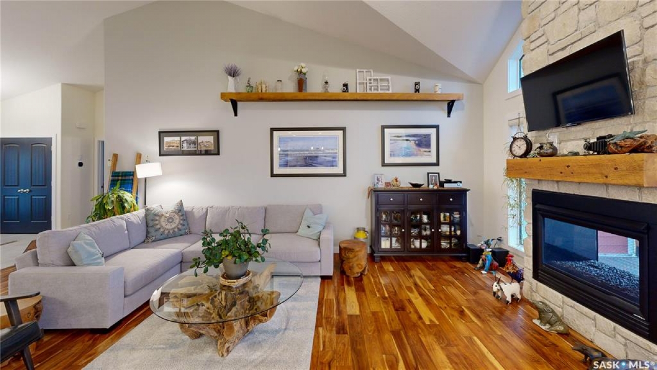 Welcome to 131 Rock Pointe Place in the Rock Pointe Estate community. This 2013 built, 1720 square foot, 4 bedroom 3 bathroom, walkout bungalow sits on a 4.86 acre lot. The huge three tiered garden beds are great for growing fresh produce and the stone patio below it makes another great place to gather. The large deck off the main level has ample room for outdoor furniture and opens up your hosting space beyond the dining room! You are also permitted to have 2 “livestock units” on the property excluding cows. There are two sheds on the property. One that is 17 x 20 with two roll up doors and another smaller one with power. The 30 x 40 heated and insulated shop is the ultimate handyman's dream. The living room has a 12' vaulted ceiling, engineered hardwood flooring that flows into the dining room and kitchen and a stone surround gas fireplace that is double sided and shared with the deck The kitchen has a huge walk through pantry, granite countertops, an island with bar seating and the stainless steel fridge, stove, dishwasher, microwave hood fan and stove are all included! The laundry room is next and leads through to the additional mudroom! The 36 x 40 triple attached, heated and insulated garage has extra storage shelves and a fridge. The first bedroom makes a great office and the main 4 piece bathroom follows. The primary suite a patio door to the deck and a 5 piece ensuite bathroom with dual sinks, a corner jet tub, a custom glass shower with tile surround and a walk in closet! The first stop downstairs is the wet bar! The rec room has built-in shelving, an electric fireplace with stone surround and LED pot lights The doors lead out to the enclosed hot tub room with a built in stereo system Next are two bedrooms and a 4 piece bathroom! Last is a den and the utility room that houses the high efficiency furnace, gas water heater on demand, HRV, and an stand up freezer! See the video for much more info!