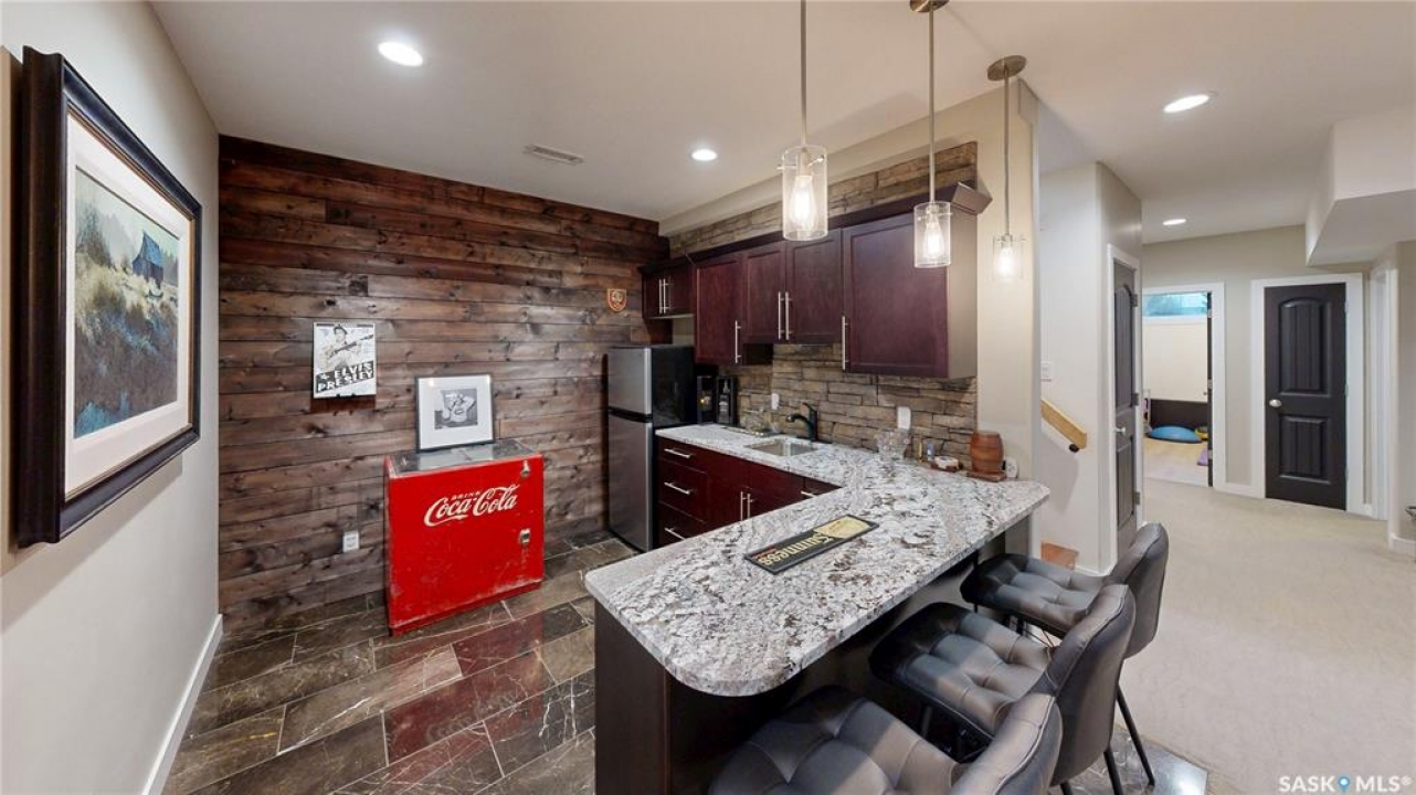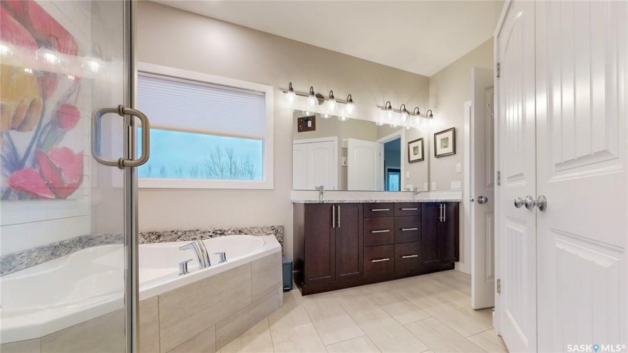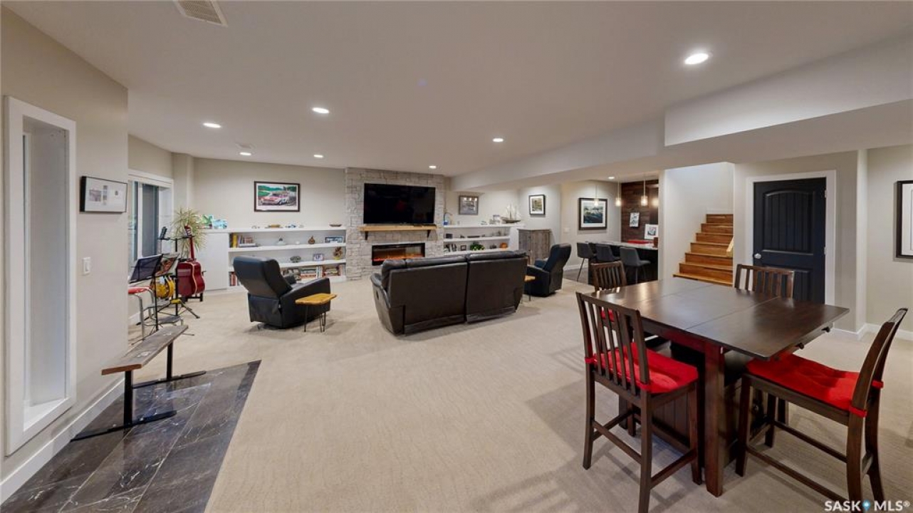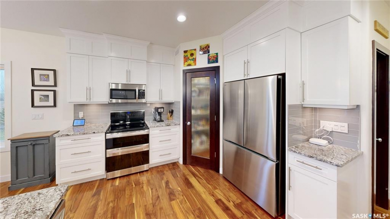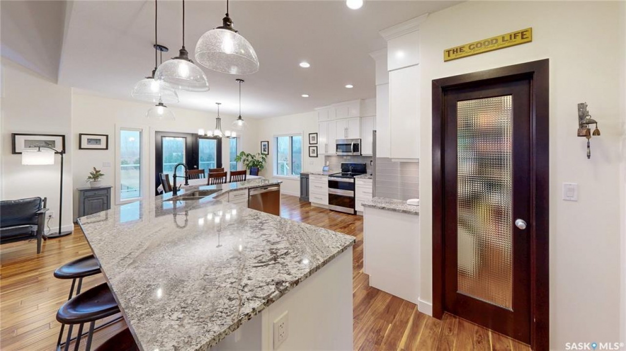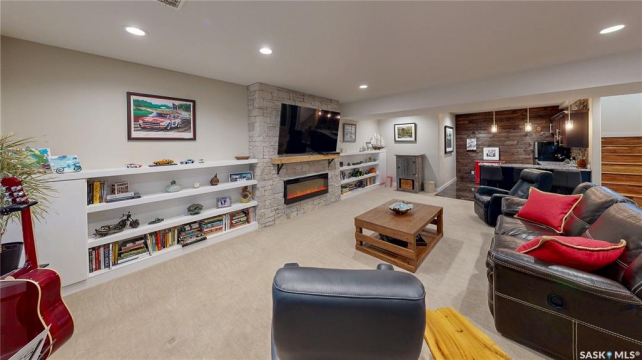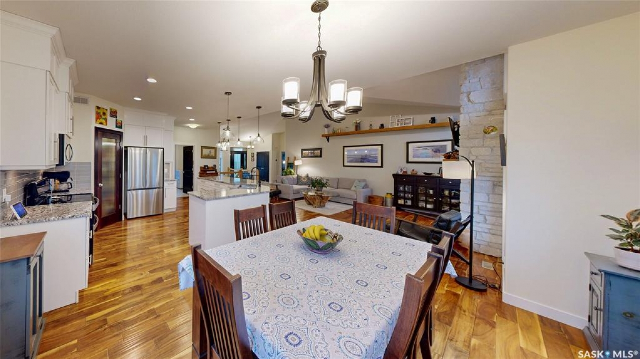 Welcome to 131 Rock Pointe Place in the Rock Pointe Estate community. This 2013 built, 1720 square foot, 4 bedroom 3 bathroom, walkout bungalow sits on a 4.86 acre lot. The huge three tiered garden beds are great for growing fresh produce and the stone patio below it makes another great place to gather. The large deck off the main level has ample room for outdoor furniture and opens up your hosting space beyond the dining room! You are also permitted to have 2 “livestock units” on the property excluding cows. There are two sheds on the property. One that is 17 x 20 with two roll up doors and another smaller one with power. The 30 x 40 heated and insulated shop is the ultimate handyman's dream. The living room has a 12' vaulted ceiling, engineered hardwood flooring that flows into the dining room and kitchen and a stone surround gas fireplace that is double sided and shared with the deck The kitchen has a huge walk through pantry, granite countertops, an island with bar seating and the stainless steel fridge, stove, dishwasher, microwave hood fan and stove are all included! The laundry room is next and leads through to the additional mudroom! The 36 x 40 triple attached, heated and insulated garage has extra storage shelves and a fridge. The first bedroom makes a great office and the main 4 piece bathroom follows. The primary suite a patio door to the deck and a 5 piece ensuite bathroom with dual sinks, a corner jet tub, a custom glass shower with tile surround and a walk in closet! The first stop downstairs is the wet bar! The rec room has built-in shelving, an electric fireplace with stone surround and LED pot lights The doors lead out to the enclosed hot tub room with a built in stereo system Next are two bedrooms and a 4 piece bathroom! Last is a den and the utility room that houses the high efficiency furnace, gas water heater on demand, HRV, and an stand up freezer! See the video for much more info!