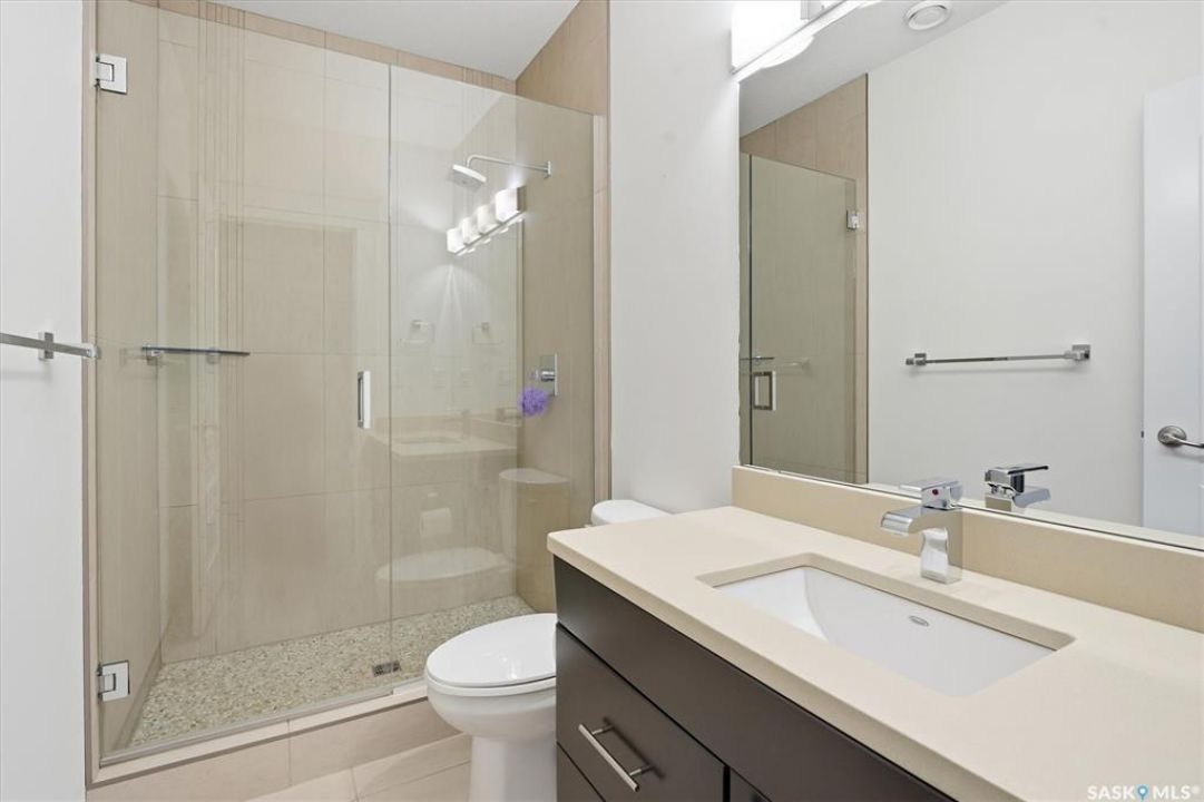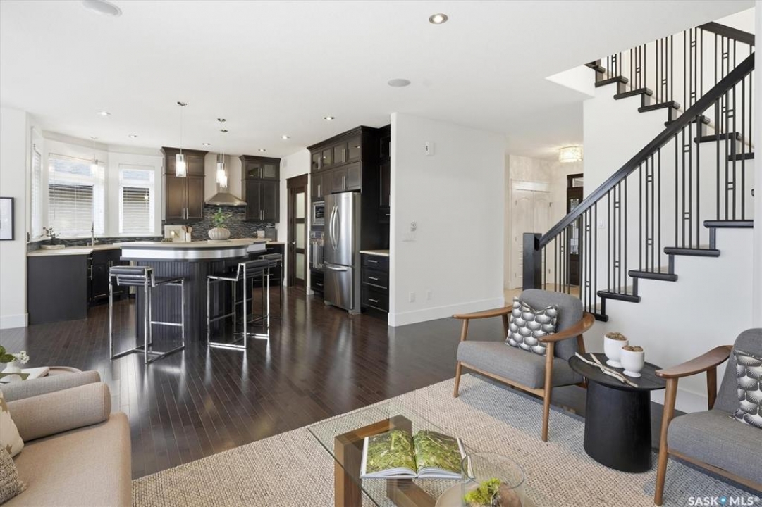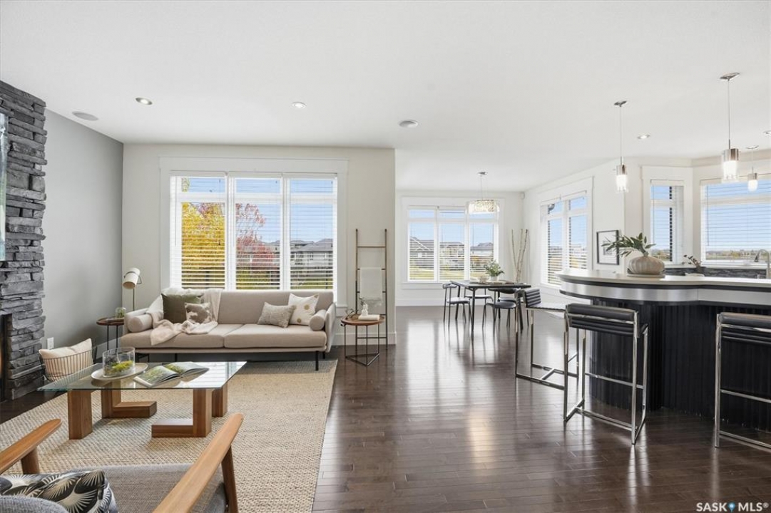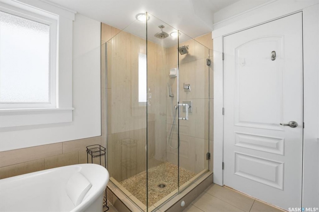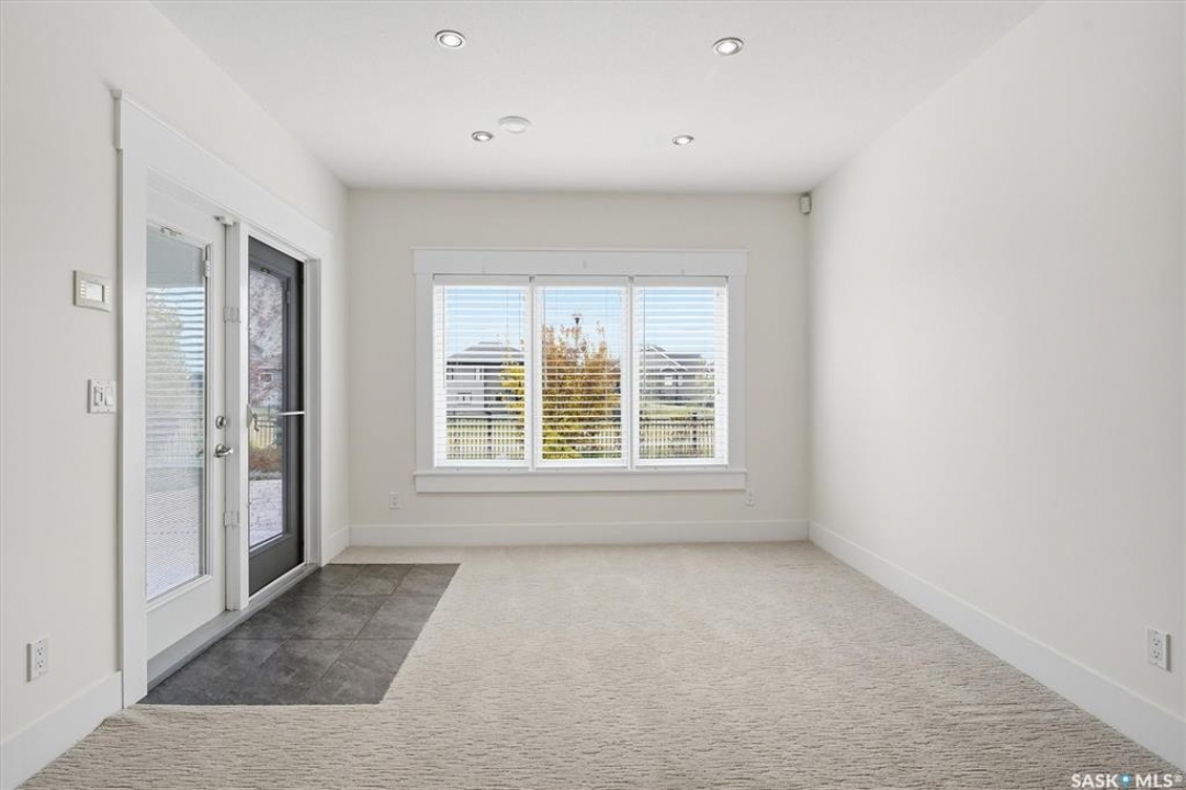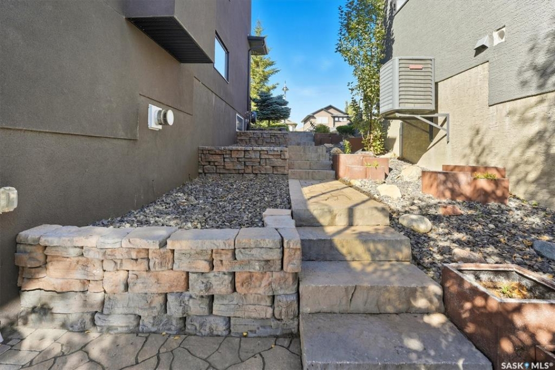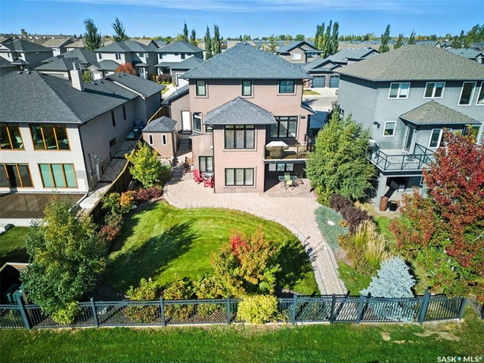 Stunning former lottery home in Stonebridge, backing onto a beautiful park and green space! This 2,114 sq ft two-storey offers a walkout basement with radiant in-floor heat, wet bar, fitness room, large windows, and a cozy gas fireplace overlooking the park. The main floor features a spacious office, an open-concept living, dining, and kitchen area with an angled island, maple cabinets, gas cooktop, and a park and lake view. Upstairs boasts 3 bedrooms including a luxurious primary suite with double sinks, stand-alone shower, and Jacuzzi tub. Enjoy two gas fireplaces (main & basement), triple-pane windows, under-cabinet lighting, heated garage, and professionally landscaped yard. In-slab patio lighting plus heated underground downspout drainage—great for spring melt. Exceptional craftsmanship built by D&S Homes and move-in ready — a truly one-of-a-kind park-backing home!
