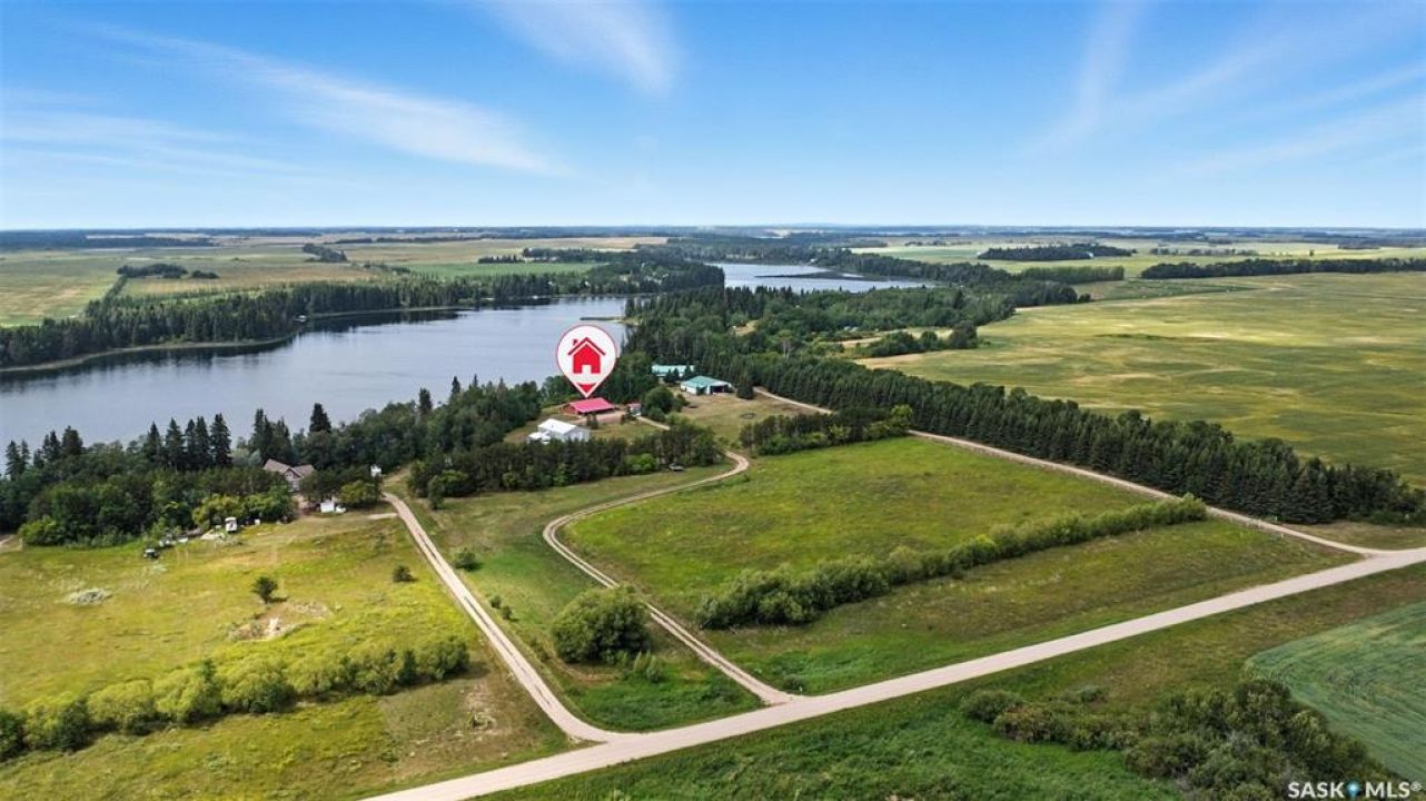 Welcome to this one and kind waterfront private acreage located at Fish Lake, SK offers a serene and picturesque setting. The property spans across 4.99 acres The house was built in 2016 and boast over 1800 sq ft with three spacious bedrooms. The open concept kitchen has plenty of cupboard and counter space with island. Master bedroom has 5pc bathroom! House is equipped with in floor radiant heat and wood burning stove for supplement heat. Head on out the living room door to back deck overlooking the lake. The property numerous outbuilding for storage and wood cutting station. The house is equipped with a well and a septic tank. The property has large heated shop measuring 33 X 38 and heated attached garage. There is no public reserve on the lake front and the well is under ground spring fed.
