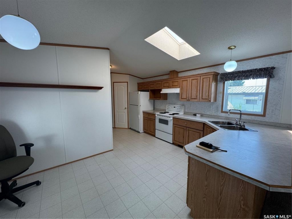 Move in ready, at an amazing price! This 2003 single wide mobile home will make you feel at ease from the moment you walk into it's 1216 sqft! With a large and spacious master suite with everything that you could desire, including walk-in closet and en-suite with jet tub. The kitchen has plenty of work space and a large panty easy at hand. This property also has a beautiful single garage and a good size fenced in yard, ready for pets or children! The location on Christie Street is fantastic for families, steps from the Jim Cook Rec Plex and the stunning Van Ray Outdoor Pool, your family has easy access to fun all year round, not too mention a daycare and two schools within walking distence! Call your agent today to check out this turn key property!
