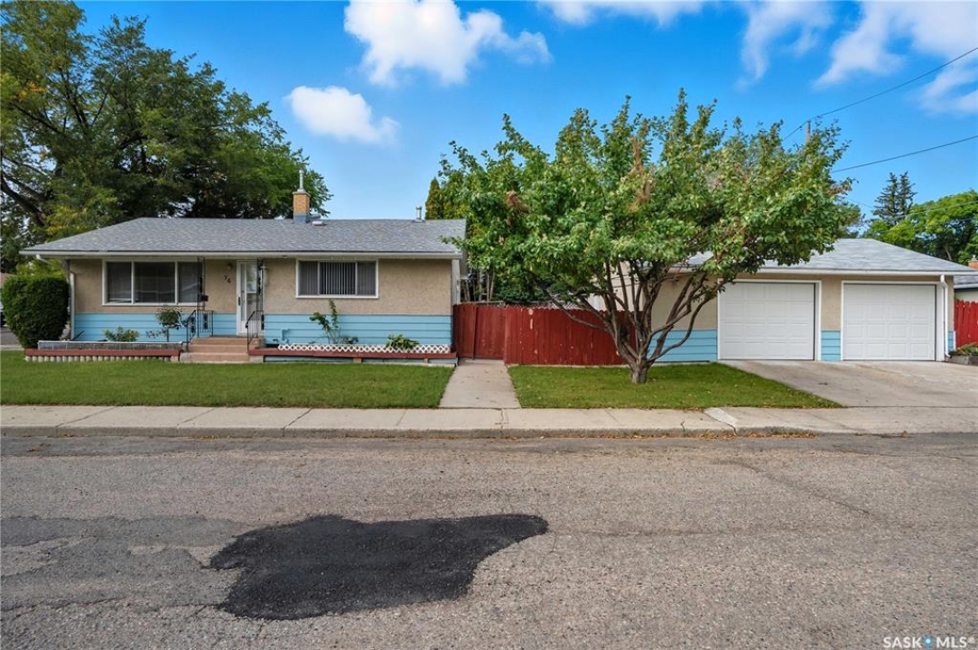 Welcome to 56 Franklin Street, an excellent opportunity to own a charming bungalow located in the mature, family-friendly neighbourhood of Coronation Park, Regina. This well-maintained home offers the classic comfort and convenience of a bungalow, making it perfect for first-time buyers, families, or those looking to downsize. The home features three comfortable bedrooms on the main floor, plus a versatile extra bedroom or den in the basement—ideal for guests, a home office, or a workout space. Enjoy the extra space, privacy, and curb appeal that comes with a fantastic corner lot location. A major highlight is the oversized detached garage—a mechanic's dream or perfect for extra storage—offering plenty of room for vehicles, tools, and hobbies, a true asset in this area! Located in a quiet, established neighbourhood, you'll have easy access to local schools, parks, and essential amenities. This property is a fantastic blend of space, location, and practicality. Don't miss your chance to secure a great home with that sought-after oversized garage! Contact your favourite Realtor � today to book a viewing!