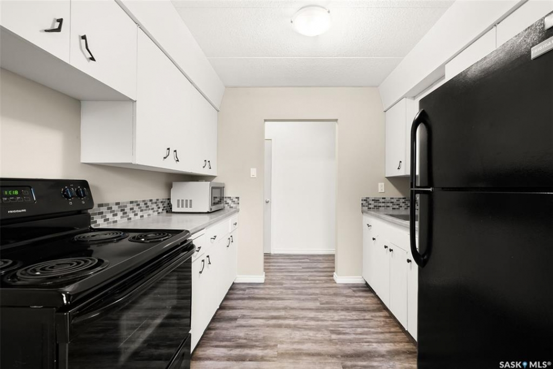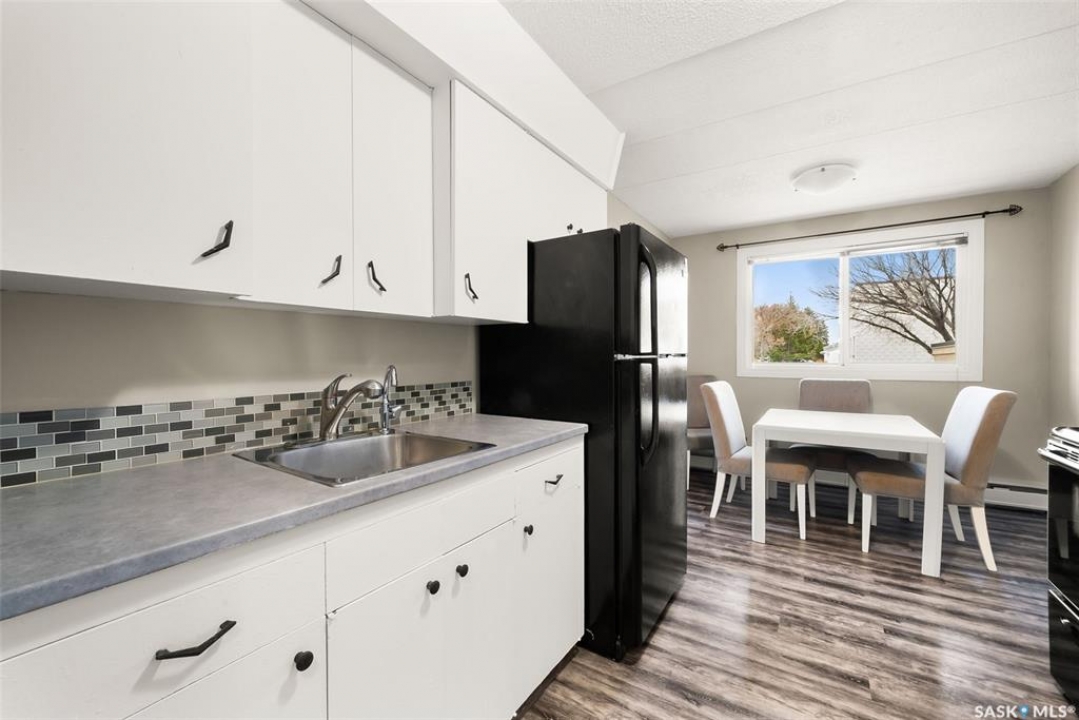 Welcome to Willowdale Heights, a well-maintained condo complex conveniently located just off North Albert, close to shopping, restaurants, and bus routes. This spacious 2-bedroom, 1-bathroom unit offers 913 sq. ft. of comfortable living space with new flooring and fresh paint throughout. The bright, open-concept living space features large windows that fill the space with natural light, a galley style kitchen with dining area and ample cabinetry. Both bedrooms are generously sized with excellent closet space. You'll also appreciate the convenience of a dedicated storage room and one electrified parking stall located just next to the door. Condo fees include heat, water, sewer, building insurance, common area maintenance, snow removal, lawn care, garbage, and reserve fund contributions, making for truly affordable, low-maintenance living. Perfect for first-time buyers, downsizers, or investors — this move-in-ready home offers great value in a fantastic location.