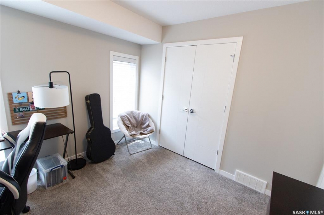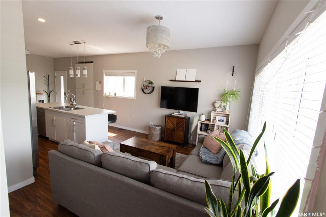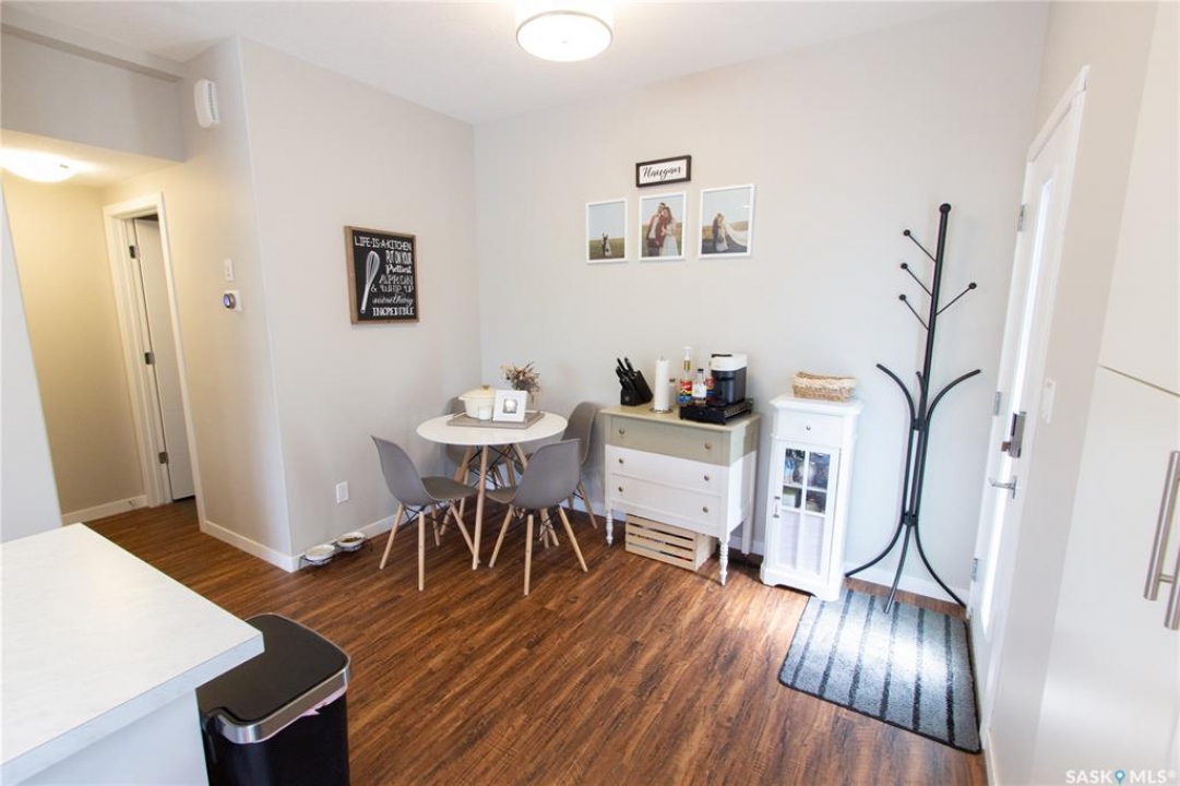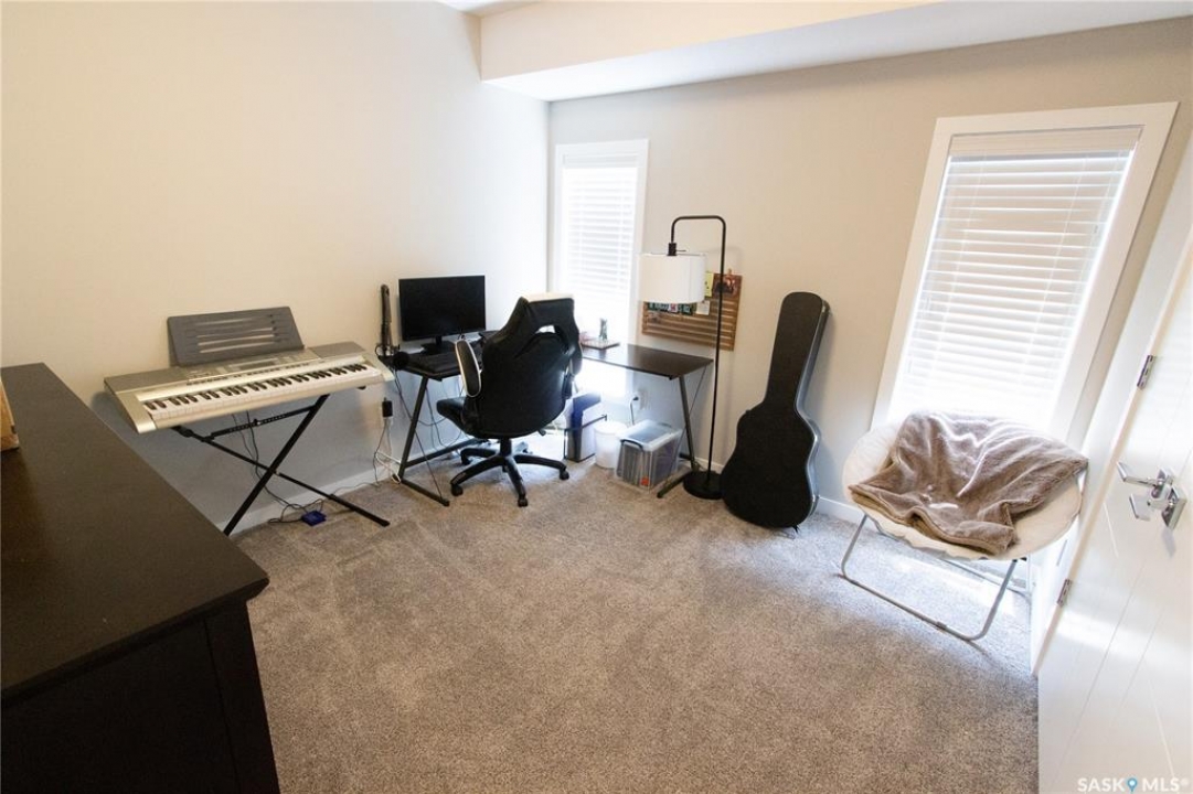 Welcome to 3913 James Hill Rd. This beautiful 2 bedroom 3.5 bath Condo is situated nicely at the edge of Regina's Harbour Landing neighbourhood with easy access to shopping, schools, and all other amenities you could imagine. Inside you are greeted by the open concept main floor; complete with a living room, spacious kitchen that includes a large island and ample storage, and finished off with a nice dining space and 2 piece bath. Upstairs you'll find a large bedroom serviced by a 4 piece bath and next to that the second floor laundry. Heading down the hall you will find the luxurious master bedroom, complete with your own private balcony and a large walk-through closet space that leads you into your private 4 piece ensuite. Downstairs in the basement you will find a large open living space complete with a kitchenette and 4 piece bathroom. Perfect for a studio style suite/bedroom or just a great space to hang out and enjoy time with friends and family. 1 stall in a shared garage is included with this unit along with lawn care and snow removal making this a relaxing, worry free place to call home. Book your private viewing today!
