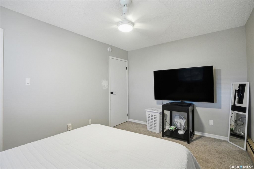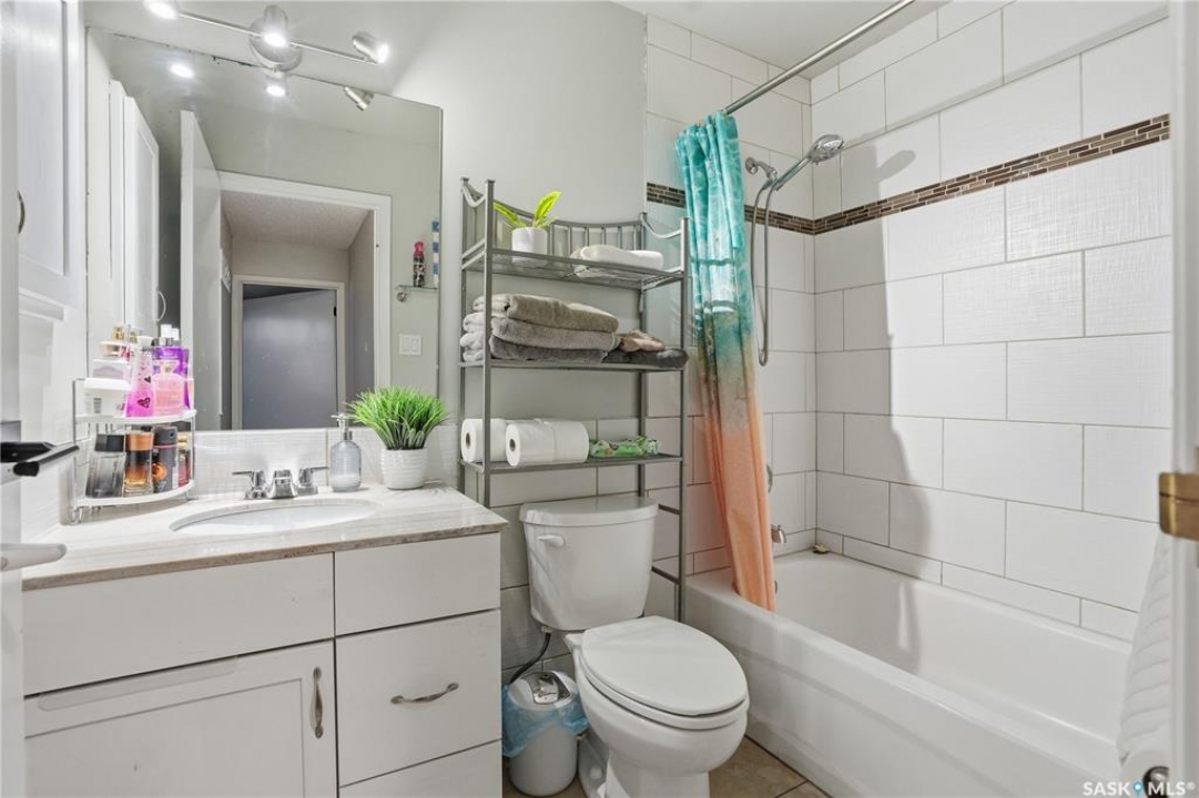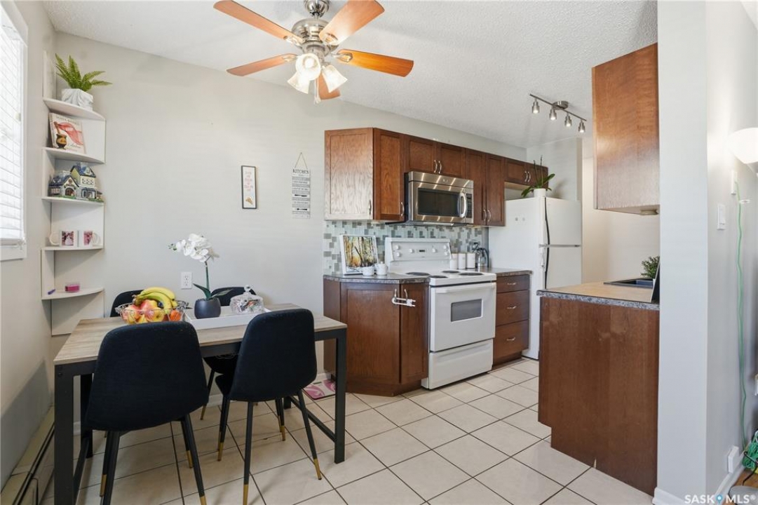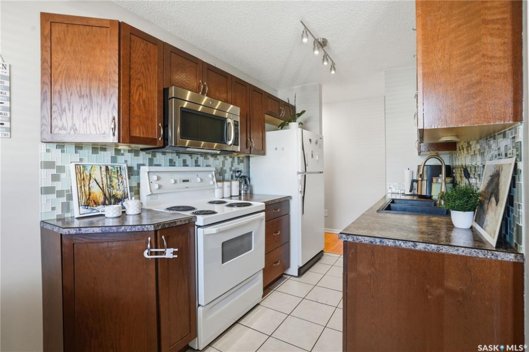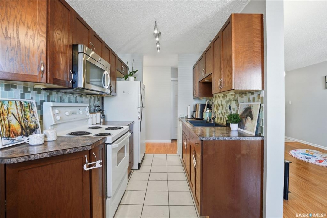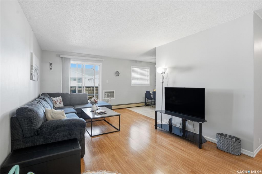 Location, location! This beautiful top floor unit is situated in a quiet and well managed building. This two bedroom unit has had many upgrades which include: kitchen, carpets, closet, doors, a dishwasher, a washer. This unit features a large living room, dining room, upgraded kitchen, two good size bedrooms, storage room, and the four piece bathroom. The balcony has a storage unit. Very affordable condo fees, for the size and the location. One surface parking stall included .Just move in and enjoy this mint unit.