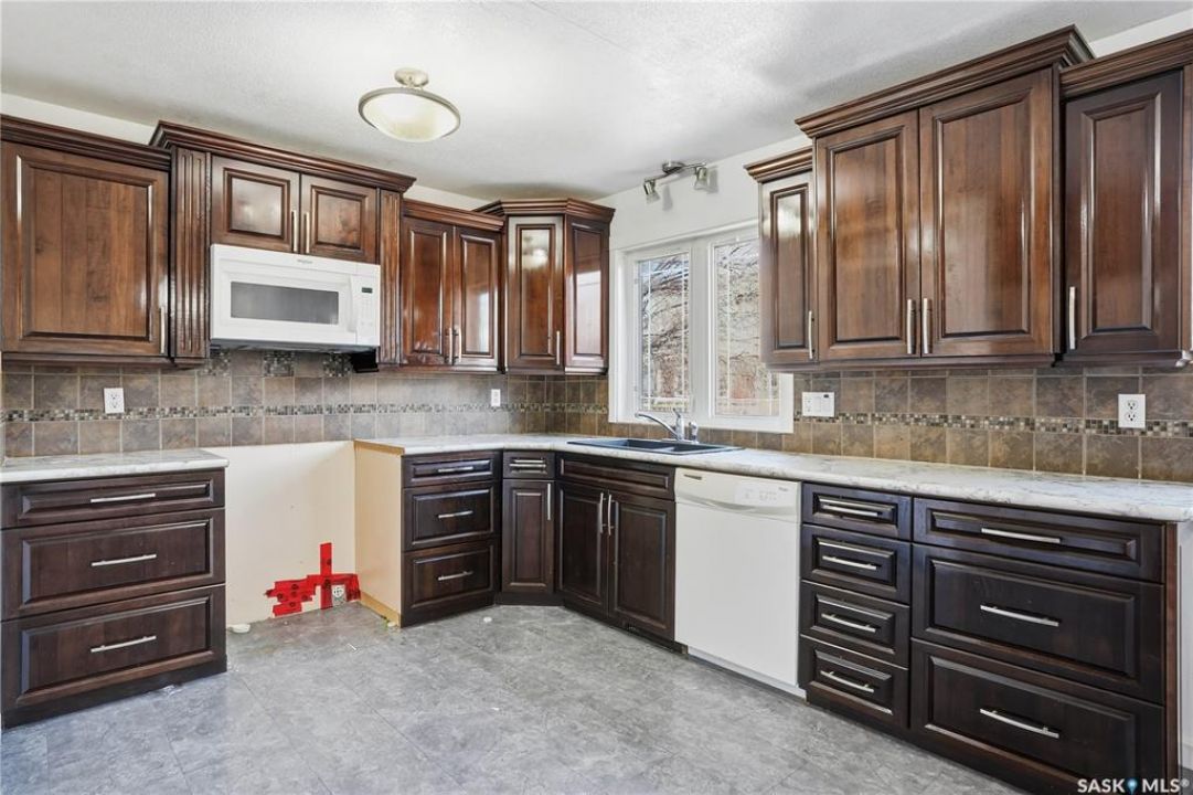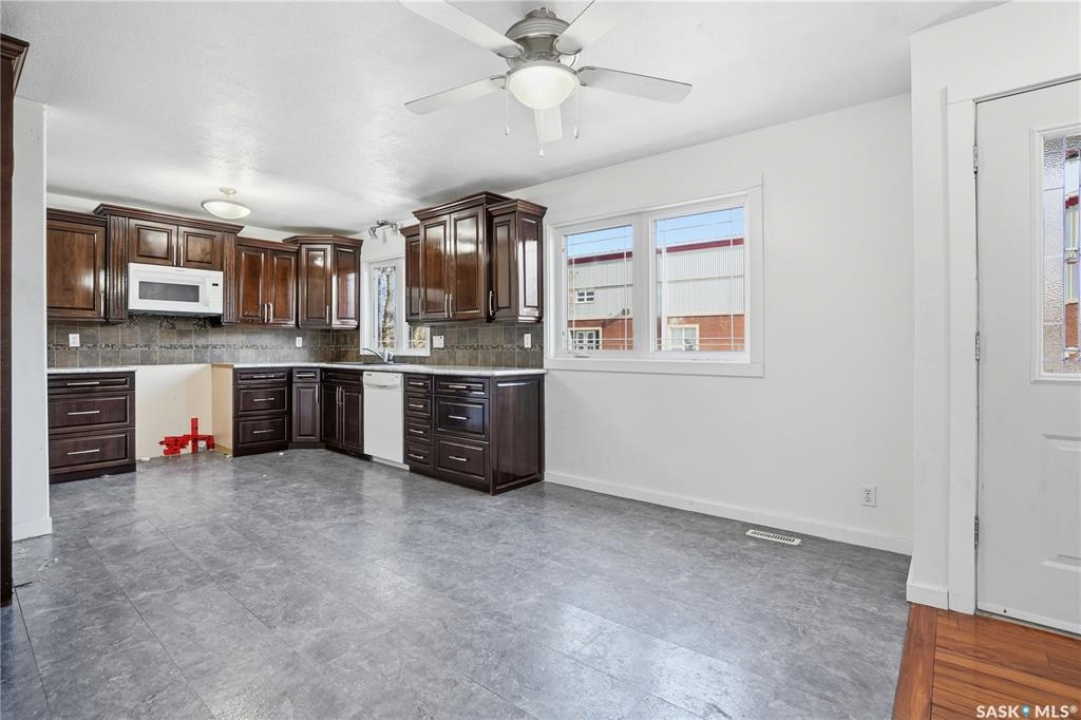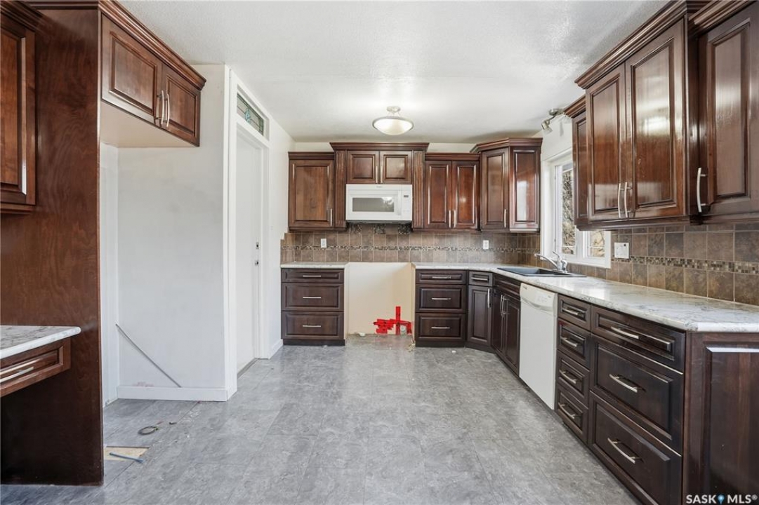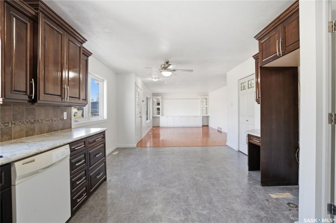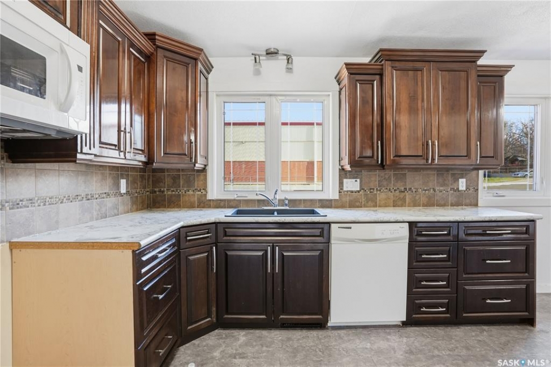Spacious 5 bedroom, 3 bathroom home offering over 1,200 sq. ft. on the main level with an additional kitchenette area in the basement. The property features a large double garage with 220 amp service. Spacious backyard. Located in Central Moose Jaw close to all amenities and transportation.