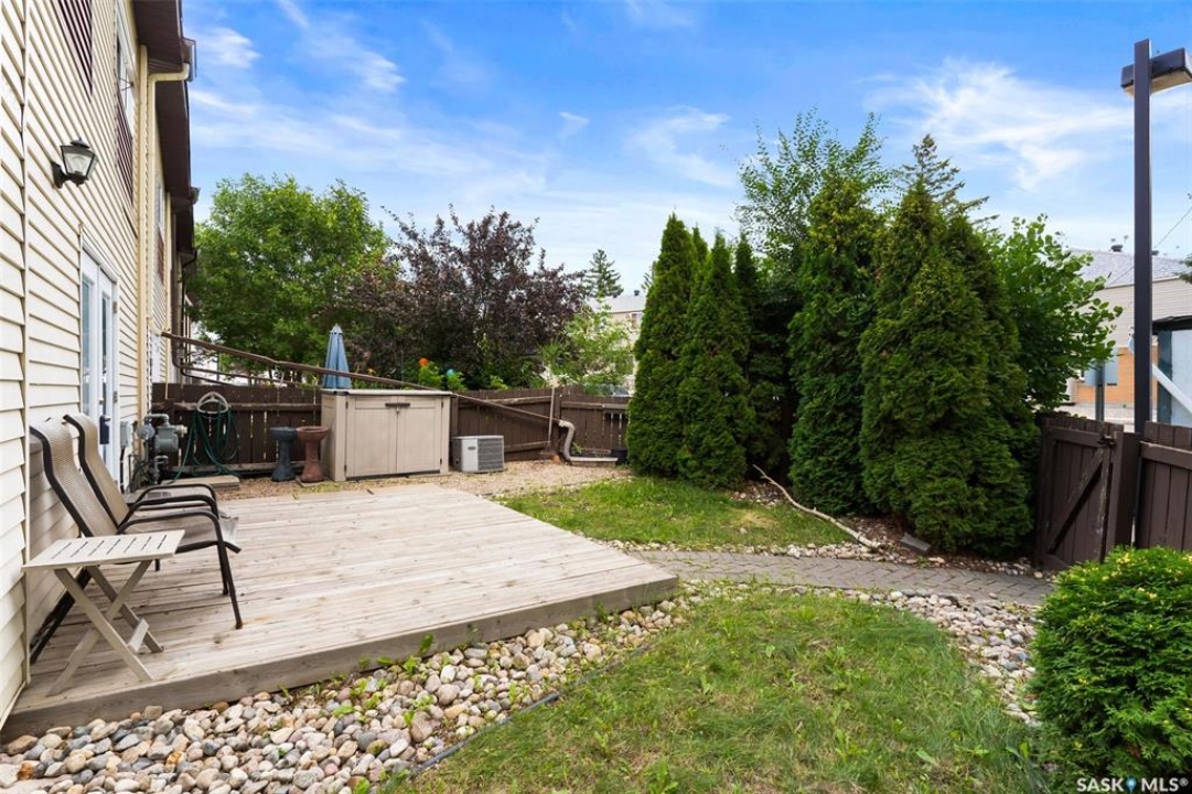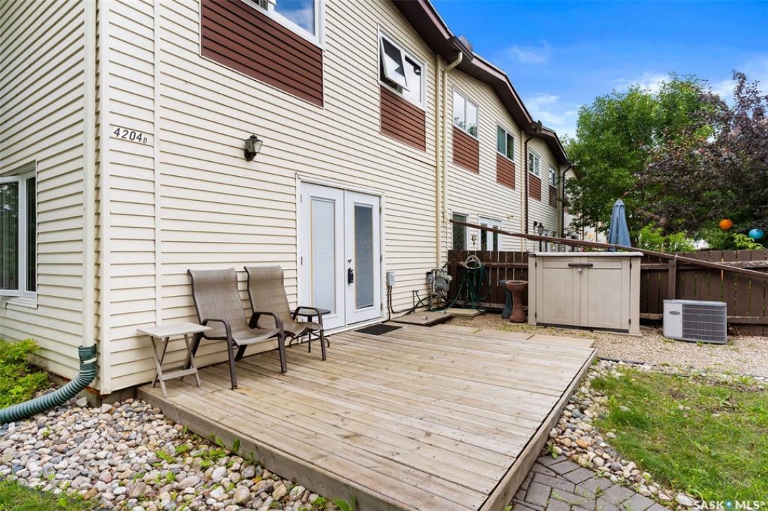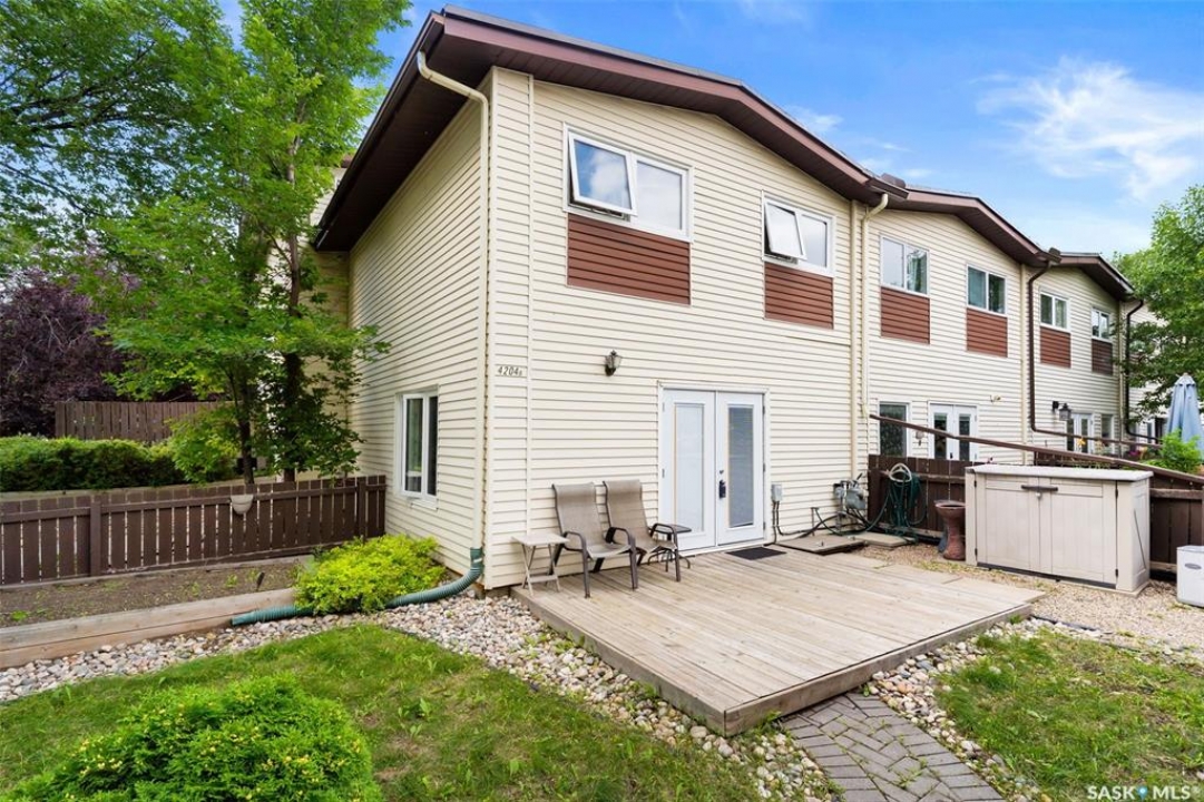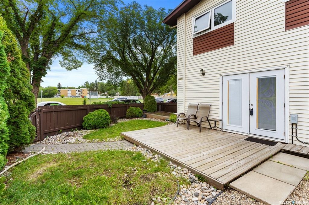 Welcome to B-4204 Castle Rd in Whitmore Park! 2 bedroom, 2 bath, 920 sq ft townhouse condo is a must see! Walking distance to U of R and right by the park. This end unit with a lovely south-east facing backyard, patio, and garden area. The unit has many updates including kitchen, flooring, windows and a recently developed basement with three-piece bath. An open concept living room comes with extra window and boost a lot of natural light and dining room with entry to yard is bright and spacious in design! Upstairs, two large bedrooms with large closets, and a full bath with large vanity is a great feature! Basement was developed with functional L shaped rec room, generous sized 3 pc bath, utility and storage areas! One parking spot & all appliances included.