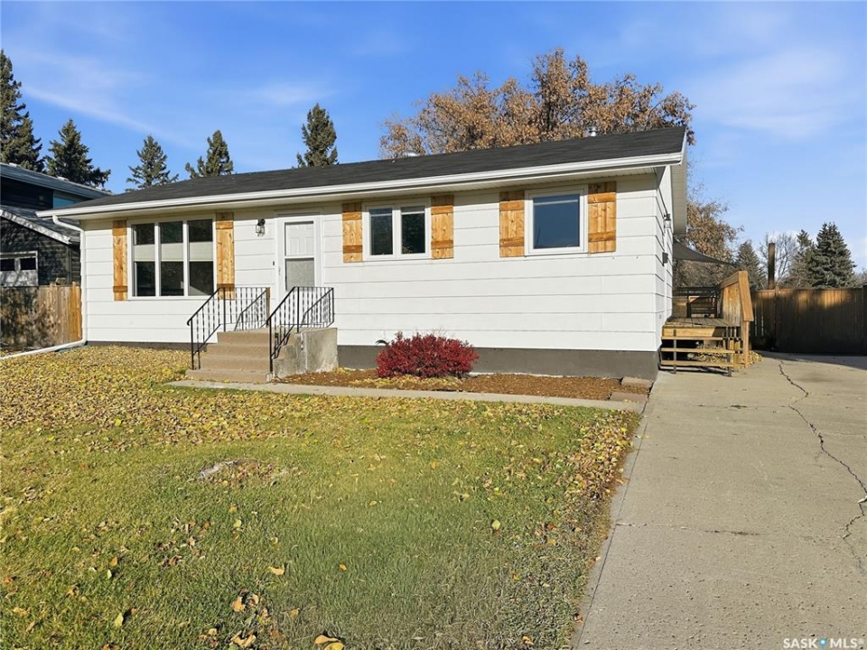 Charming West Side Home Backing Onto the Park!! Located in an amazing and quiet West Side neighborhood of North Battleford, this well-cared-for home offers the perfect combination of comfort, updates, and location. Backing onto the park of Holy Family, you'll love the peaceful setting with no neighbors behind—just open green space and plenty of room to enjoy. Inside, you'll find a bright and welcoming main floor featuring hardwood floors throughout and an open-concept design where the kitchen, dining, and living room flow seamlessly together. The south-facing front windows flood the space with an abundance of natural light, creating a warm and inviting atmosphere. There are a total of four bedrooms and two bathrooms, with the basement bathroom beautifully renovated to include a walk-in tiled shower. Numerous updates have already been completed, including windows, shingles, furnace, water softener, and hot water heater, giving you peace of mind for years to come. Step outside to enjoy the wraparound deck that extends from the side door to the backyard, offering a great space for relaxing or entertaining while overlooking the park. This home is located in the heart of the West Side, close to schools and shopping centres, making it an ideal choice for families or anyone looking for a quiet, convenient location. All appliances will remain. This move-in ready home is a must-see! Call today to book your private tour!