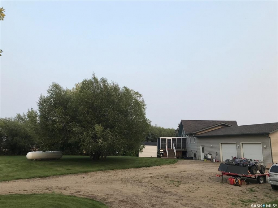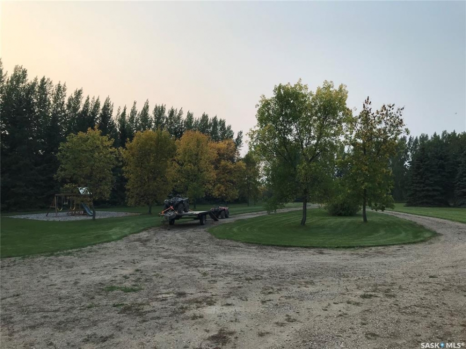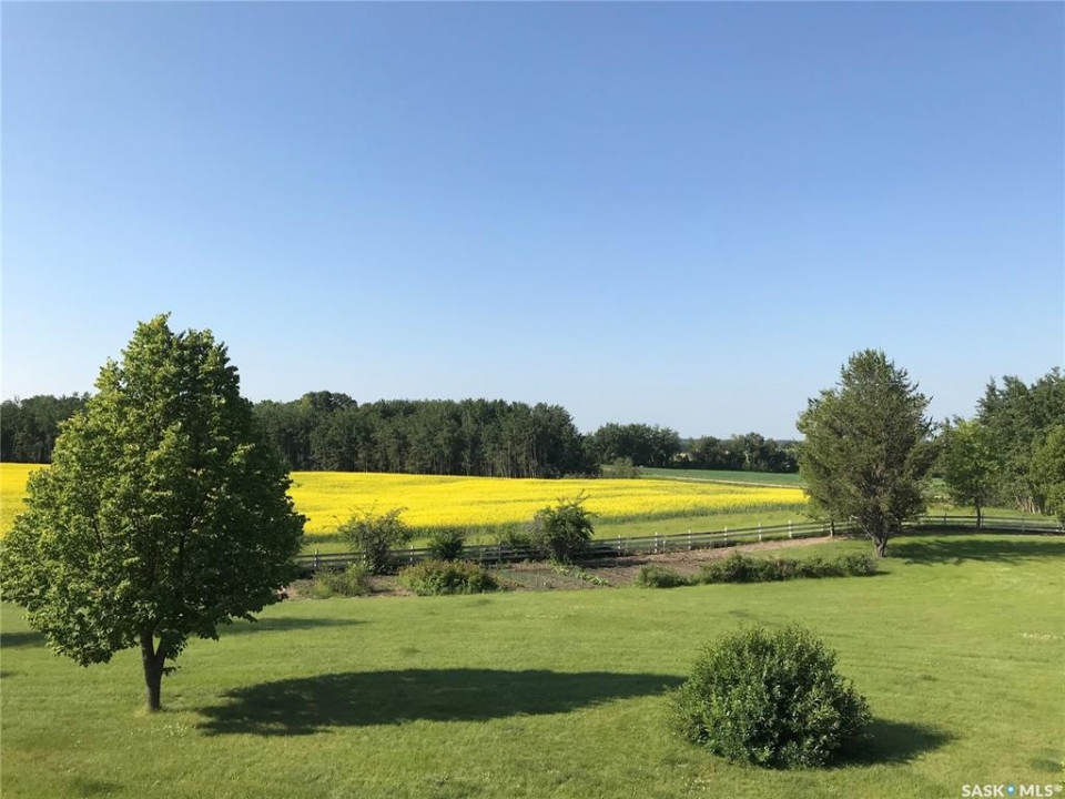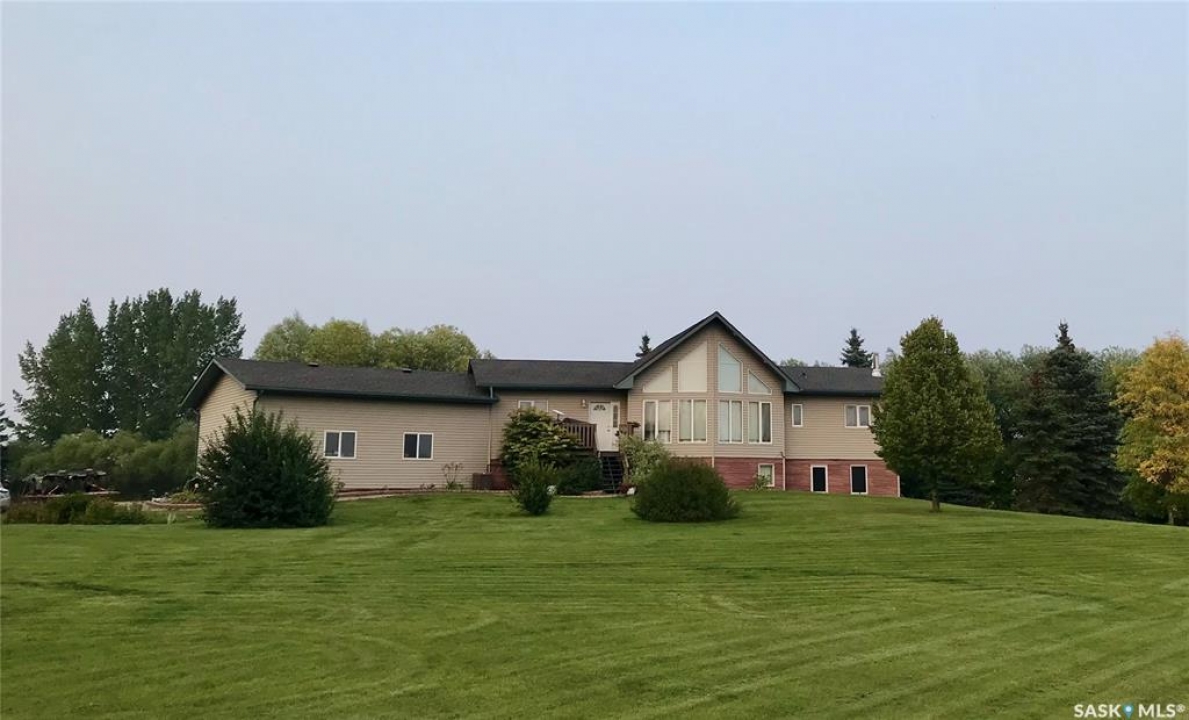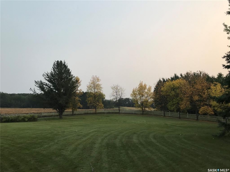 This gorgeous acreage is a must to see! Large walk-out bungalow is situated on 10 acres with a beautiful yard site and only 15 minutes west of Meadow Lake. You will certainly enjoy all the room this home has to offer. There are 3 main floor bedrooms, plus an office. The main living areas are very open and feature gorgeous windows and vaulted ceilings which give you a panoramic view of the country side. Dining room doors lead out to a 16ft x 20ft sunroom which is great for entertaining. The lower level of this home has a large family room, 4th bedroom, 2pc bathroom, laundry room, storage and mechanical area. All windows on the lower level are very large and provide great natural light. The house is heated with propane - forced air furnace, and there is also a propane fireplace in the living room. Lower level also has in-floor heat. Double attached garage measures 32ft x 24ft. Central A/C in 2017, shingles 2023, water heater March 2024, furnace is original, carpet & upstairs flooring approx. 2019, septic & well pumps replaced approx. 2019, washer & dryer 2020. Husqavarna (2014) riding lawn mower & TroyBilt garden tiller included, Starlink equipment for internet included, Projector/screen/surround sound speakers included & fridge in basement included.