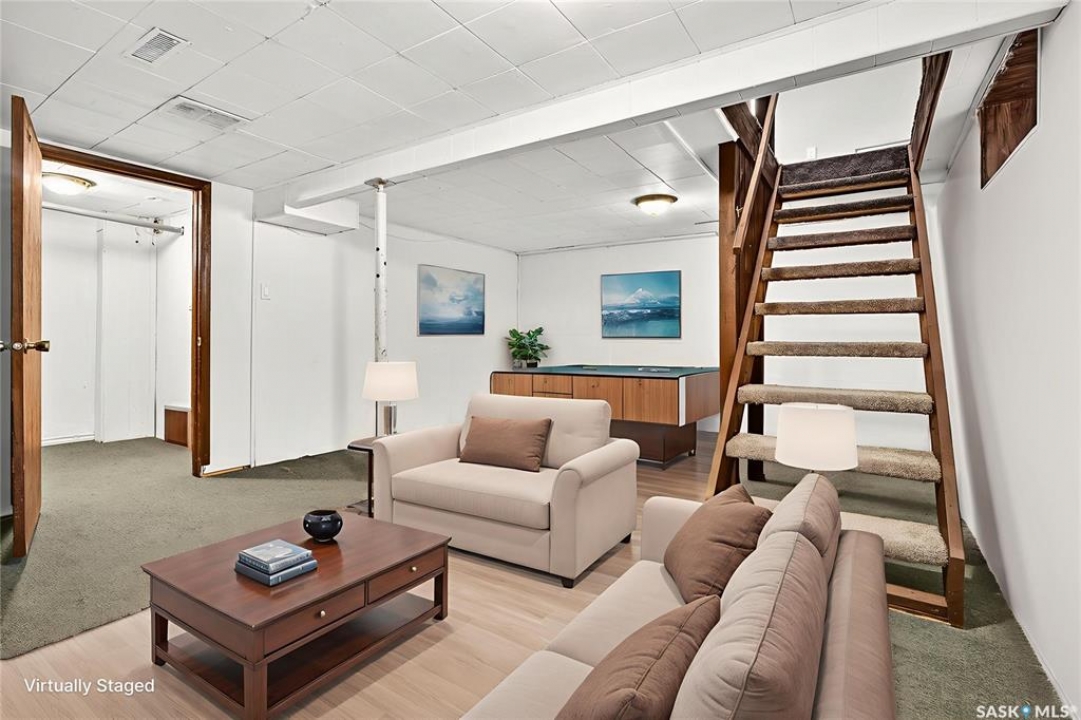 Charming and affordable, this 2-bedroom home is nestled on beautiful Willow Avenue, tucked quietly behind Ross Wells Park and directly across from the recently upgraded Clark Gillies Playground—an unbeatable location for families or those seeking a peaceful yet connected lifestyle. With Crescent Park and walking trails nearby (Happy Valley), and downtown just a short stroll away, you'll love the balance of recreation, convenience, and community this neighbourhood provides. Inside, the home has had many practical updates and shows well for its price range, blending comfort with functionality. Recent upgrades include a new electrical service and panel (2024), hot water heater (2023), and new asphalt shingles (2024), offering peace of mind for years to come. The main floor features a cozy living area, a well-maintained kitchen and bath, and one comfortable bedroom, while the upper level boasts a spacious open loft-style bedroom perfect for a primary suite, studio, or guest space. The partially finished basement offers a large recreation room and ample storage options. Whether you're a first-time buyer, investor, or simply looking to downsize, this well-cared-for home offers excellent value in a desirable location—move in and start enjoying all that this charming property has to offer.