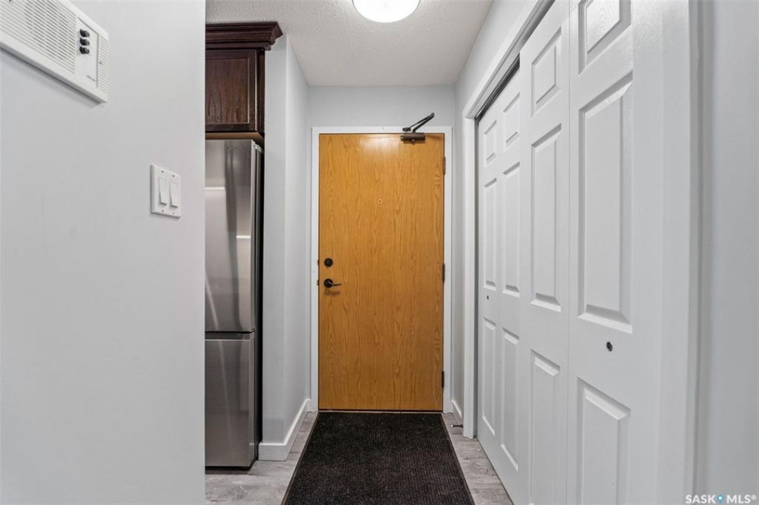 Welcome to this bright and beautifully renovated 2-bedroom, 1-bathroom condo in Saskatoon's desirable Holiday Park neighborhood. Located on the 3rd floor, this fully updated unit has been tastefully renovated over the past 3 years — featuring modern flooring, fresh paint, a stunning kitchen with stainless steel appliances, added storage in dining area, and a gorgeous 4-piece bathroom. Enjoy peaceful views overlooking Gordie Howe Campground from your private space. The building offers an elevator, shared laundry on the main floor, and an electrified surface parking stall. Conveniently situated directly behind the Saskatoon French School, and just a block from other schools, sports complexes, and parks. Move-in ready and perfect for first-time buyers, downsizers, or investors! Immediate possession available!